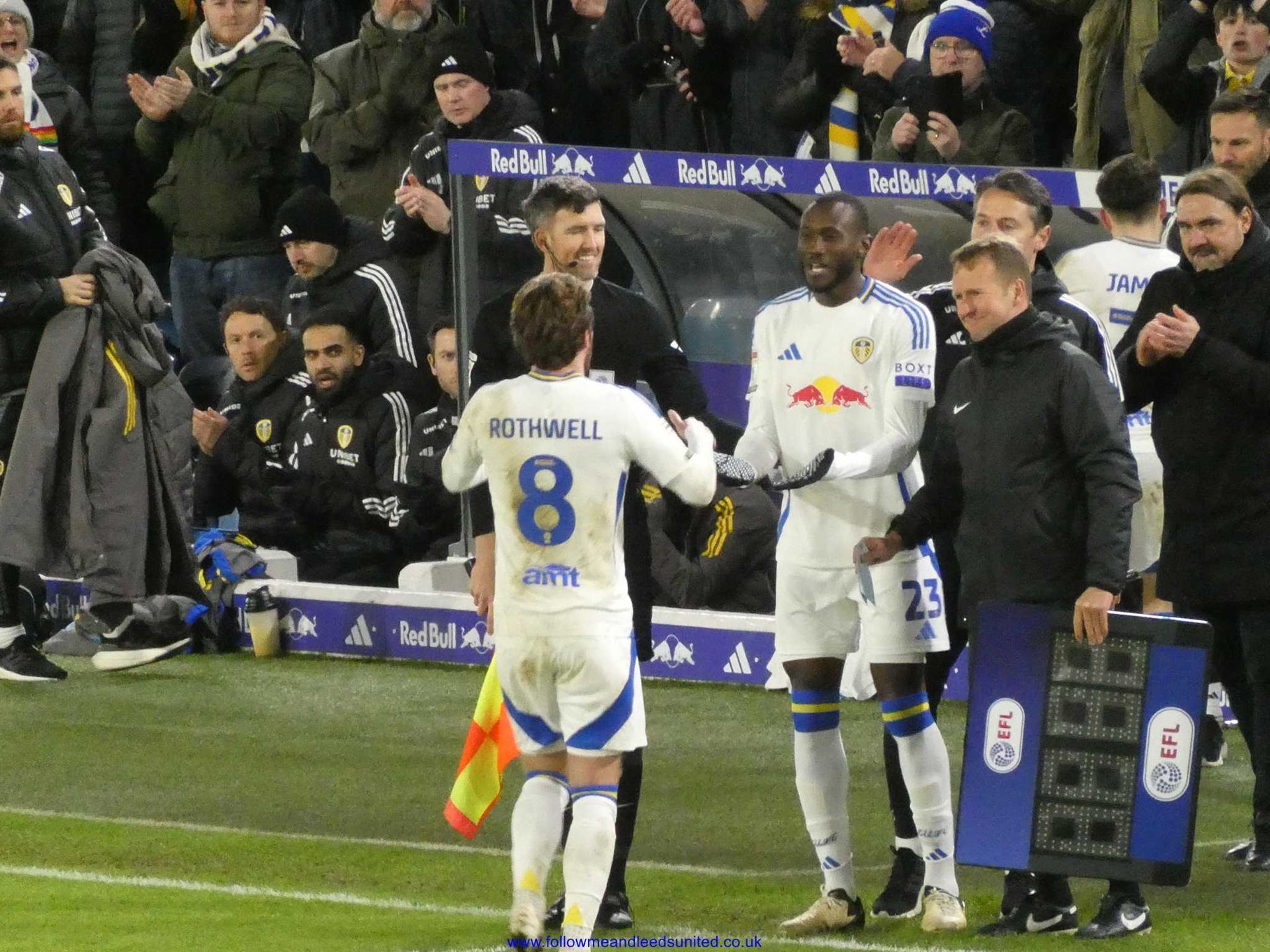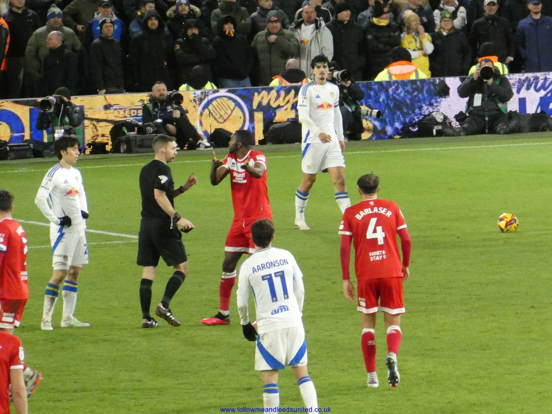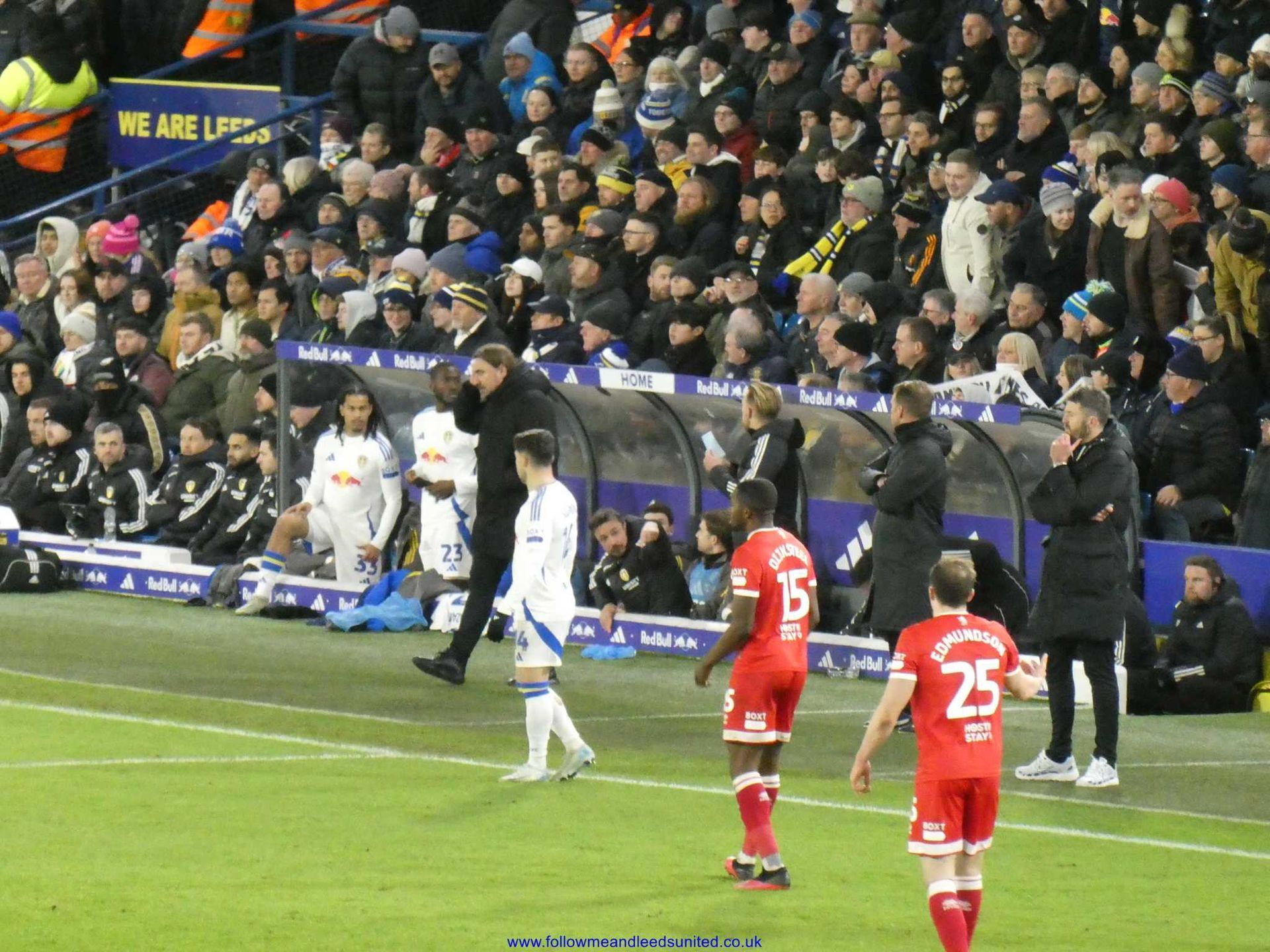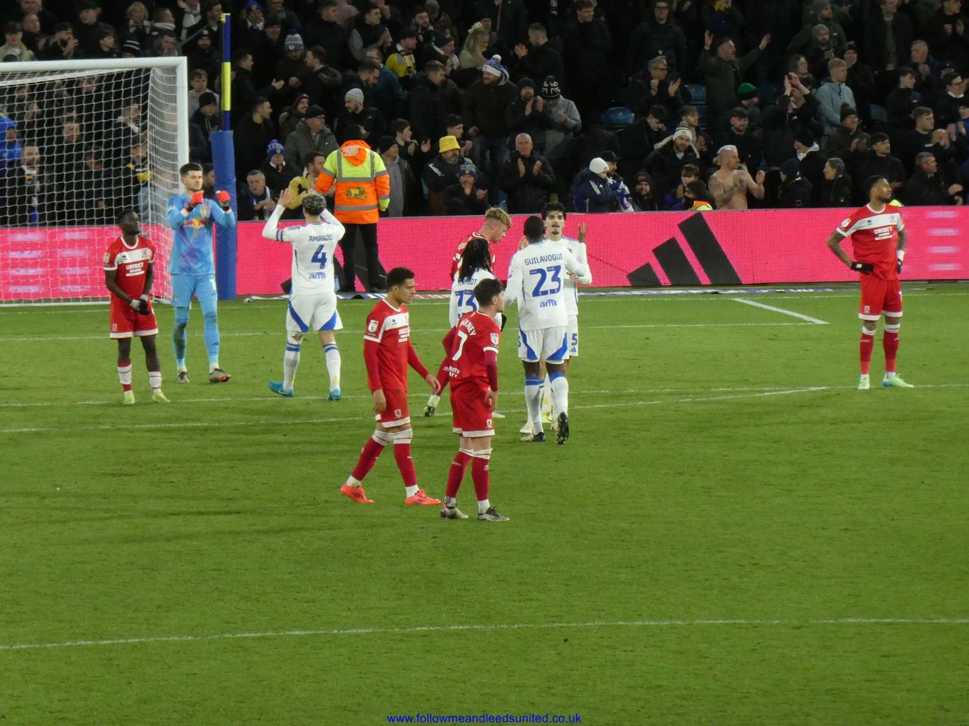 The second half saw Boro come out fighting and Meslier made a great save to keep them out. Sadly, from the resulting corner, Wöber trying to clear the ball saw his header fly past Meslier into the net to equalise. Boro did their job to obstruct Meslier with Gnonto fighting two players but only succeeded in blocking him in. At this point Boro were the stronger of the two sides as I feared they would get a second goal to take the lead as their man only had Meslier to beat, but he pulled off a last gasp save to get the ball.