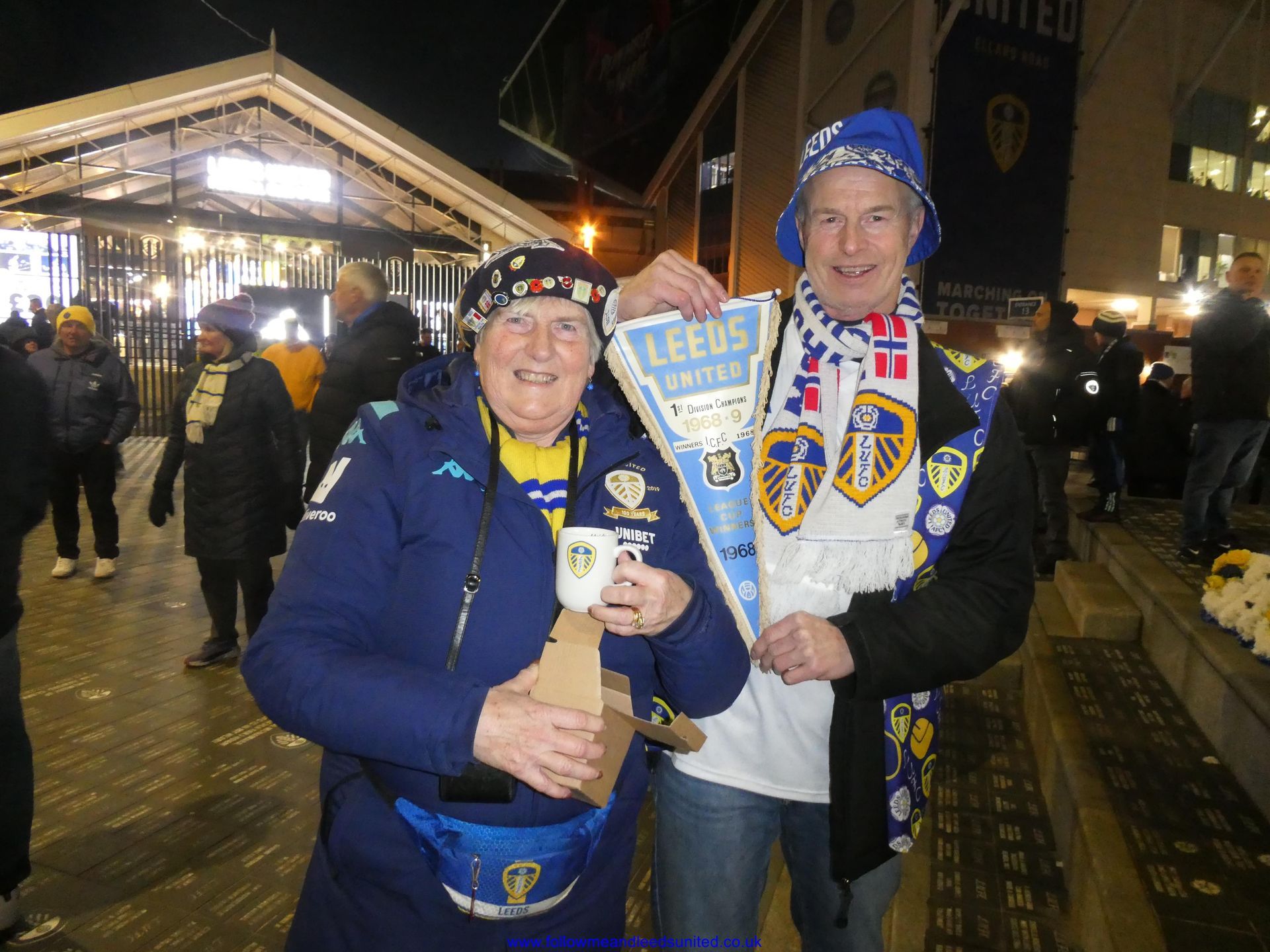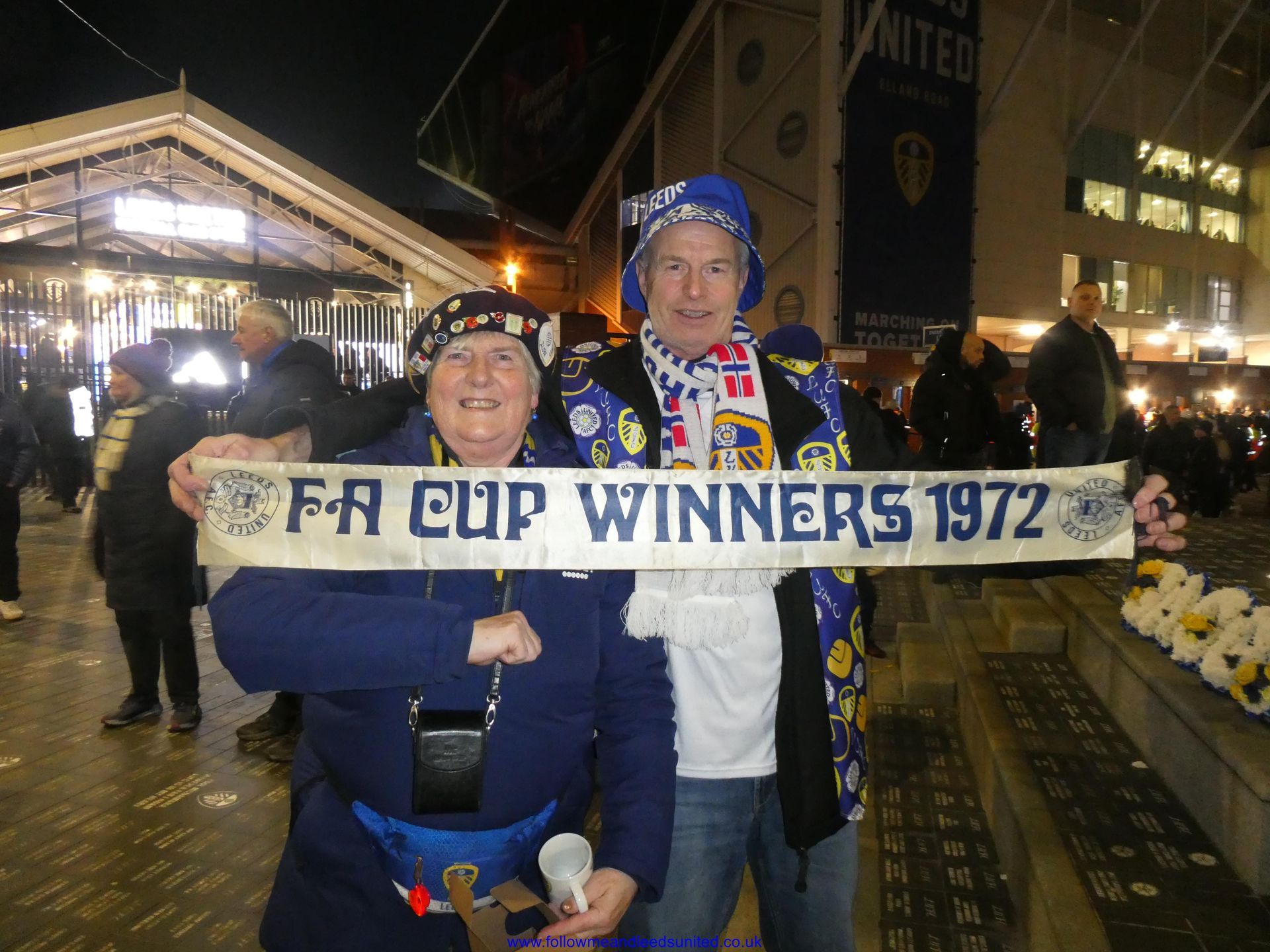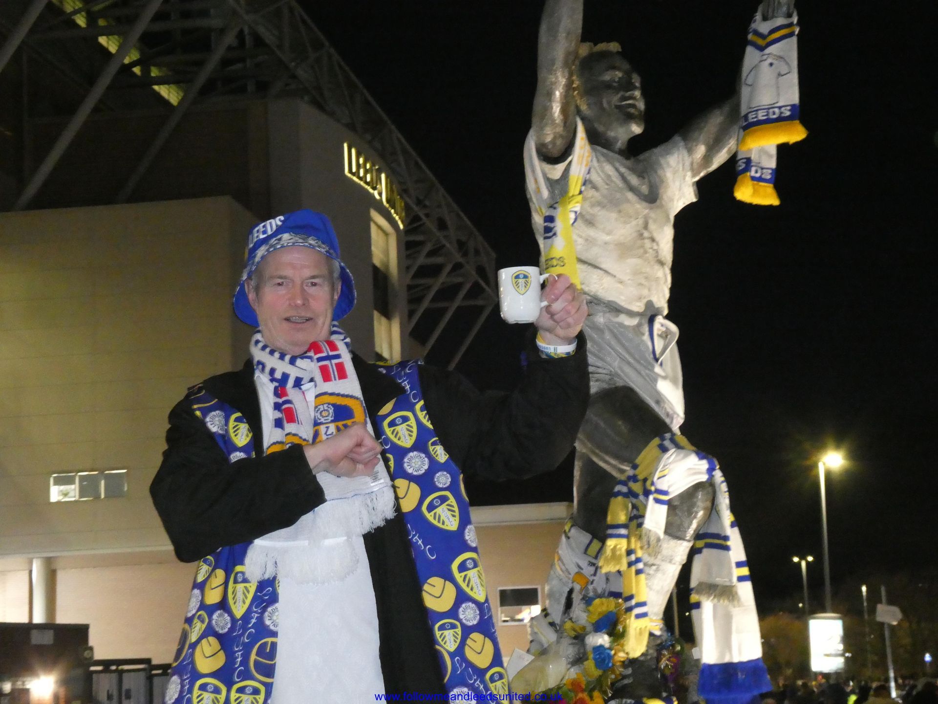 After seemingly meeting myself coming backwards, I had to revert to Shanks Pony (walking in other words) for most of the day and whilst I’ve enjoyed it, I’d slowed up by the end of the game. I decided to catch a train into Leeds as my daughter was coming straight from work and I’d come back home with her afterwards. With it being a rail replacement transport, it turned out to be our regular driver from our away coach who brought me to Leeds. A big thank you to Arne one of our Norwegian Whites who gave me a present of a Leeds cup with my name in it which was greatly appreciated. He’d bought some memorabilia for his museum, and it was lovely to see he had a silk scarf with the 1972 FA Cup Final on it which was my favourite ever game. Whilst meeting him at Billy’s statue, a few fans asked me what I thought the score would be, but I don’t predict scores as I always get them wrong. I did say we had to win though as it was important we picked up the points tonight as QPR is another ground that hasn’t been good for us. Getting something from that game too will keep the pressure on the other teams around us too. It was nice to finally meet up with Craig and sign my Follow Me and Leeds United book that he had bought.