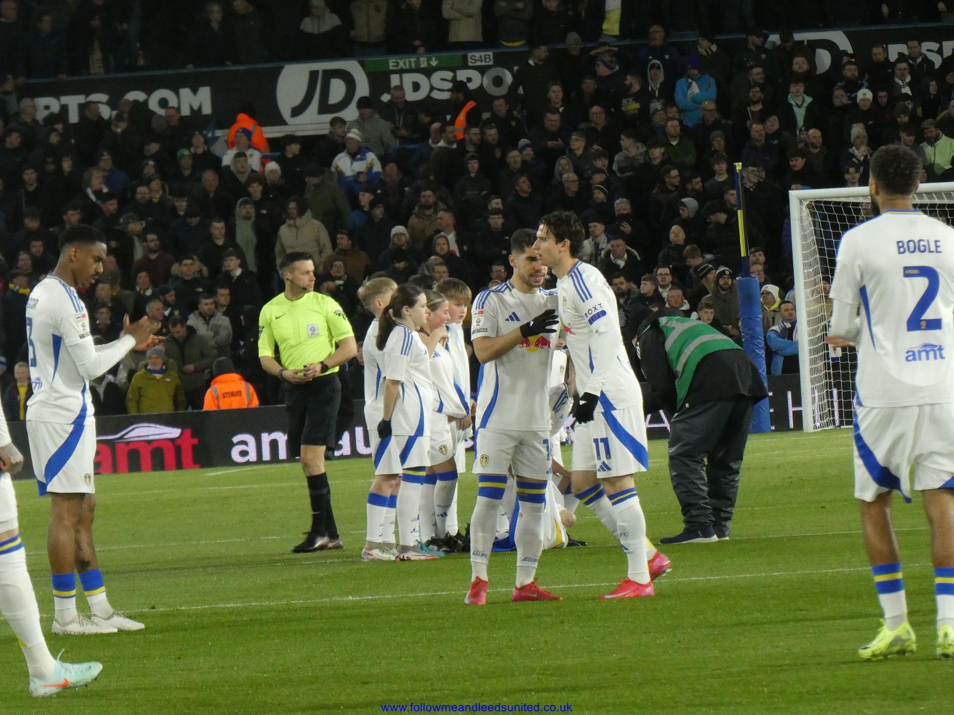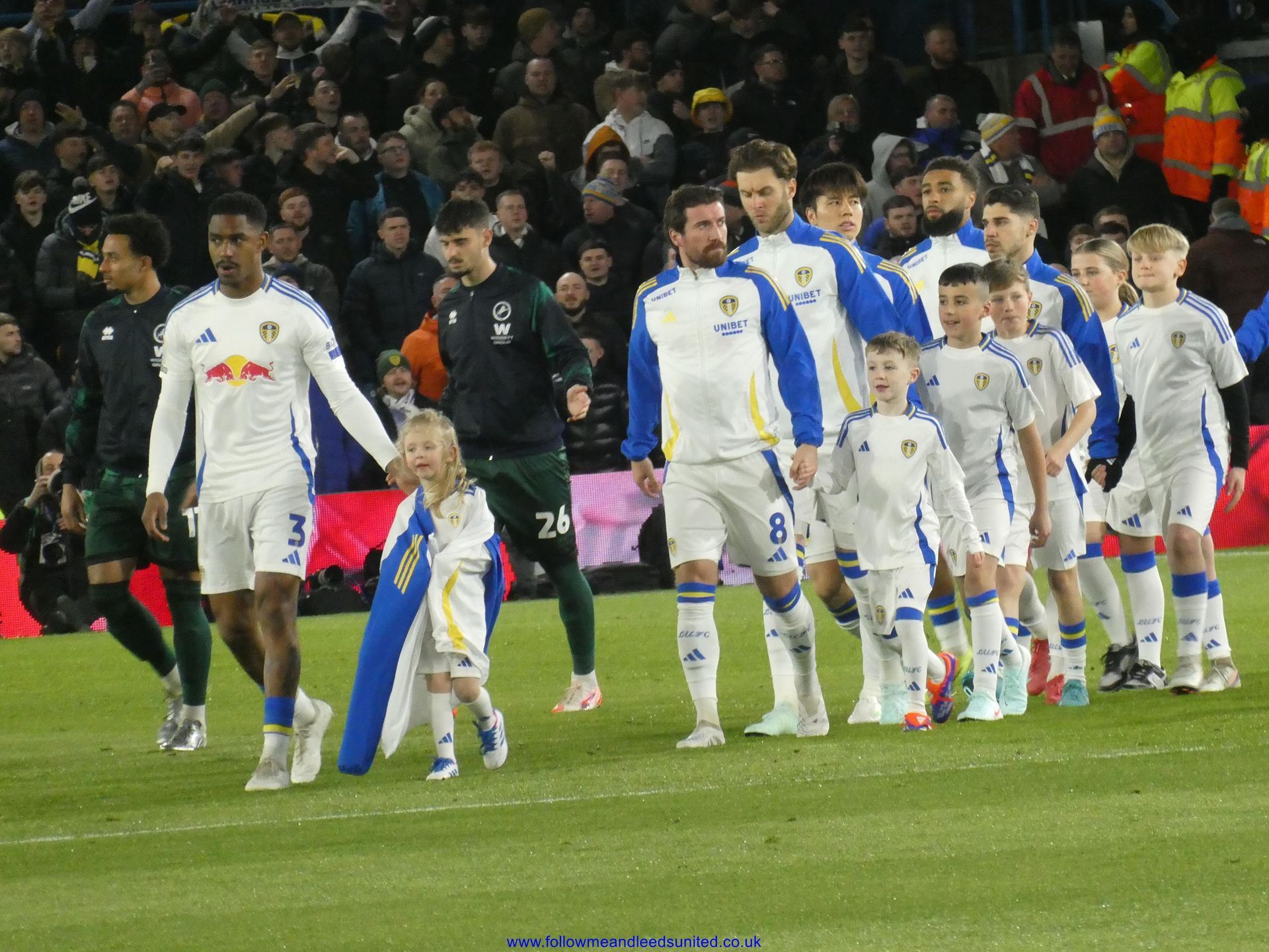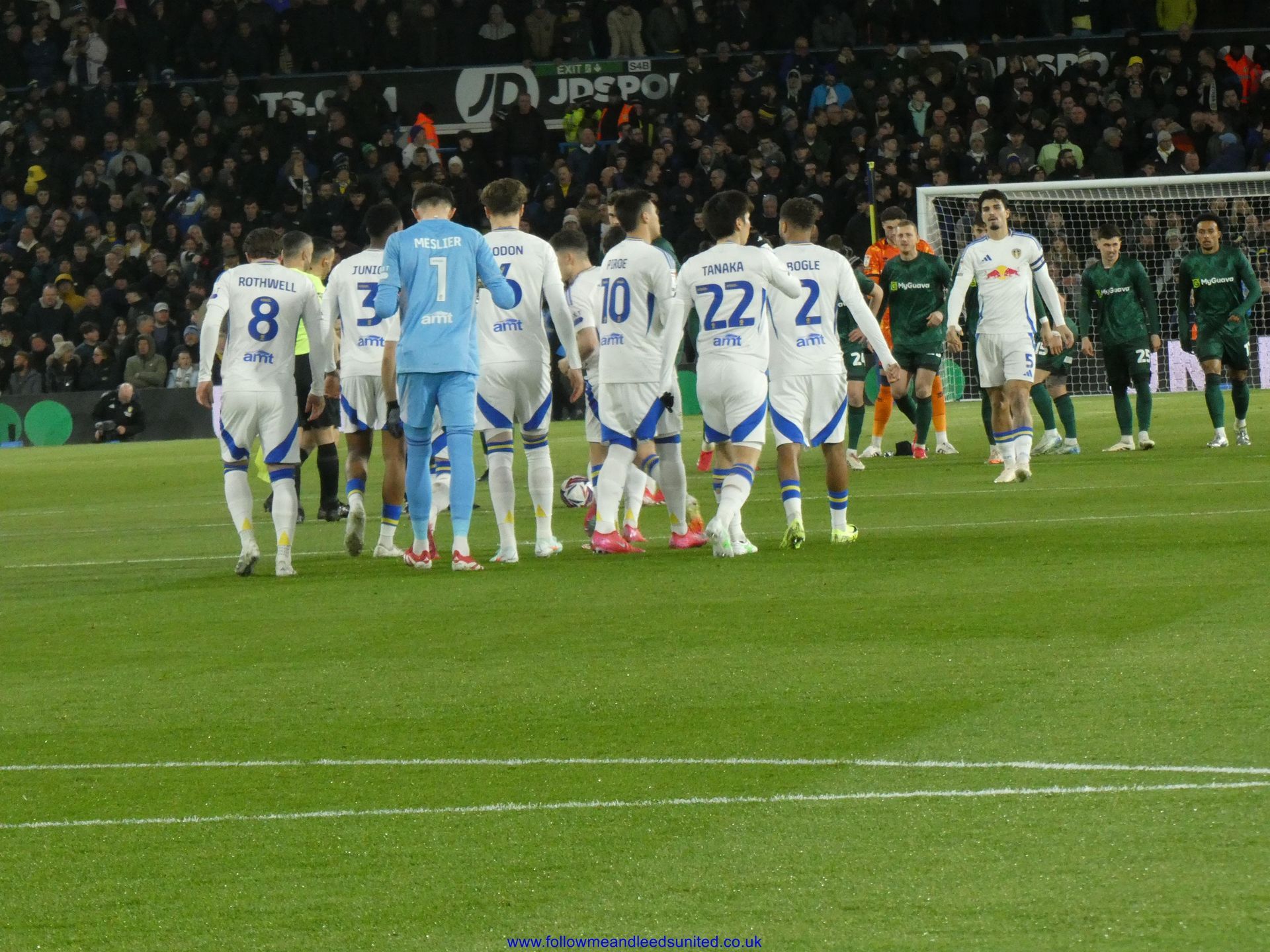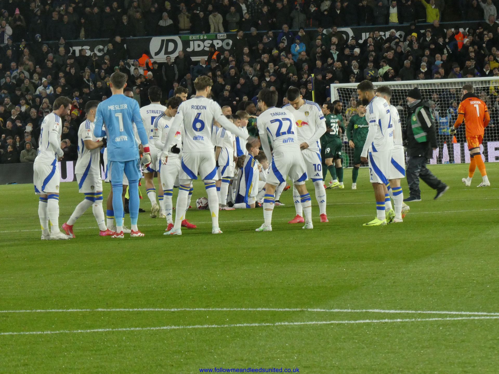 Team: Meslier, Struijk, Rodon, Bogle, Tanaka, Firpo, Rothwell, Piroe, James, Solomon, Aaronson.