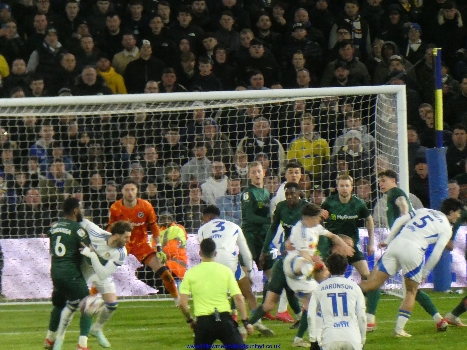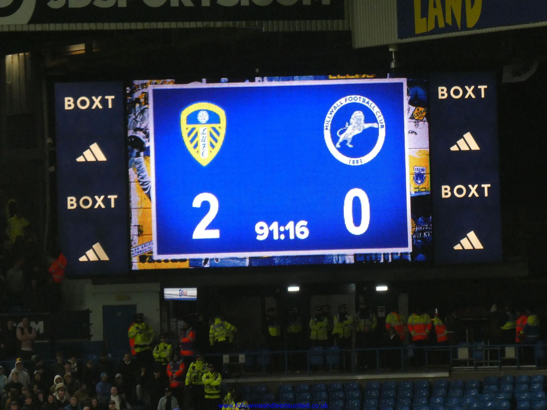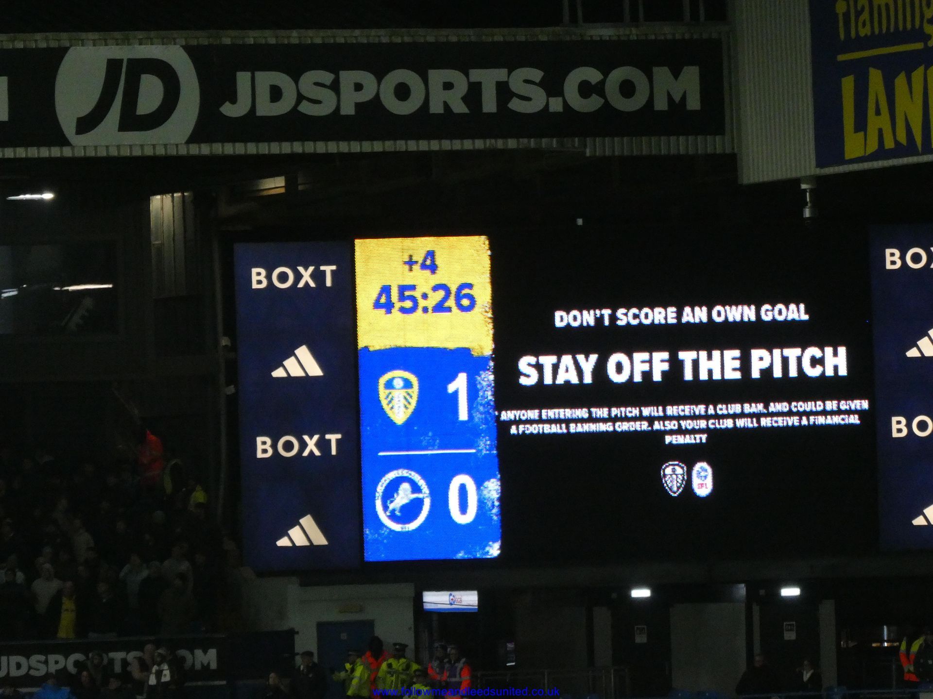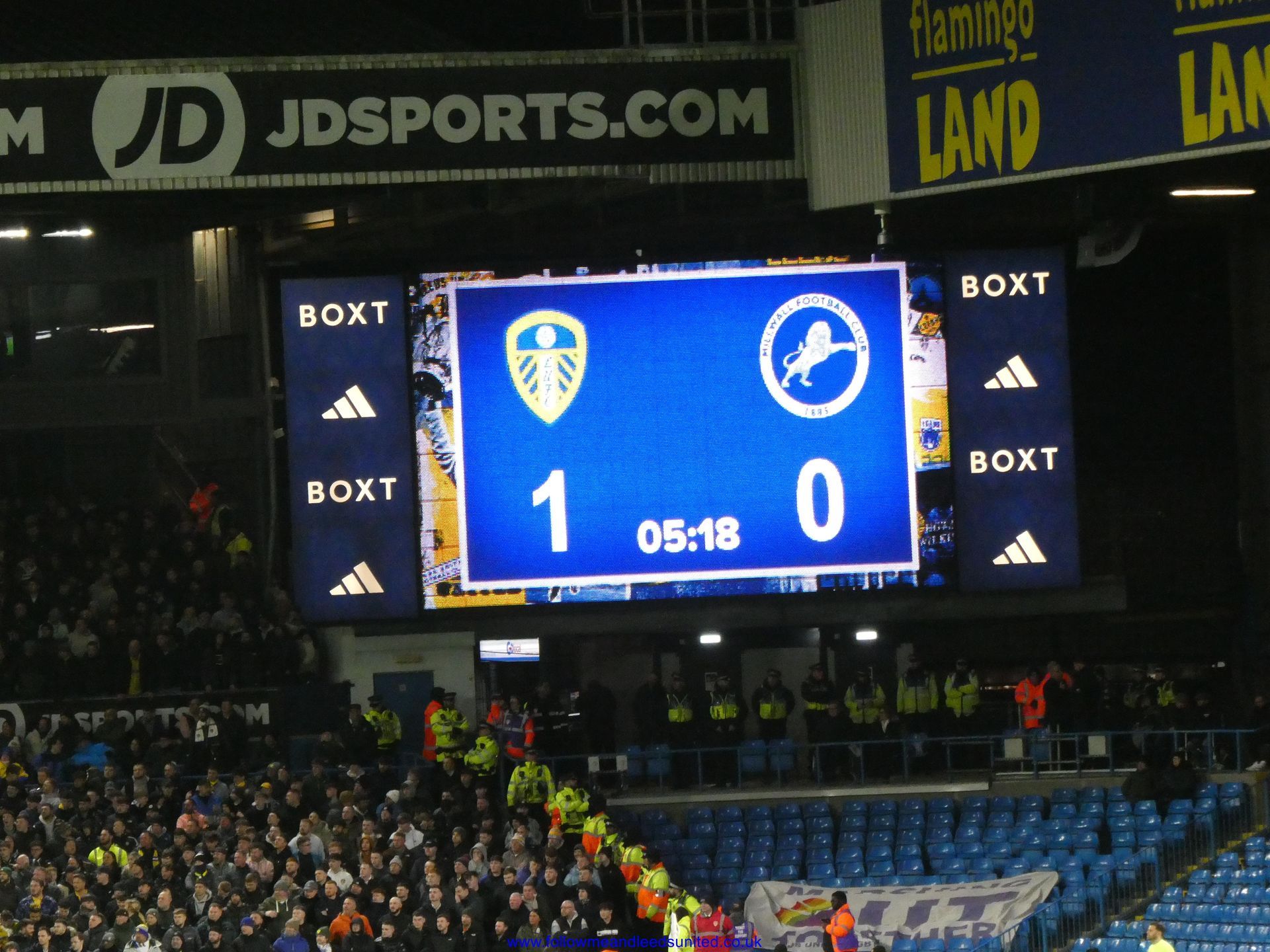 Leeds started off at a blistering pace after being turned around by Millwall, so we were attacking the Kop in the first half. I hadn’t realised the goal was so early in the game as Solomon sent a low shot along the byline that ended up in the net at the near post courtesy of Millwall’s captain. That set the tone for Leeds to keep attacking which is the best form of defence and it showed tonight as we limited Millwall to very few attacks. Millwall were chopping our players down left, right and centre but the referee never gave a yellow card out. I was half expecting us to challenge them and get the first card but thankfully we didn’t. We were attacking in droves, and Aaronson had a shot saved by their keeper. Leeds scored a second goal that was disallowed for offside after good work in the penalty area from Aaronson gave Piroe the chance to put the ball into the net. I was convinced it wasn’t offside and according to half time reports; this was confirmed to be the case. It would have made a difference by taking any pressure off us. The sting was taken out of the game as their player went down injured. He went off the pitch at the slowest pace to be subbed, only to take forever and the referee to let them do it.