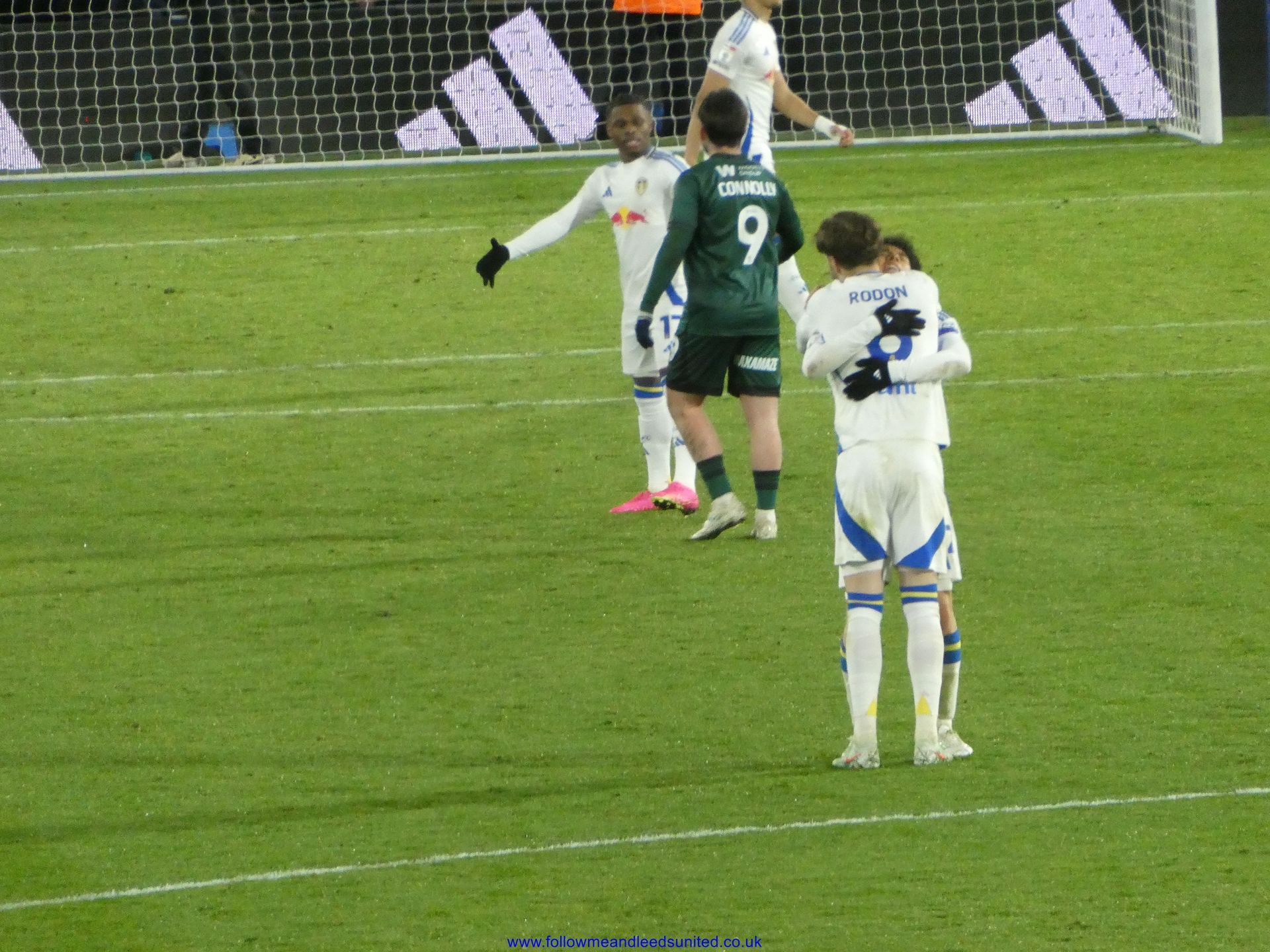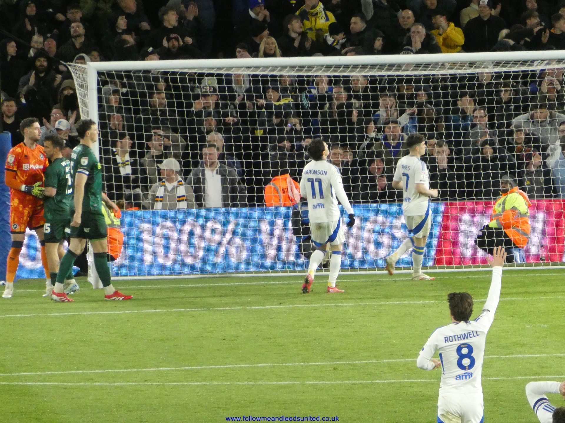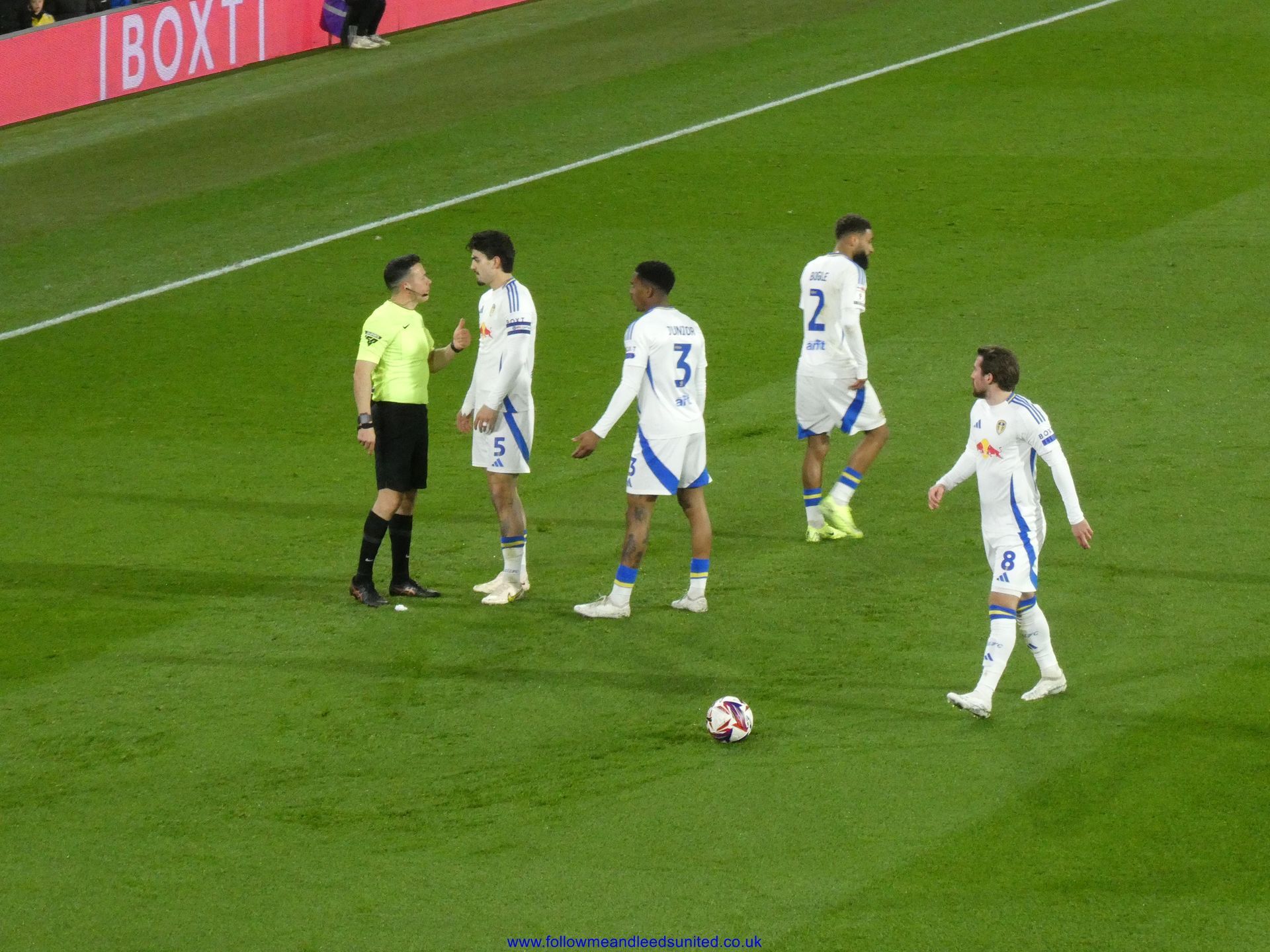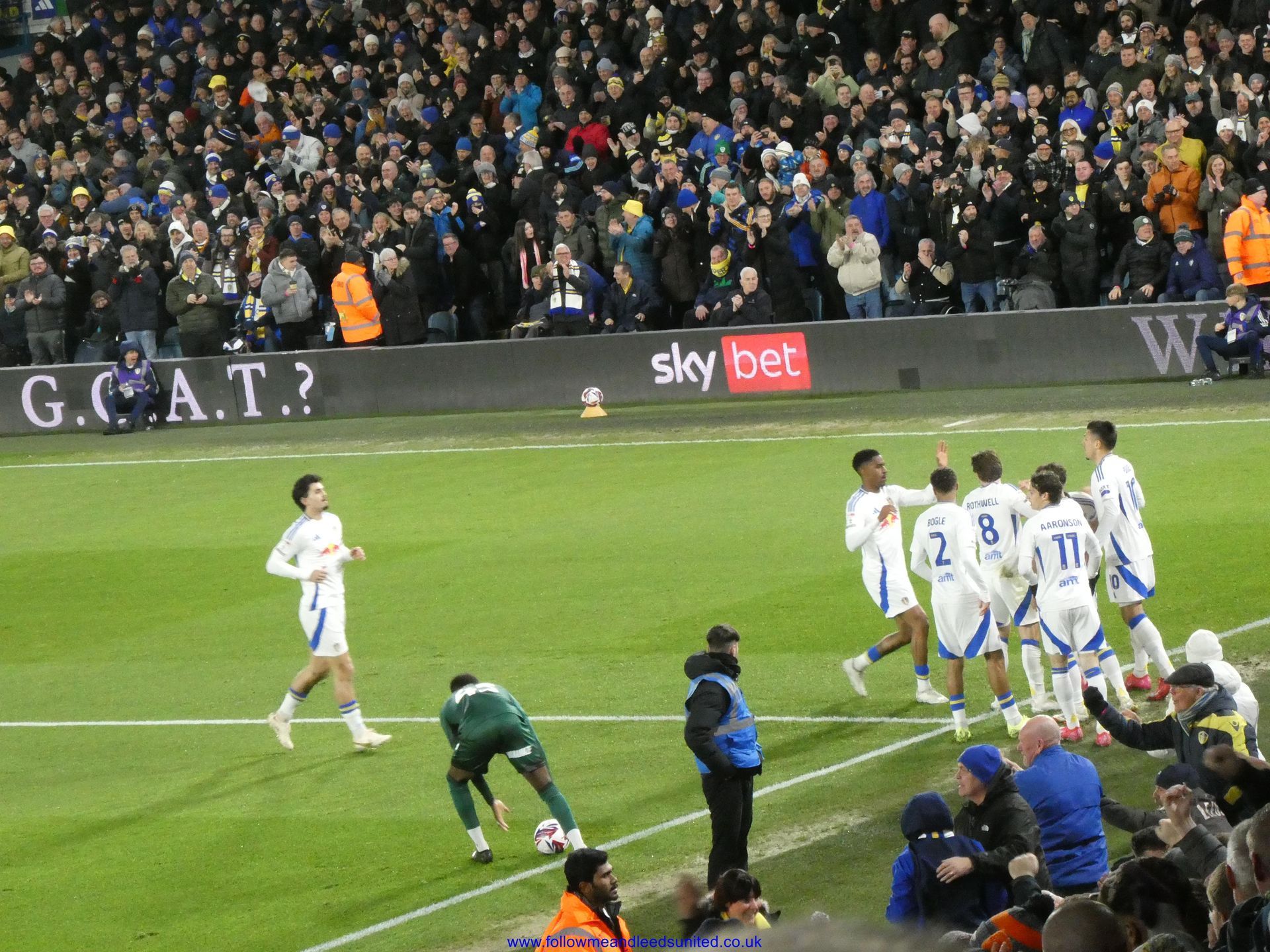 Leeds started off at a blistering pace after being turned around by Millwall, so we were attacking the Kop in the first half. I hadn’t realised the goal was so early in the game as Solomon sent a low shot along the byline that ended up in the net at the near post courtesy of Millwall’s captain. That set the tone for Leeds to keep attacking which is the best form of defence and it showed tonight as we limited Millwall to very few attacks. Millwall were chopping our players down left, right and centre but the referee never gave a yellow card out. I was half expecting us to challenge them and get the first card but thankfully we didn’t. We were attacking in droves, and Aaronson had a shot saved by their keeper. Leeds scored a second goal that was disallowed for offside after good work in the penalty area from Aaronson gave Piroe the chance to put the ball into the net. I was convinced it wasn’t offside and according to half time reports; this was confirmed to be the case. It would have made a difference by taking any pressure off us. The sting was taken out of the game as their player went down injured. He went off the pitch at the slowest pace to be subbed, only to take forever and the referee to let them do it.