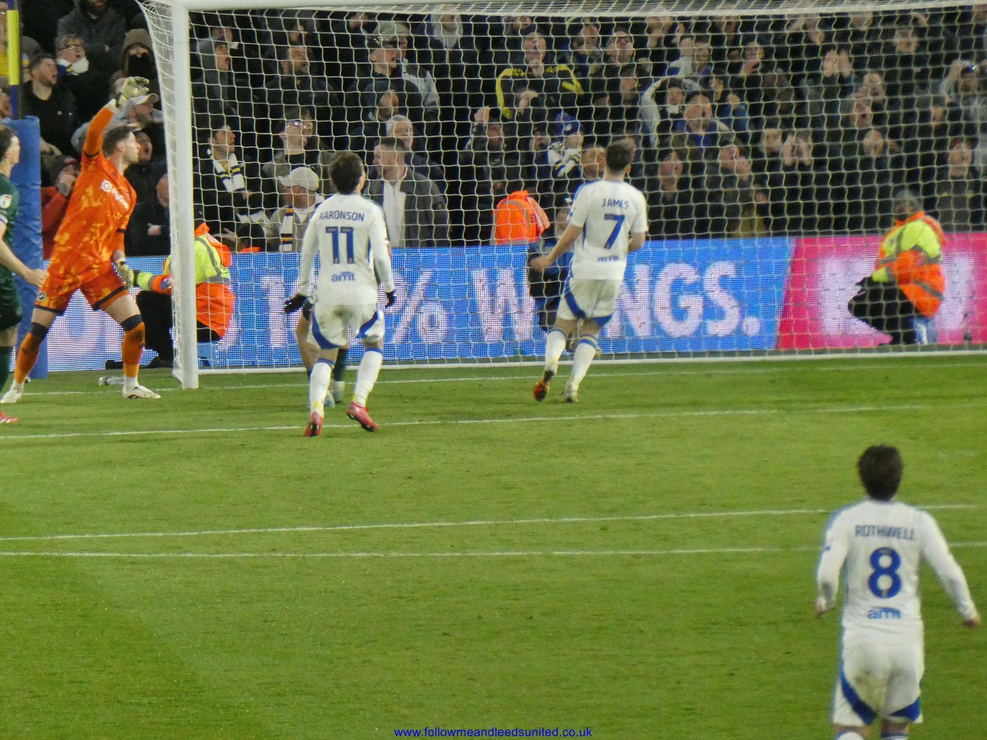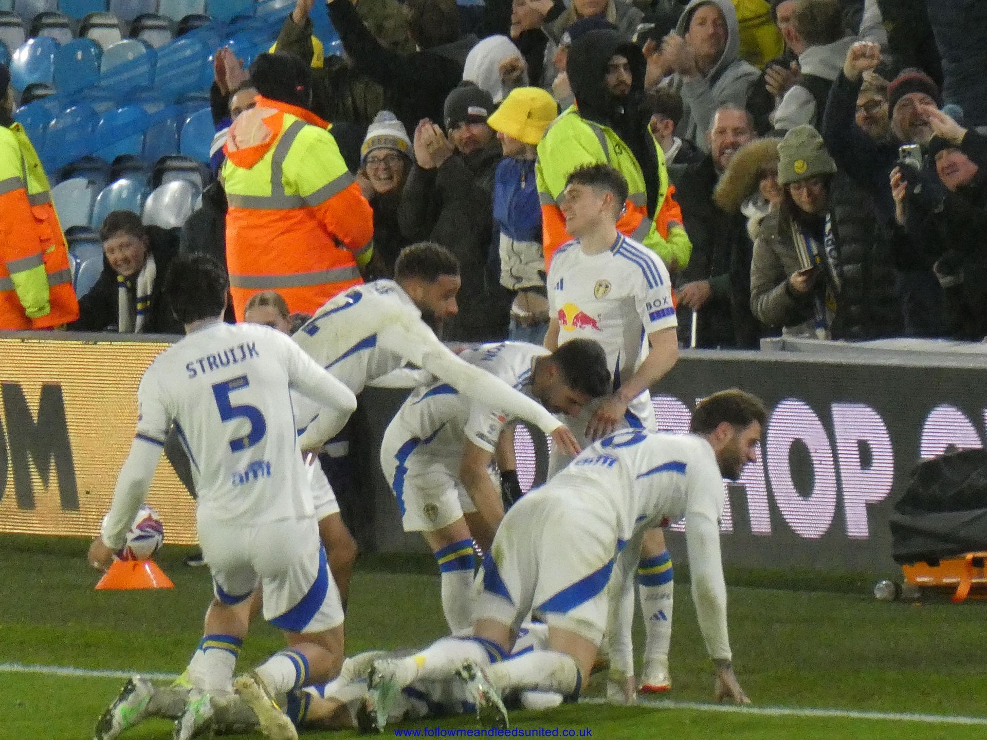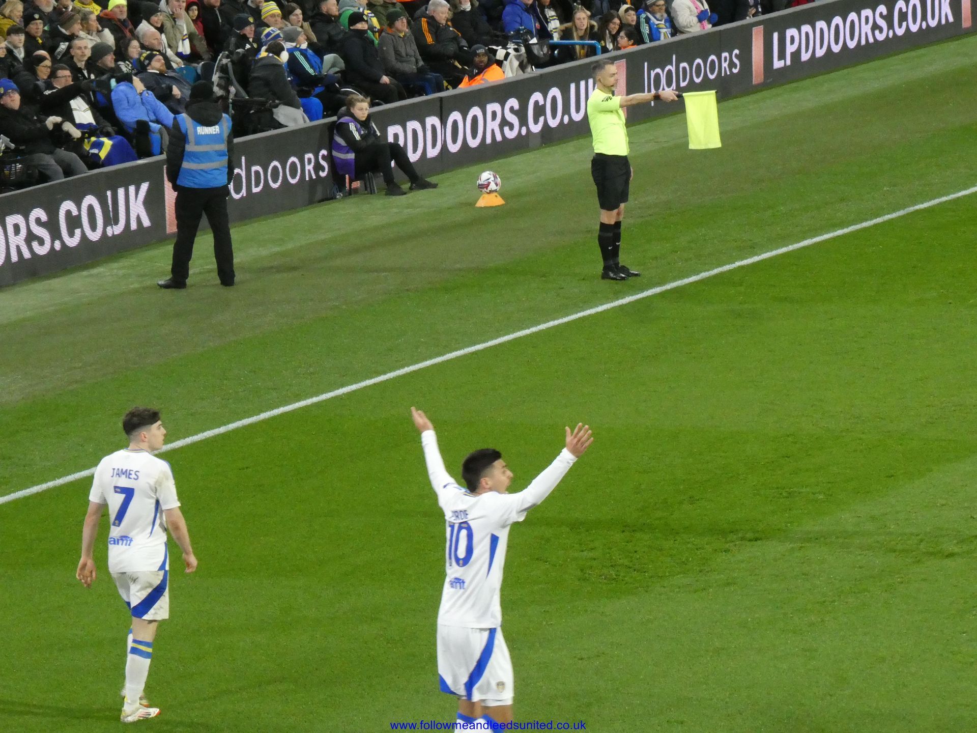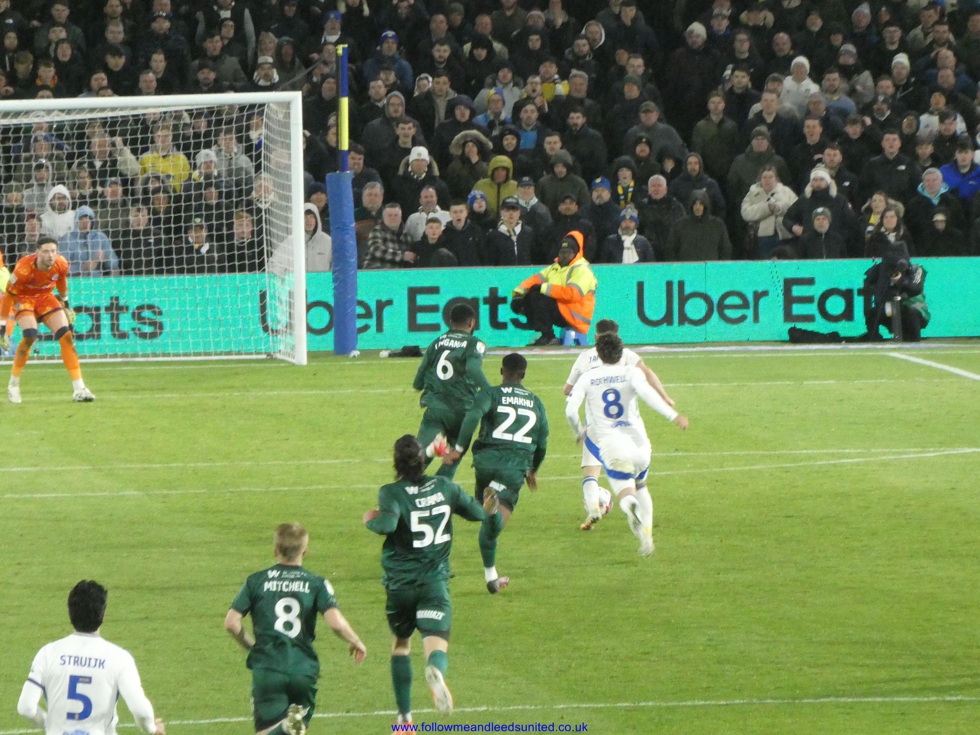 Leeds started off at a blistering pace after being turned around by Millwall, so we were attacking the Kop in the first half. I hadn’t realised the goal was so early in the game as Solomon sent a low shot along the byline that ended up in the net at the near post courtesy of Millwall’s captain. That set the tone for Leeds to keep attacking which is the best form of defence and it showed tonight as we limited Millwall to very few attacks. Millwall were chopping our players down left, right and centre but the referee never gave a yellow card out. I was half expecting us to challenge them and get the first card but thankfully we didn’t. We were attacking in droves, and Aaronson had a shot saved by their keeper. Leeds scored a second goal that was disallowed for offside after good work in the penalty area from Aaronson gave Piroe the chance to put the ball into the net. I was convinced it wasn’t offside and according to half time reports; this was confirmed to be the case. It would have made a difference by taking any pressure off us. The sting was taken out of the game as their player went down injured. He went off the pitch at the slowest pace to be subbed, only to take forever and the referee to let them do it.