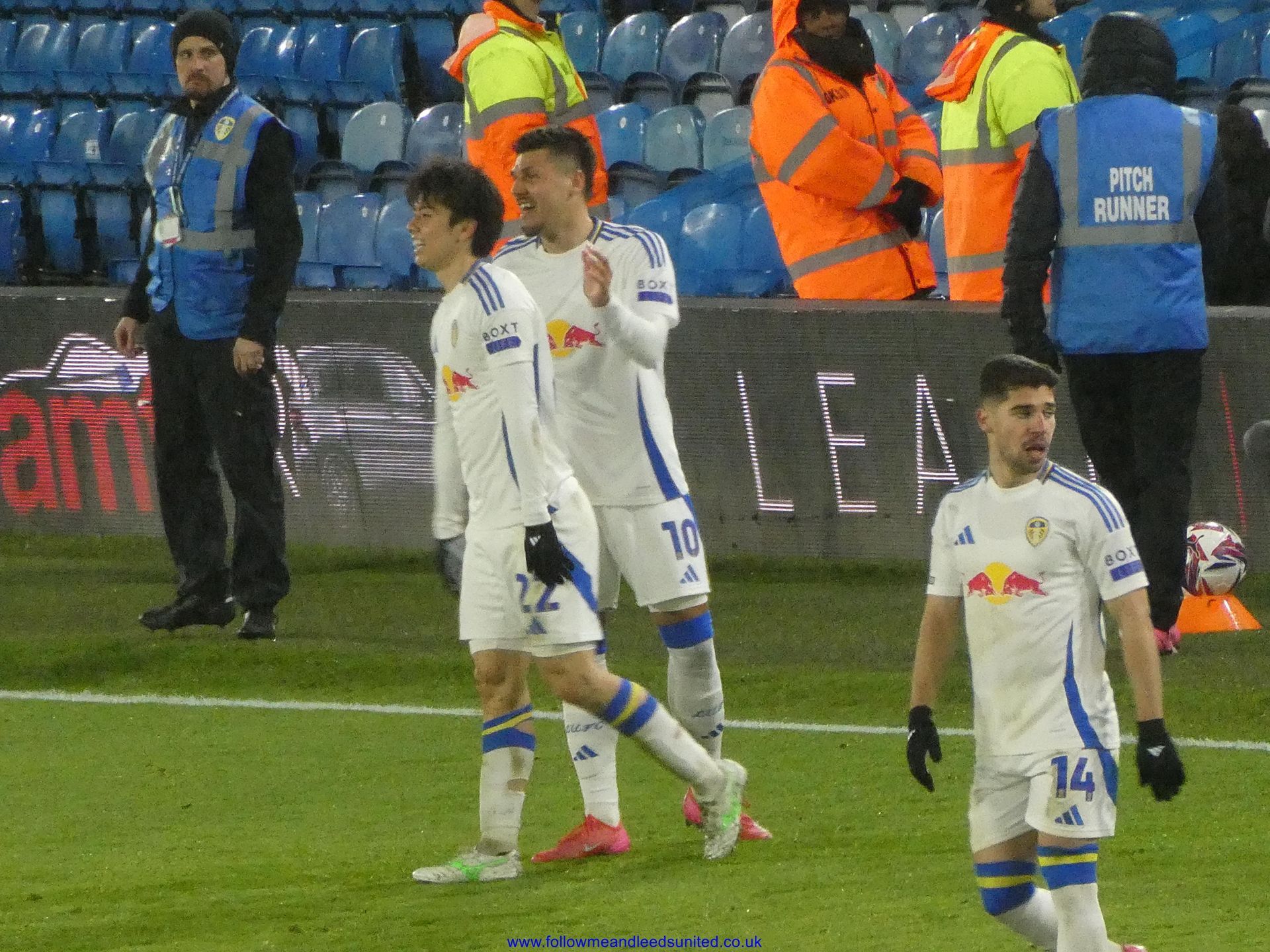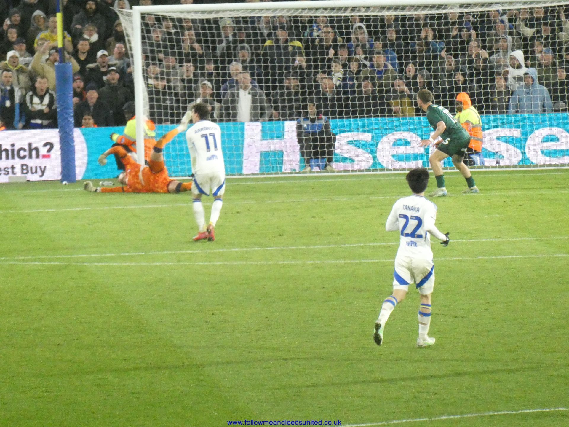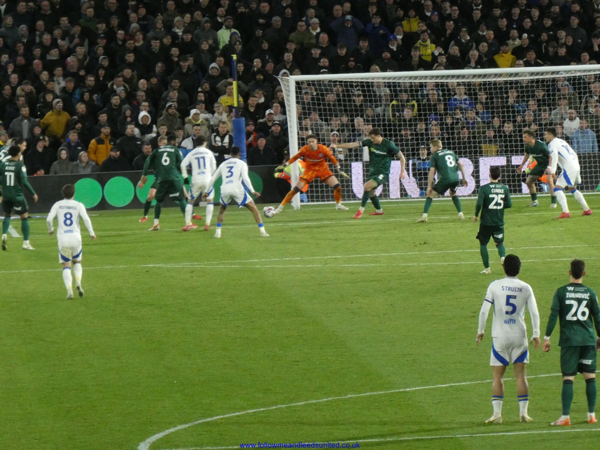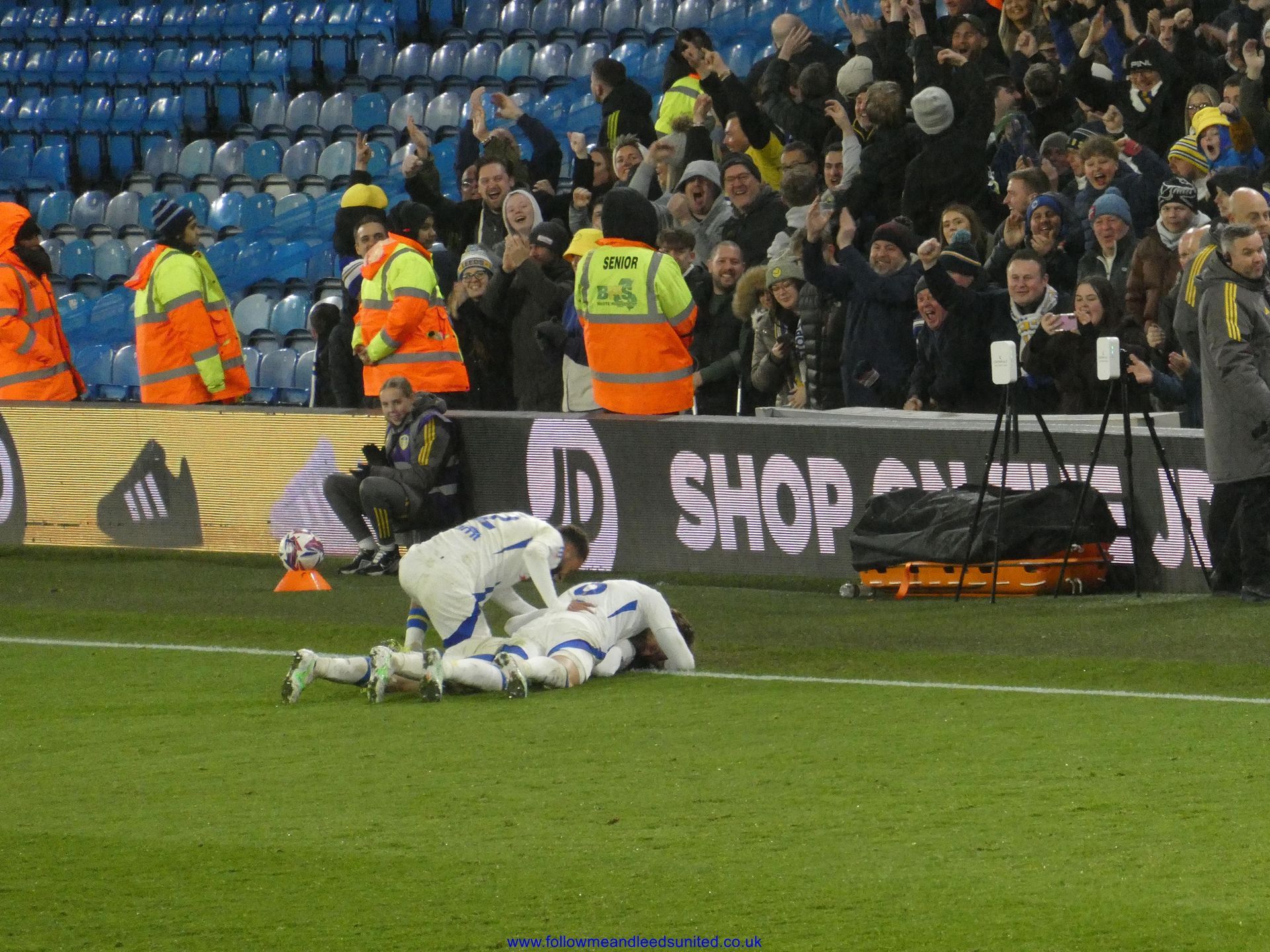Leeds started off at a blistering pace after being turned around by Millwall, so we were attacking the Kop in the first half. I hadn’t realised the goal was so early in the game as Solomon sent a low shot along the byline that ended up in the net at the near post courtesy of Millwall’s captain. That set the tone for Leeds to keep attacking which is the best form of defence and it showed tonight as we limited Millwall to very few attacks. Millwall were chopping our players down left, right and centre but the referee never gave a yellow card out. I was half expecting us to challenge them and get the first card but thankfully we didn’t. We were attacking in droves, and Aaronson had a shot saved by their keeper. Leeds scored a second goal that was disallowed for offside after good work in the penalty area from Aaronson gave Piroe the chance to put the ball into the net. I was convinced it wasn’t offside and according to half time reports; this was confirmed to be the case. It would have made a difference by taking any pressure off us. The sting was taken out of the game as their player went down injured. He went off the pitch at the slowest pace to be subbed, only to take forever and the referee to let them do it.