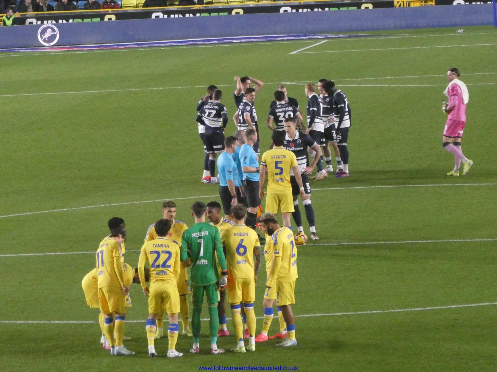 Millwall started the stronger of the sides with the referee blowing his whistle for every little tackle in their favour, even when Leeds won the ball. It was a very fast paced game, and we had so much possession, although our three shots on target in the first half were quite soft with no power in them which their keeper saved easily. I’d said we needed to change that possession into goals but then got that feeling that they would score with their first real attack, which turned out to be the case just before half time. That was disappointing but I still felt we could get something out of the game at that point.