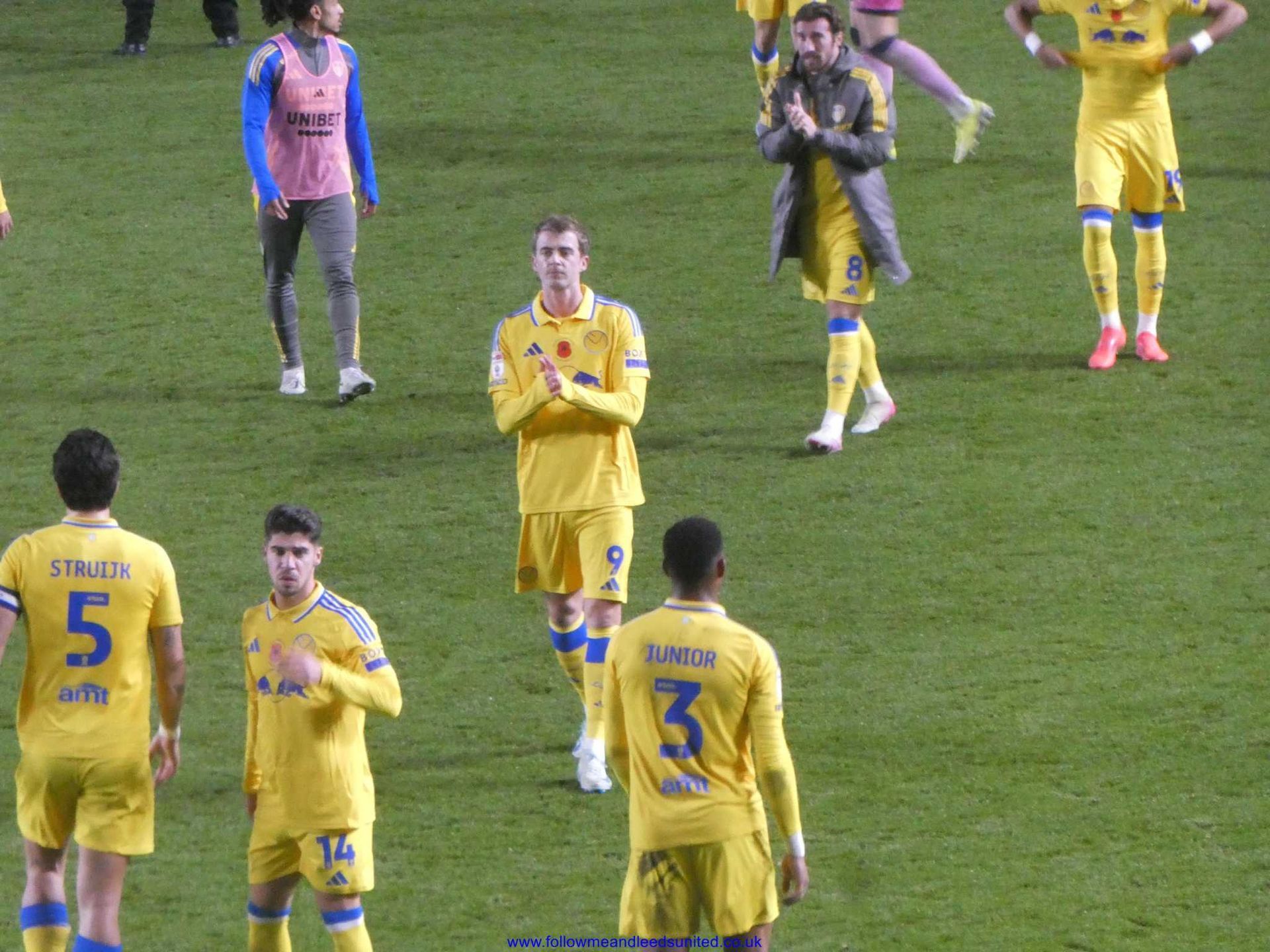 The second half saw us attacking the goal in front of the Leeds fans as we started off strongly. Gnonto came in with the ball from the right, went past two defenders on the edge of the box but instead of then shooting on sight, he carried on to the other side of the box where he lost the ball. I found that frustrating as a gap had appeared and he should have had a go at goal. James had a couple of shots saved by the keeper, but we didn’t really trouble him apart from having a goal chalked off for offside. I got a great photo of us looking onside but apparently replays showed Piroe offside sadly. That would have put a different perspective on the game in my opinion. It wasn’t to be as the whistle blew for full time with us being defeated by the first half goal. What their keeper did next was baffling, as he goaded the Leeds fans with excessive celebrations. I hadn’t heard him getting any stick either, but it was very unprofessional, and he should be pulled up for it.