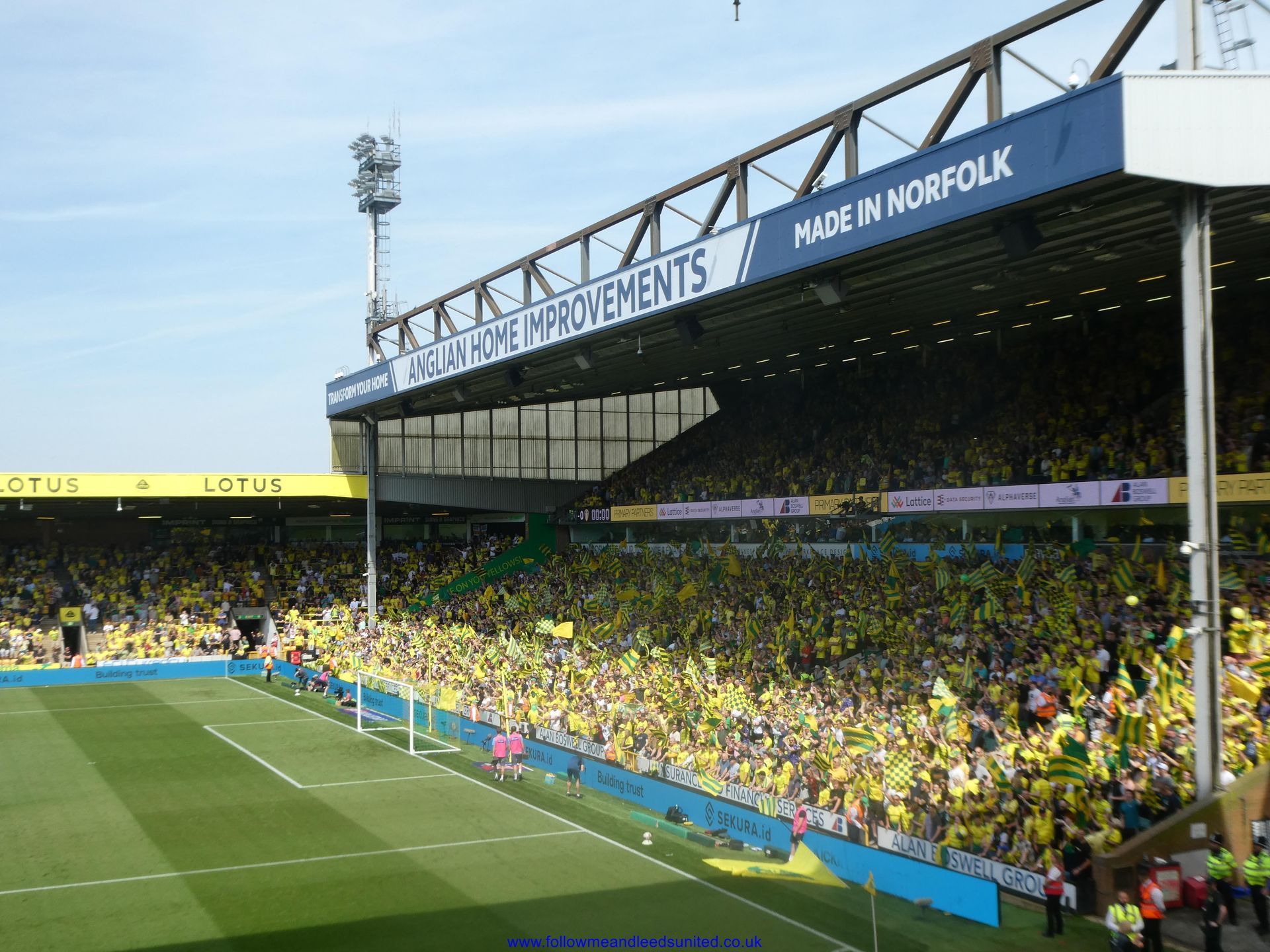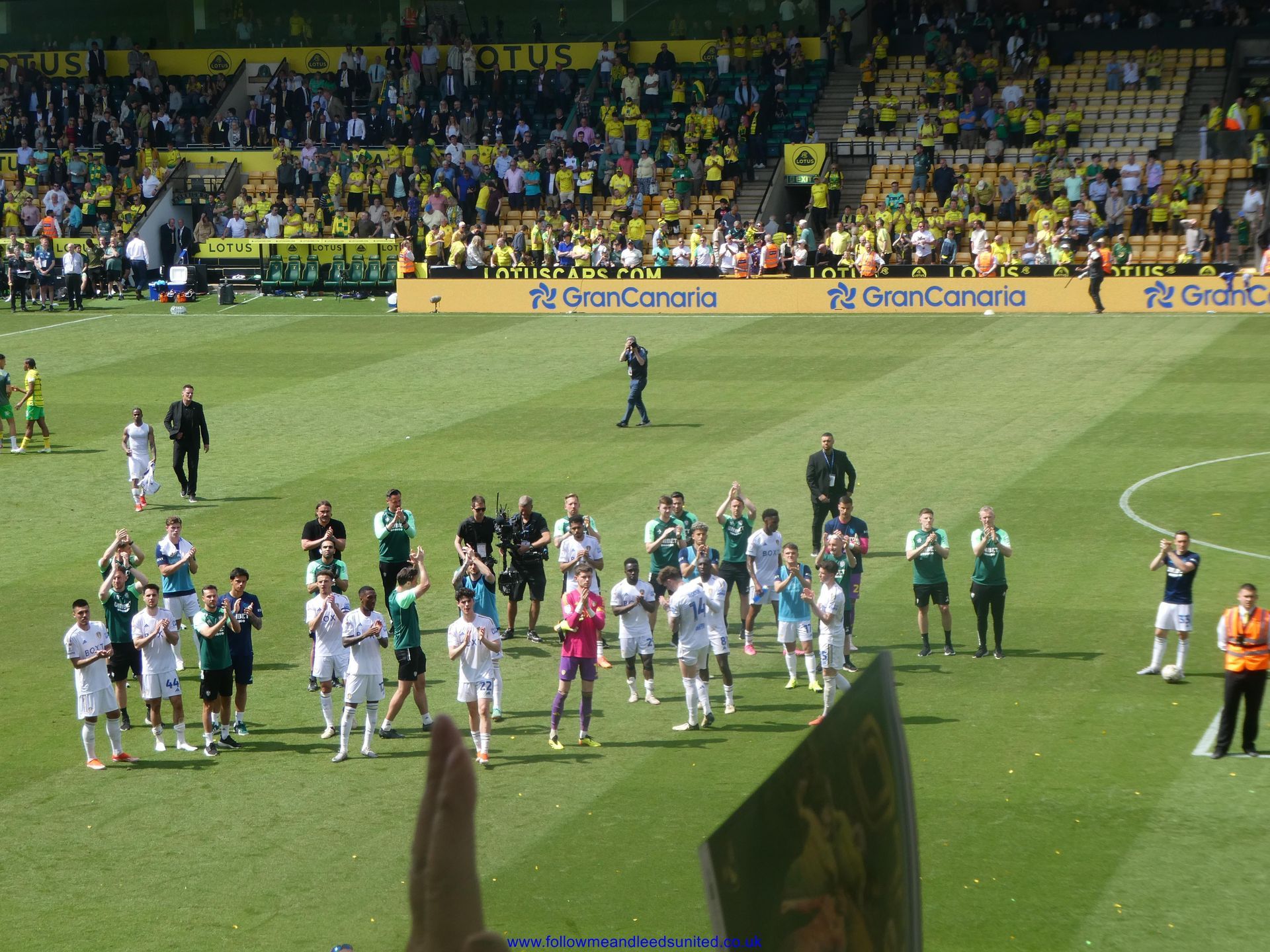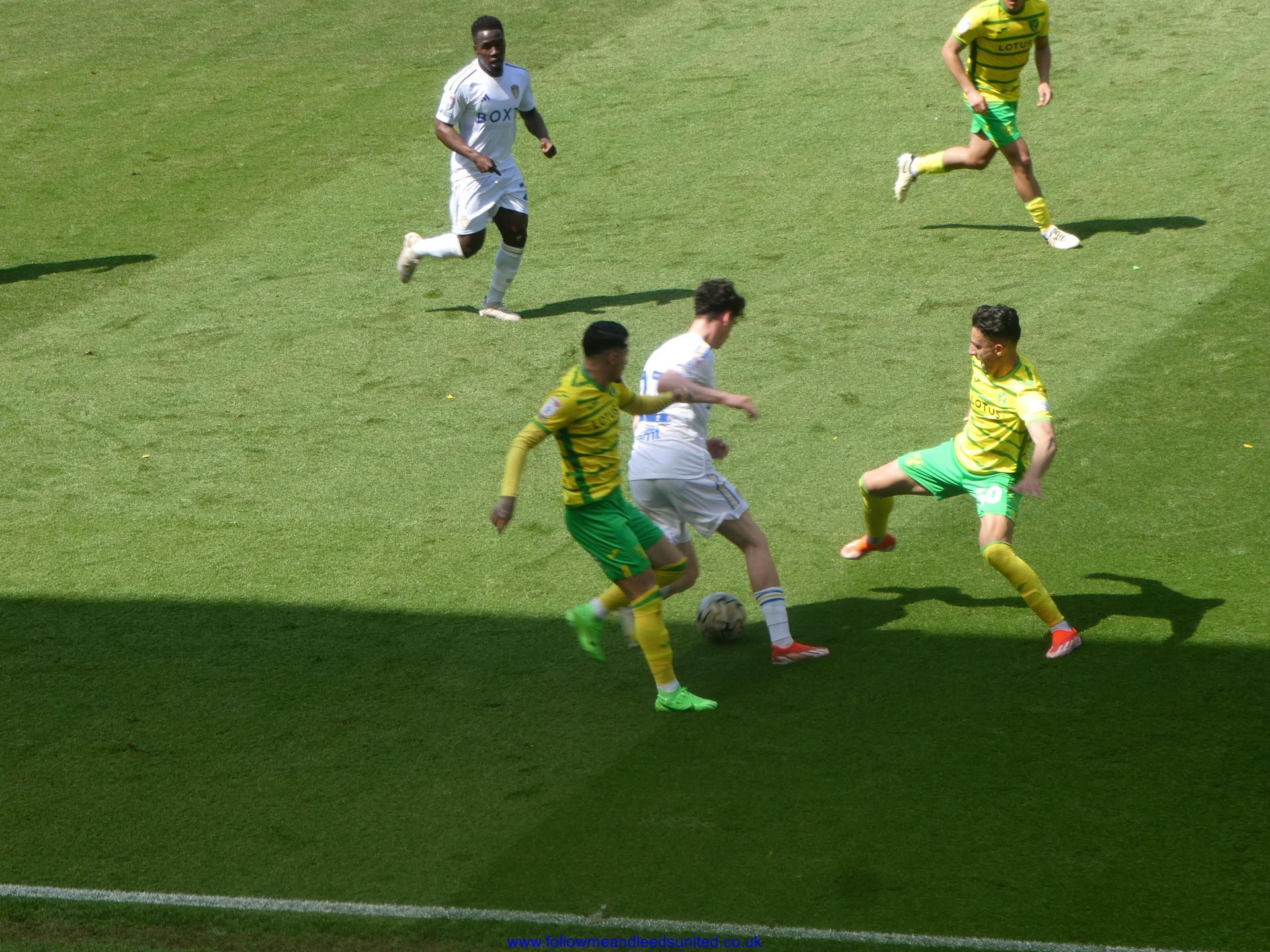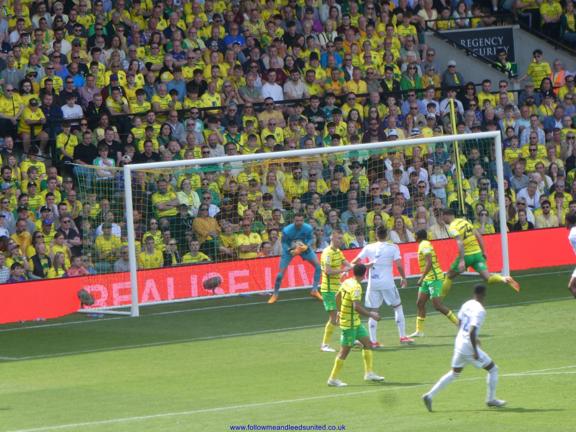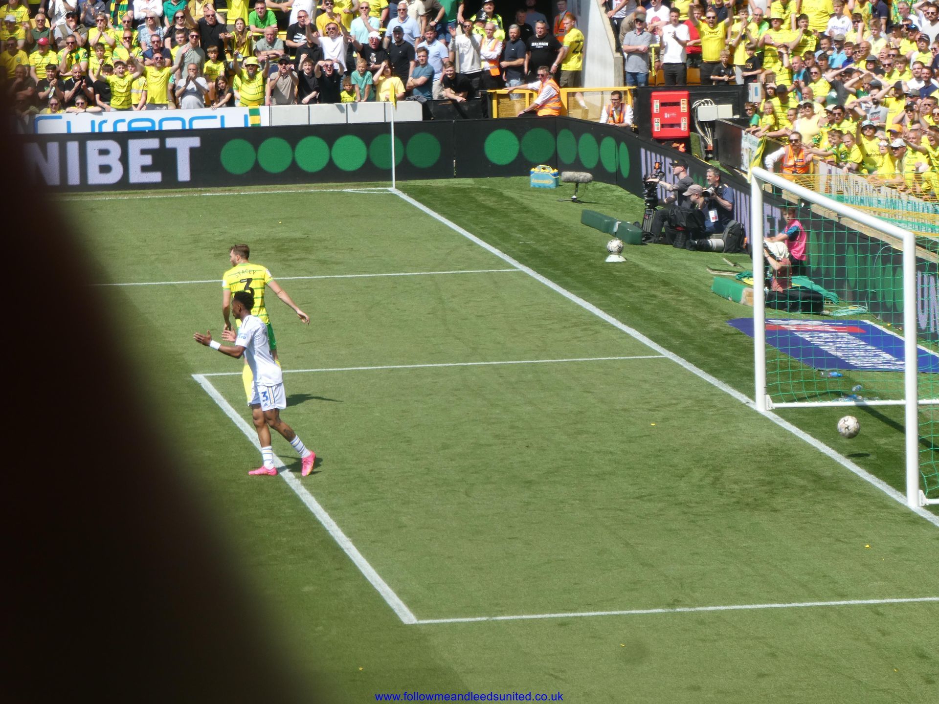 Leeds were attacking the goal in front of us in the first half. We had our hearts in our mouths a few times as we invited Norwich to attack us by playing deep and giving the ball away too easily. Farke had changed the formation of the team but it took a while before we settled into the game after misplaced passes before suddenly, we showed what we could do. With one touch passing, the ball ended up in the net courtesy of Firpo only to be disallowed for offside. It was a very tight decision by the linesman as when the ball was kicked Rutter was level with their defender on the far side, but he made a mockery of that in the second half when he wasn’t up with play twice and let Norwich play on.