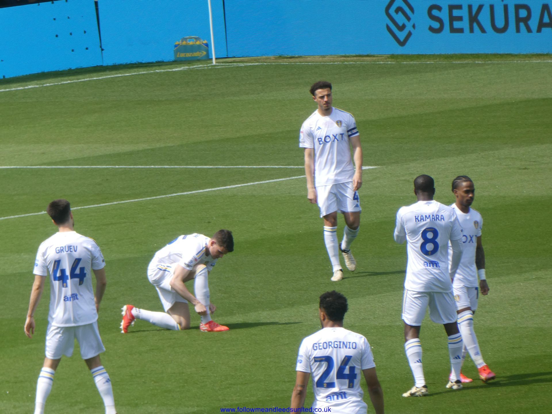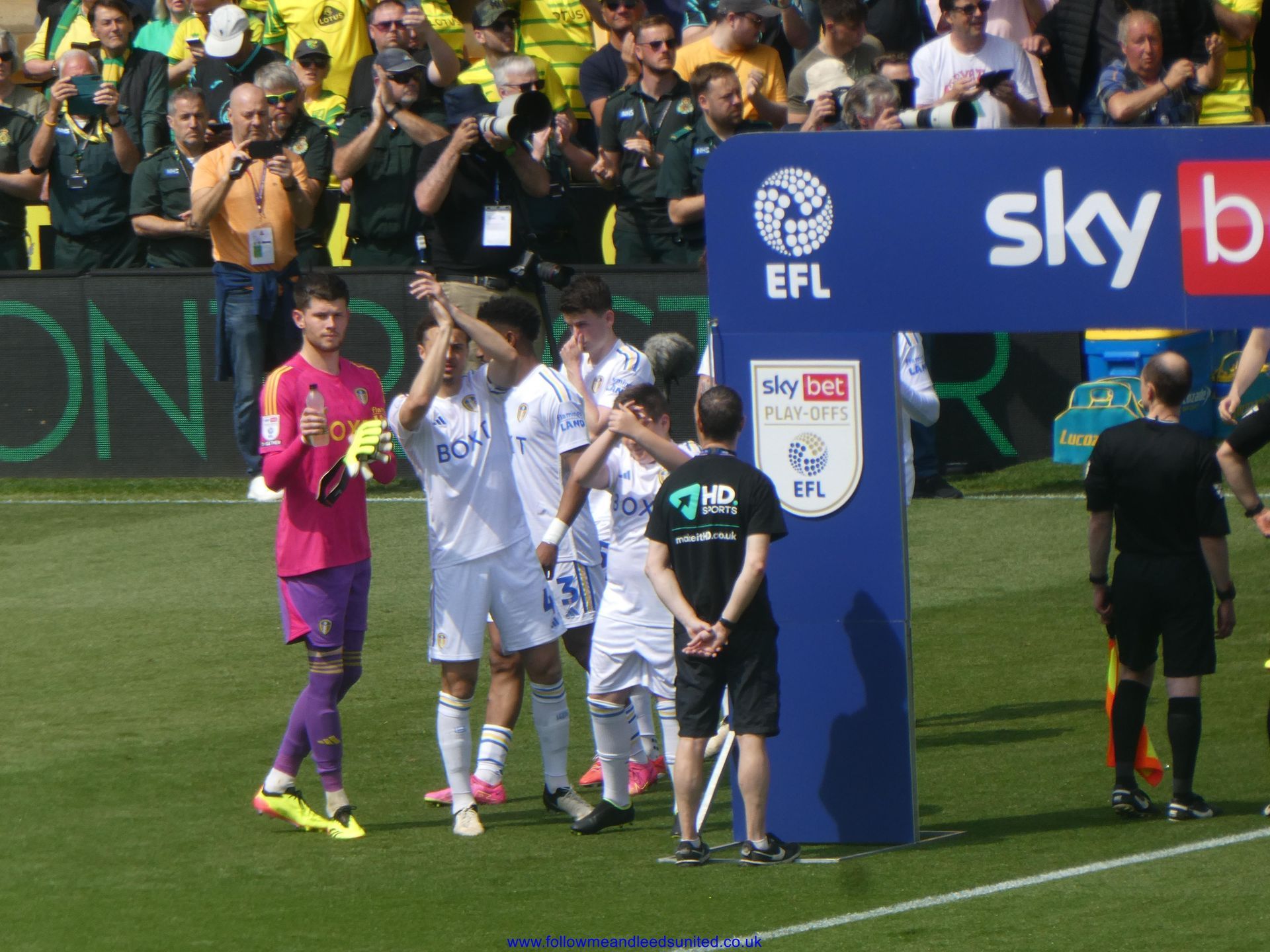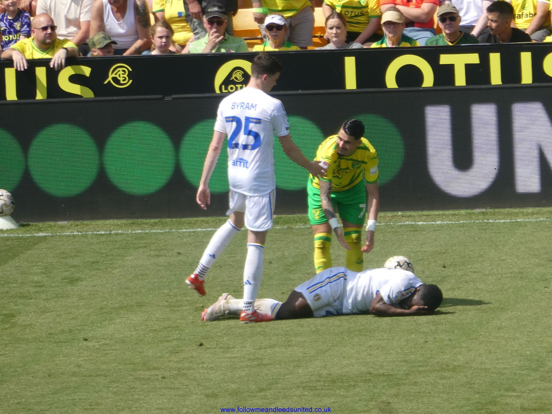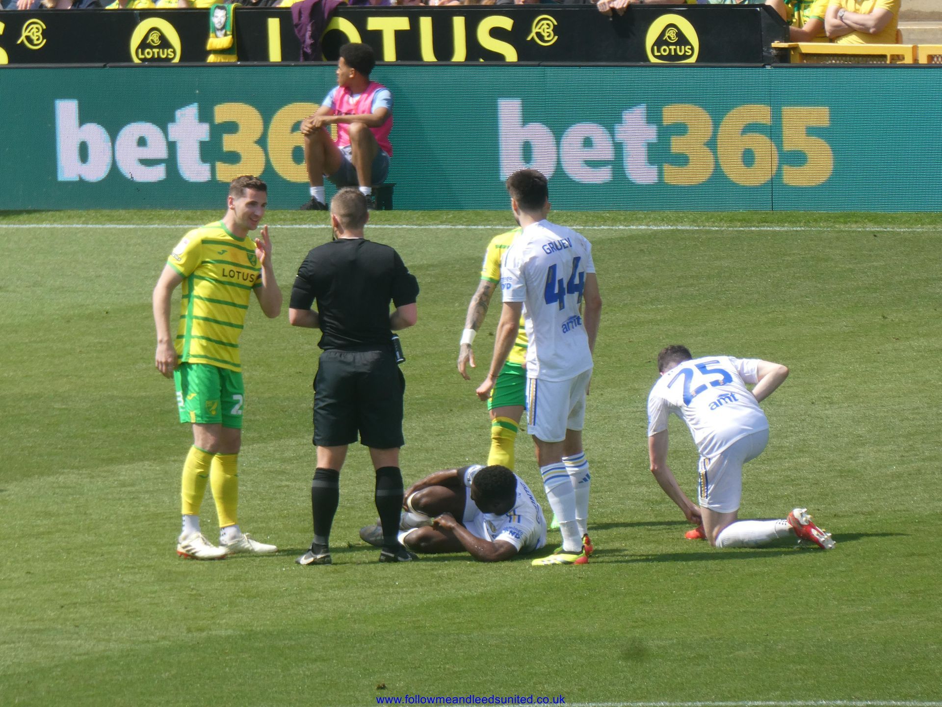 The second offside was way off but not given. With Norwich getting so many free kicks given for fouls, the referee came under fire from the Leeds fans especially as he’d played on when Gnonto was brought down on the edge of the box. Leeds did win a free kick and Summerville’s shot was put out for a corner. Gnonto had a good strike which was blocked and although Norwich had looked dangerous a few times, we went in on level terms at half time. The second half saw chances limited for both teams, but it was good to see the Leeds players find some fighting spirit again as it has been missing as of late.