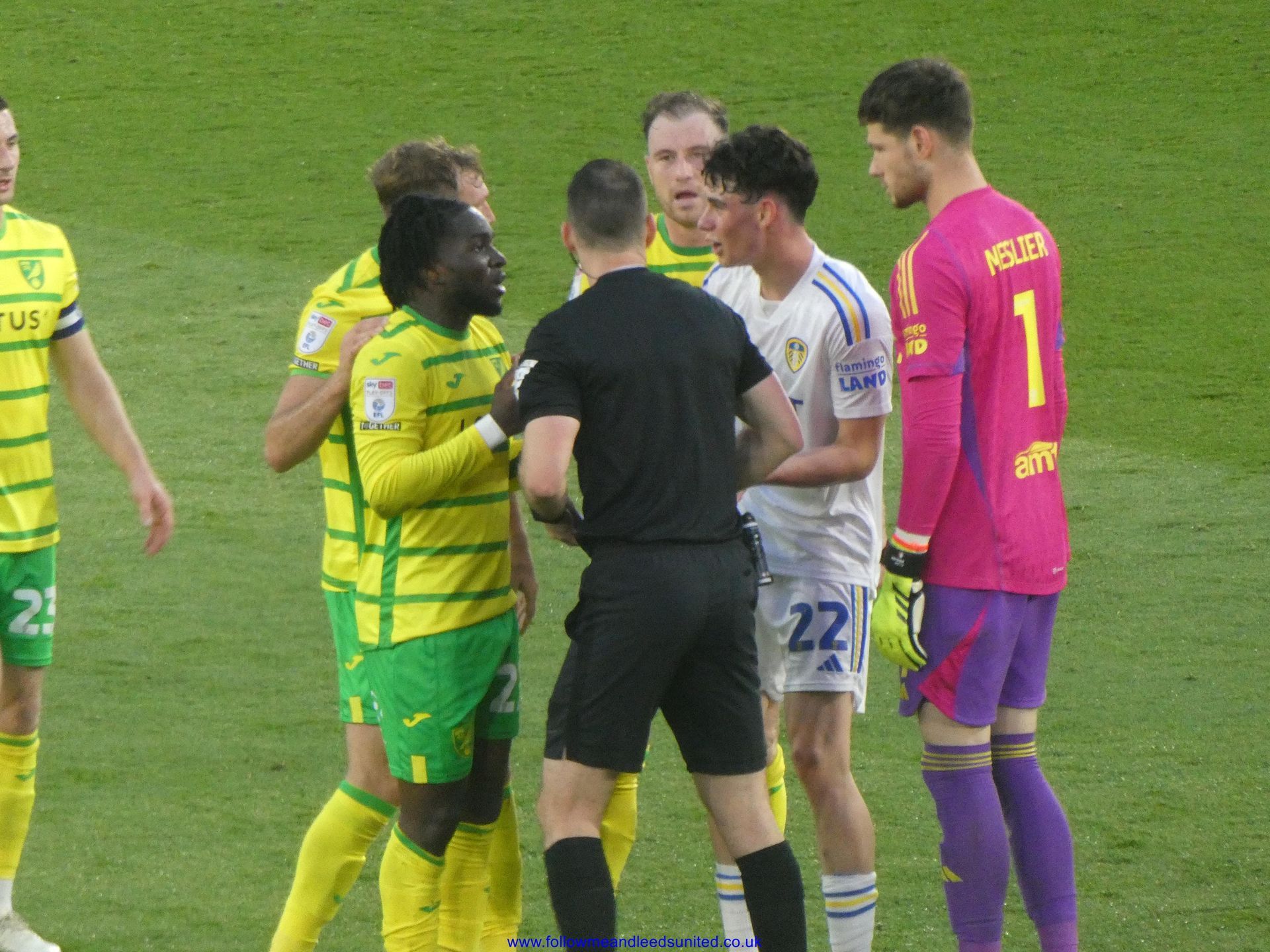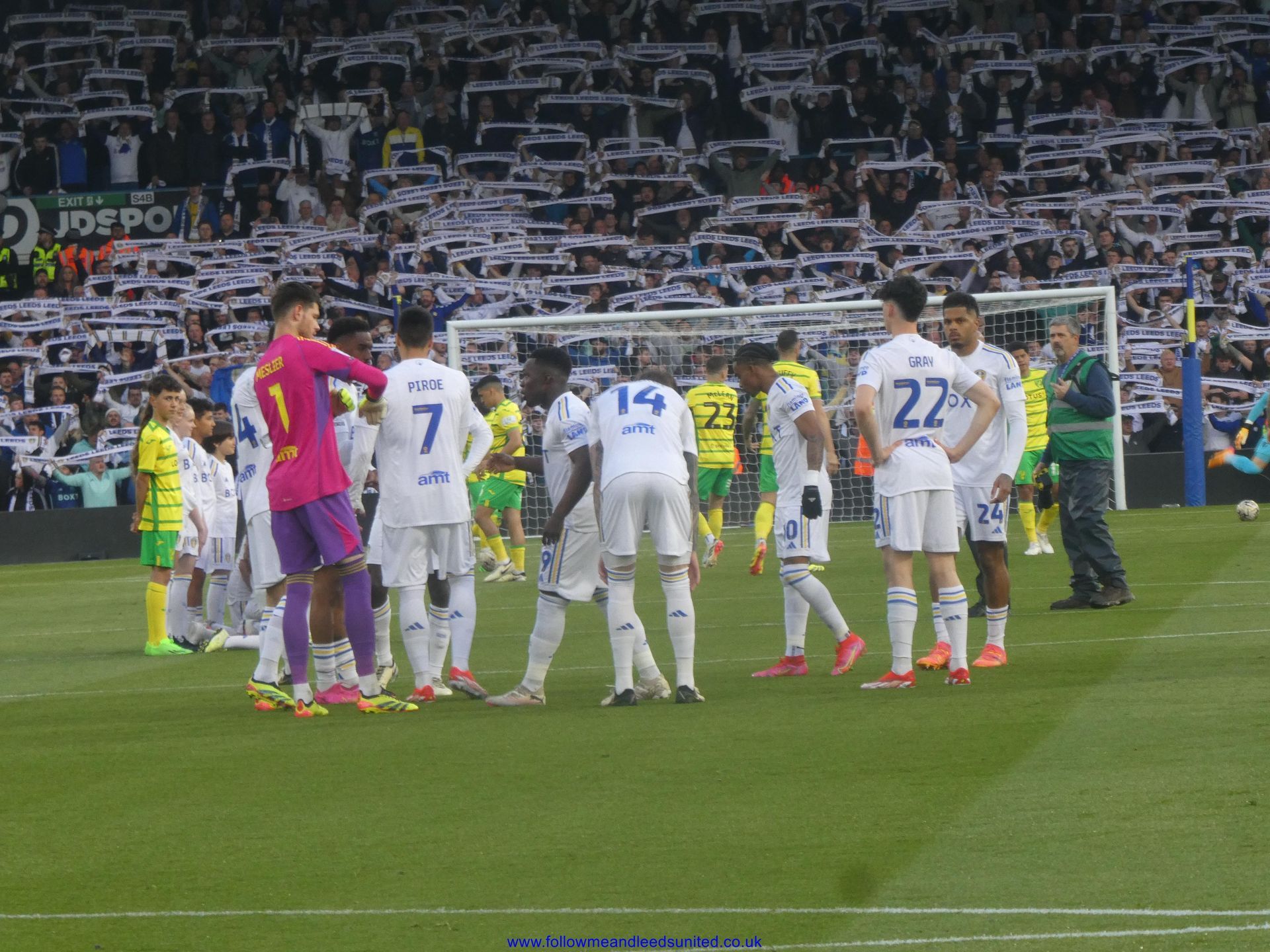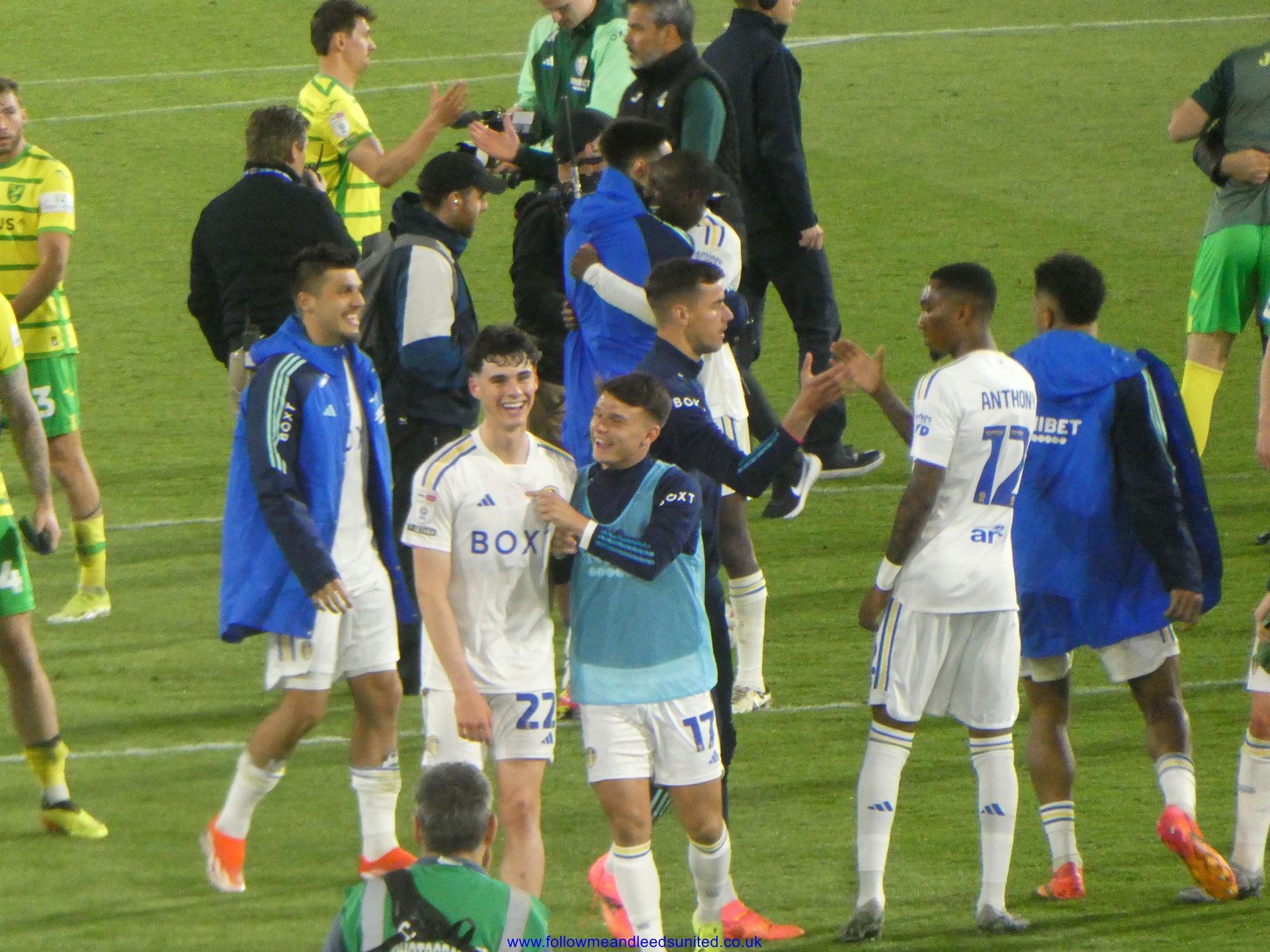 With the fans on fire as well as an electric atmosphere, Leeds got off to a fantastic start when Gruev hit a free kick straight into the net to give us an early lead. Obviously, the lads had listened to my advice pregame telling them to shoot on sight! Some fantastic play from Gray who was playing right back, saw him send a great pass to Gnonto. He ran forward then sent a fantastic cross into the box and Piroe doubled our lead as Elland Road went wild. Norwich nearly got straight back into the game as they counter attacked and got the better of Ampadu and were clean through with only Meslier to beat. He pulled off a stunning save to keep Norwich out and maintain our two-goal lead. That was a vital save from Meslier as it would have given them a chance to get back into the game. Leeds weren’t finished there as Piroe and Summerville with some lovely play down the left hand side, saw Piroe run to the edge of the box, pass it into the middle where their defender under pressure from Summerville, passed the ball into the path of Rutter to send a fantastic rising shot into the net to give us a three goal lead in the first half. Rutter nearly got another but was kept out by Norwich as we went into the break three goals to the good.