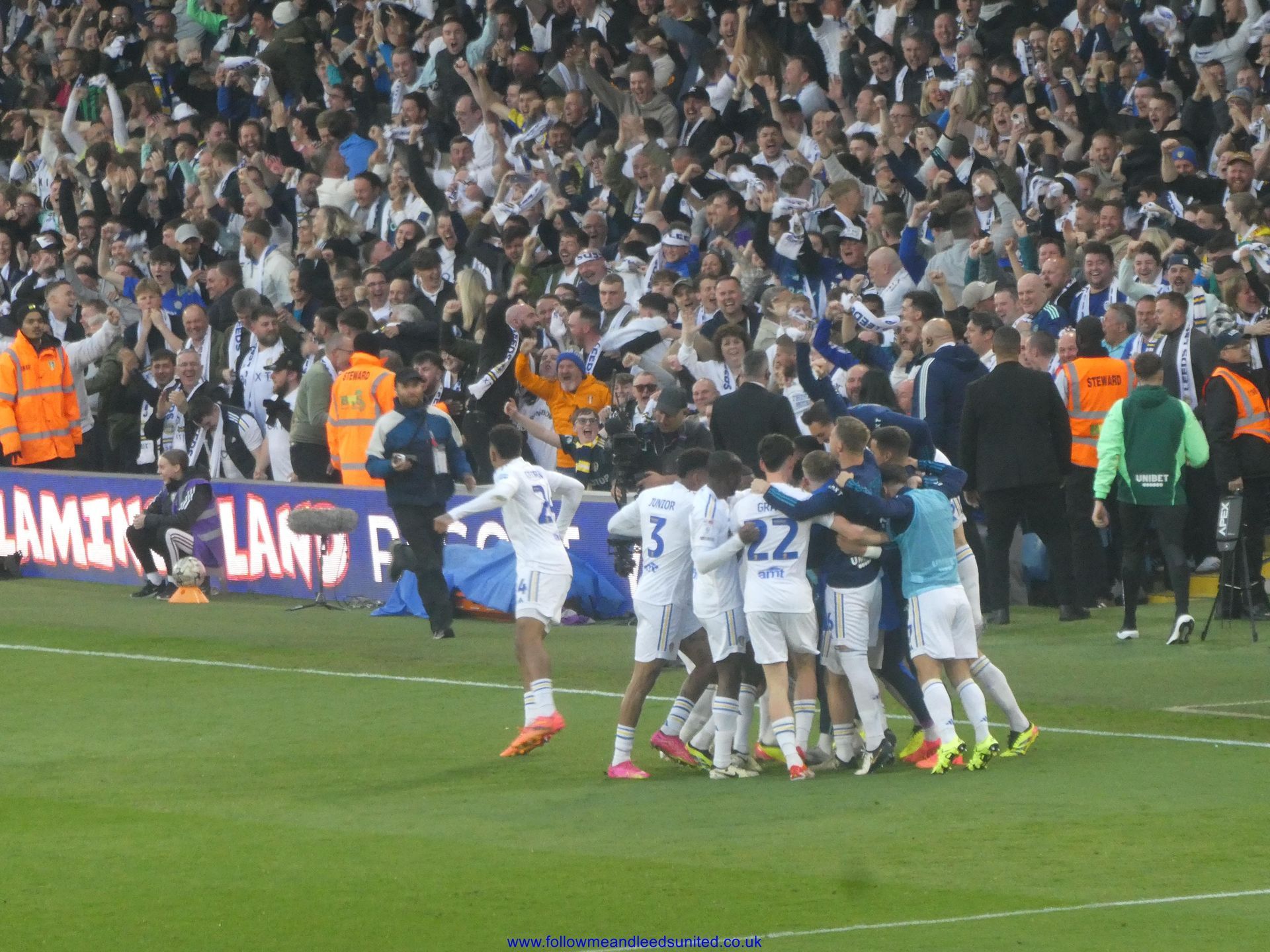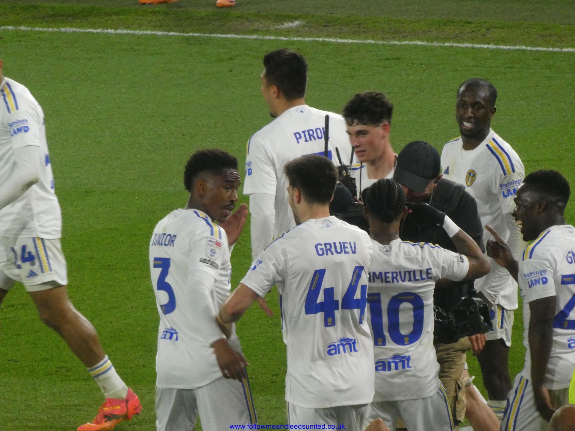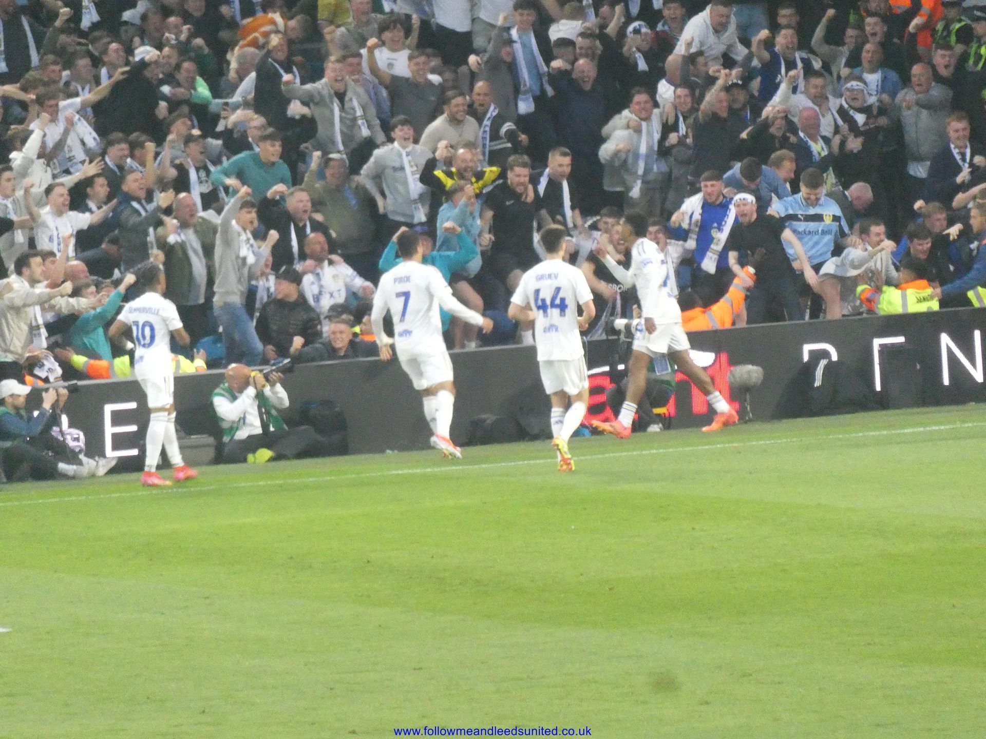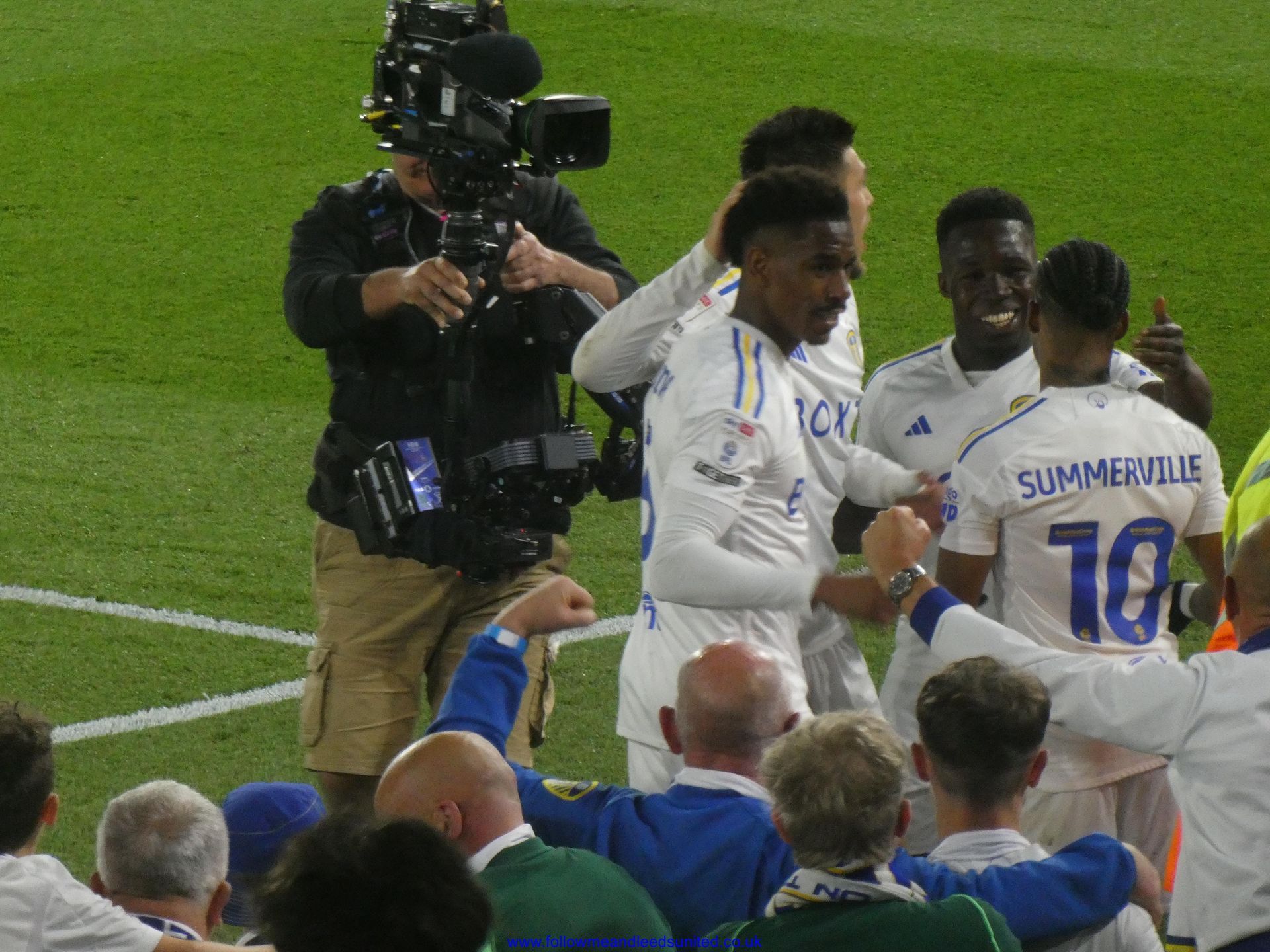 The second half started off as explosive as the first and we were unlucky not to get a couple more goals. Another great move saw Summerville running forward in the middle this time. His pass to Gnonto saw him hit a low shot which their keeper fumbled, Firpo reacted quickly to get to the ball and pass it back into the middle for Summerville to get a fourth goal on the day. Leeds fans dared to sing Wembley, Wembley and que sera sera as Elland Road was bouncing.