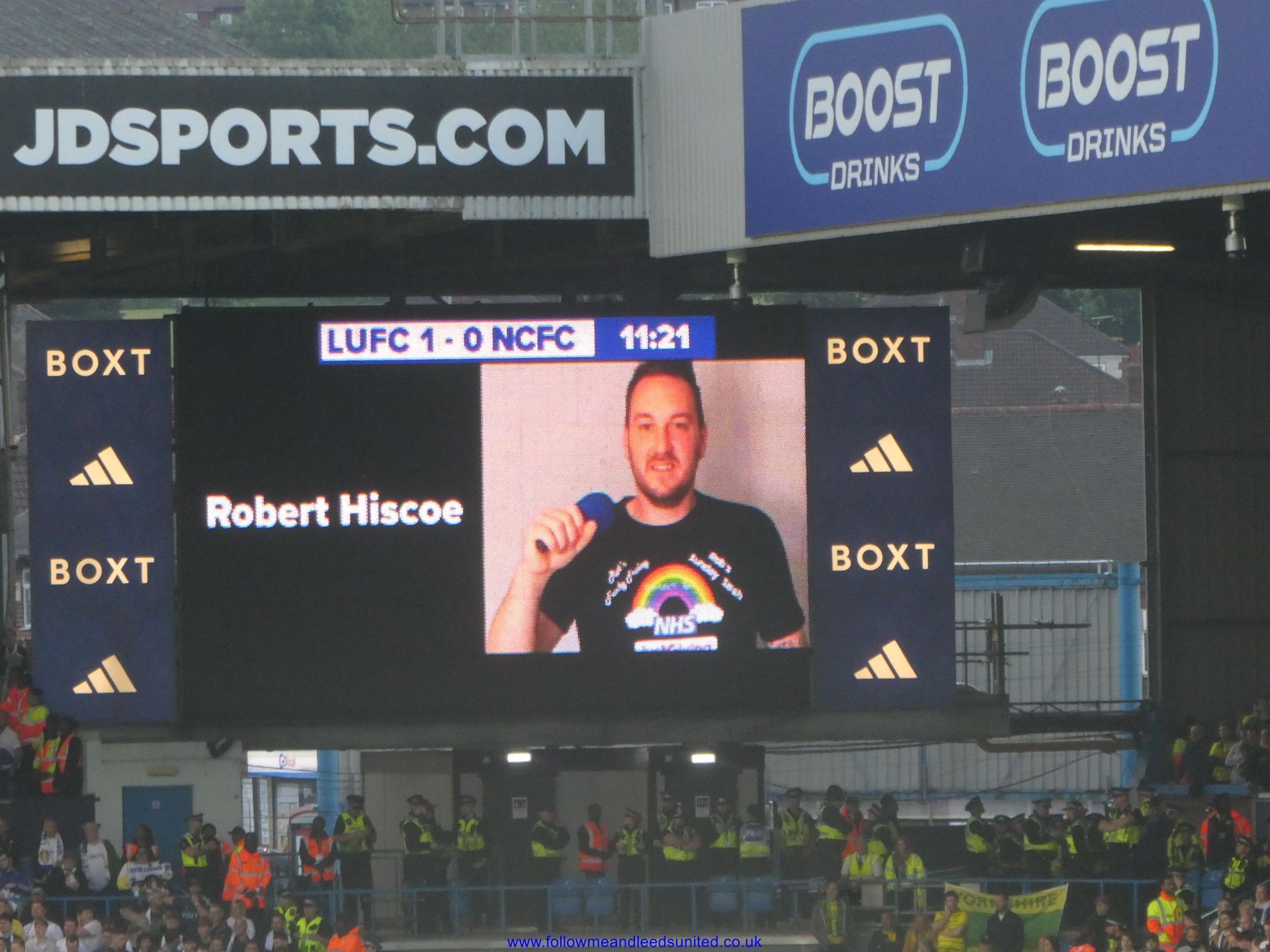 It was great talking to everyone before the game and also good to see Gilly and Sean from Australia and another lad from Greece in the Peacock. Also, a shout out to Paul who has supported Leeds United for 73 years! We went into the fanzone before the game to see Paul Wilson perform in memory of Rob Hiscoe who was killed recently. There was also an applause on 11 minutes for him in the ground which must have been touching for his family who were in the crowd. Rob raised over £16,000 for the NHS through lockdown, and I heard before the game that his organs were donated to save others too. He will be missed greatly by all those who knew him. Rest in Peace Rob and thoughts with your family and friends.