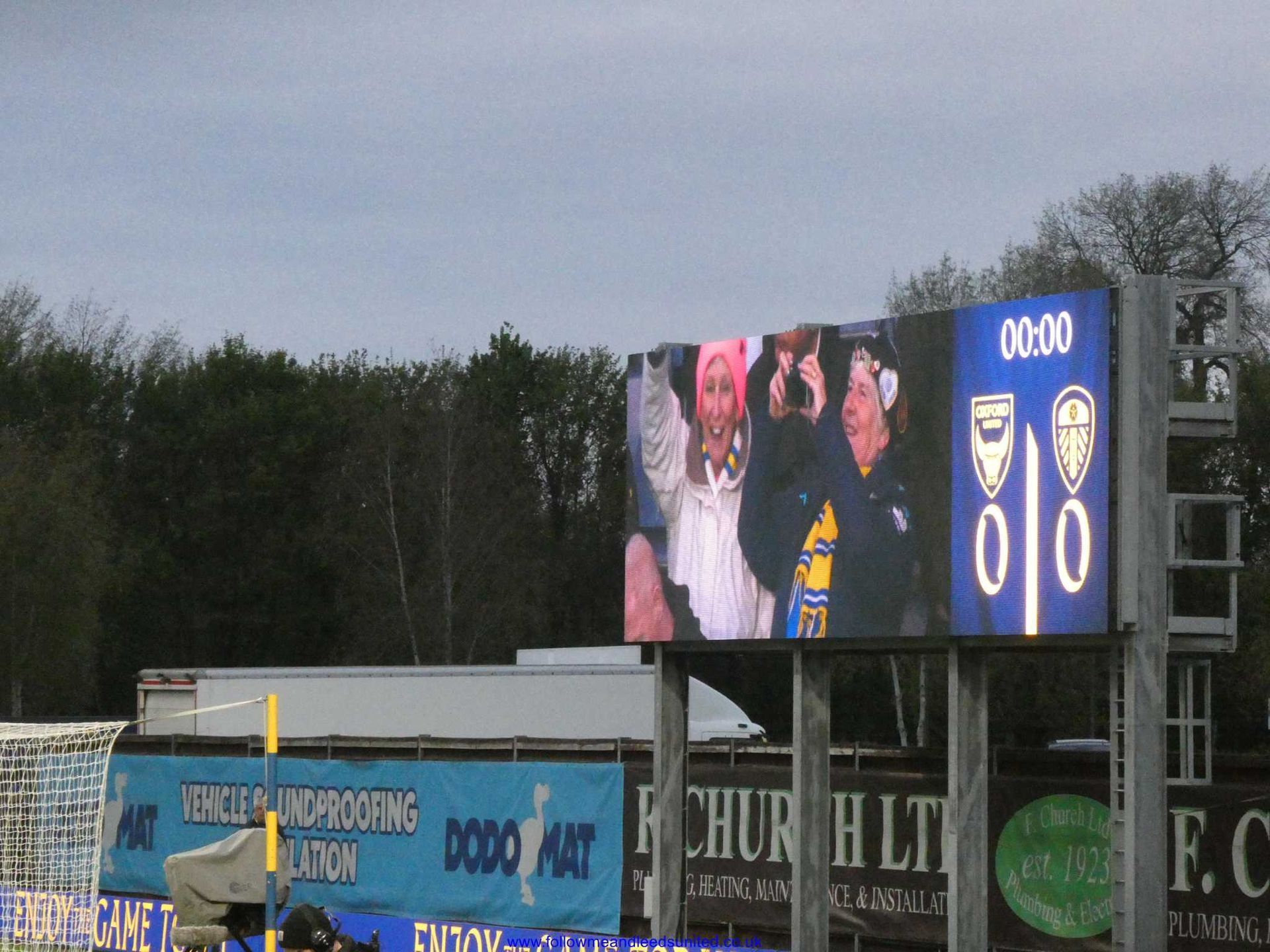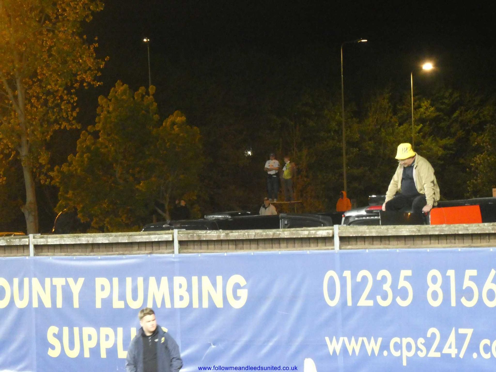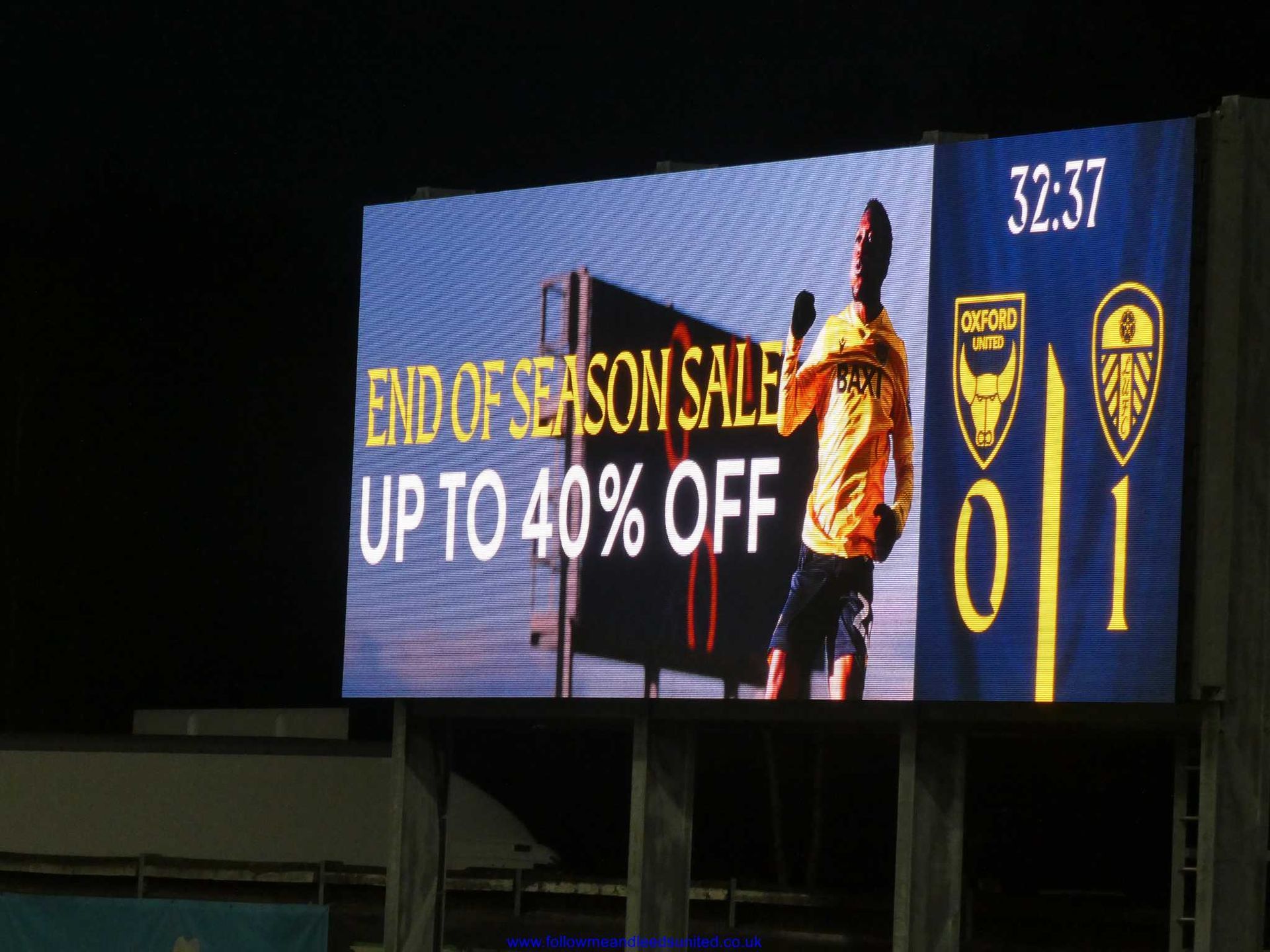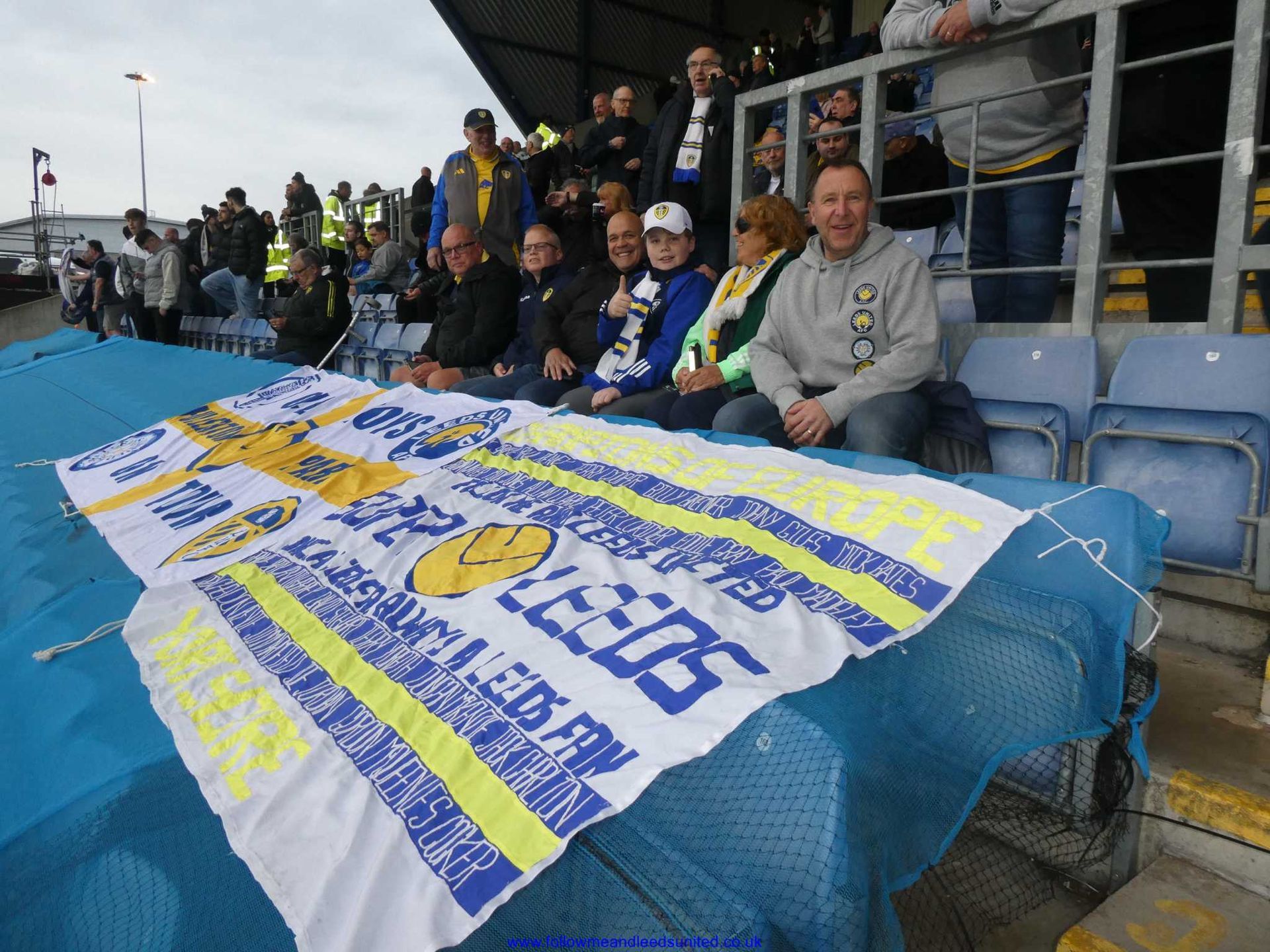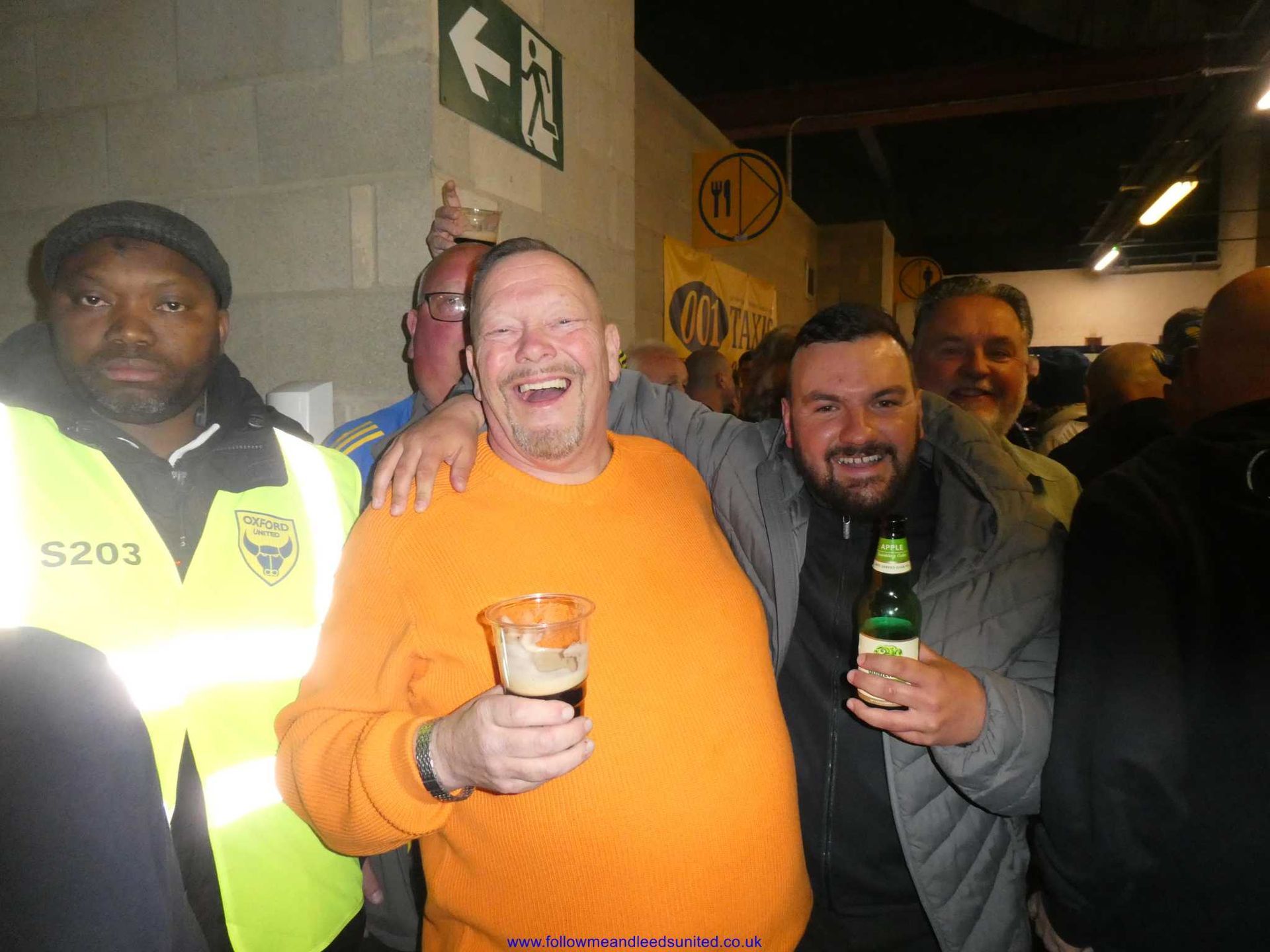 At our pub stop it was nice to talk to some Oxford fans who still wished us good luck despite wanting their team to win, as they’d be fighting for the points as they were near the relegation zone. The last time we’d come to this ground was for a pre-season friendly, but I couldn’t remember when but was reminded that it was for Bielsa’s first game. It’s still unique with only three stands in place but it gave some Leeds fans the chance to watch from the car park and others in the distant trees. This was another ground where we were treated well as far as I was concerned. The only issue was getting soaked before the game when I switched the tap on in the ladies sink only for a torrent of water to overflow everywhere. I wasn’t the only one to find that out the hard way.