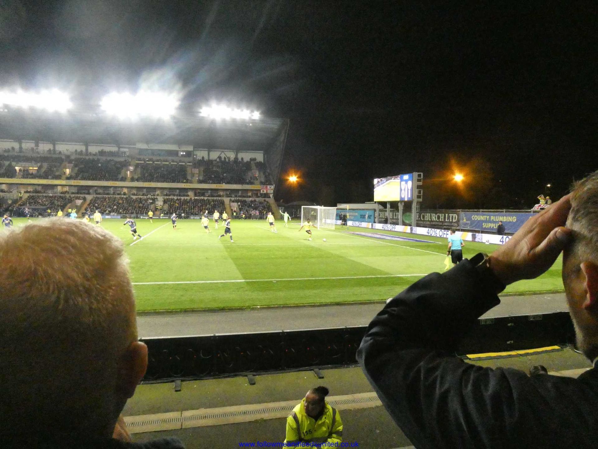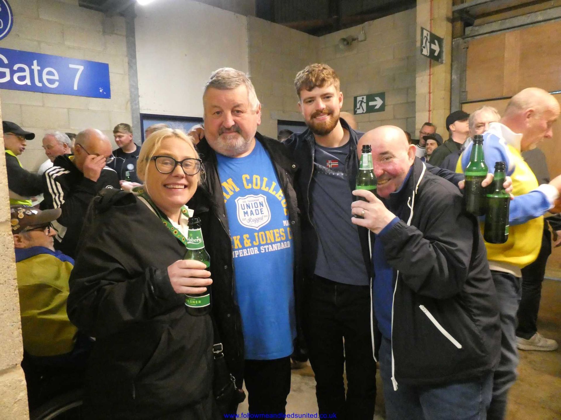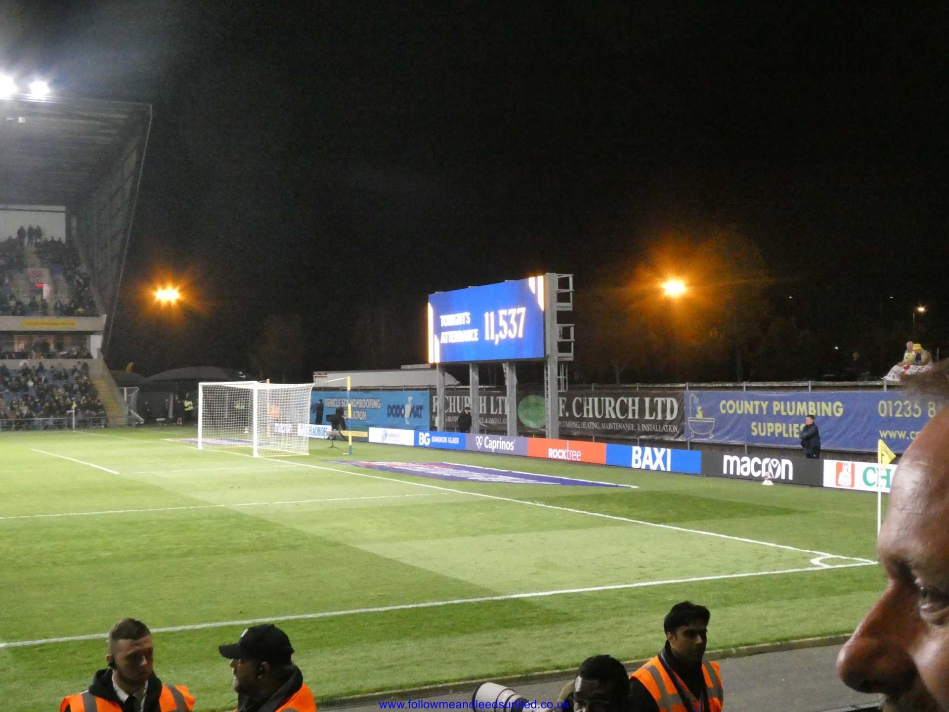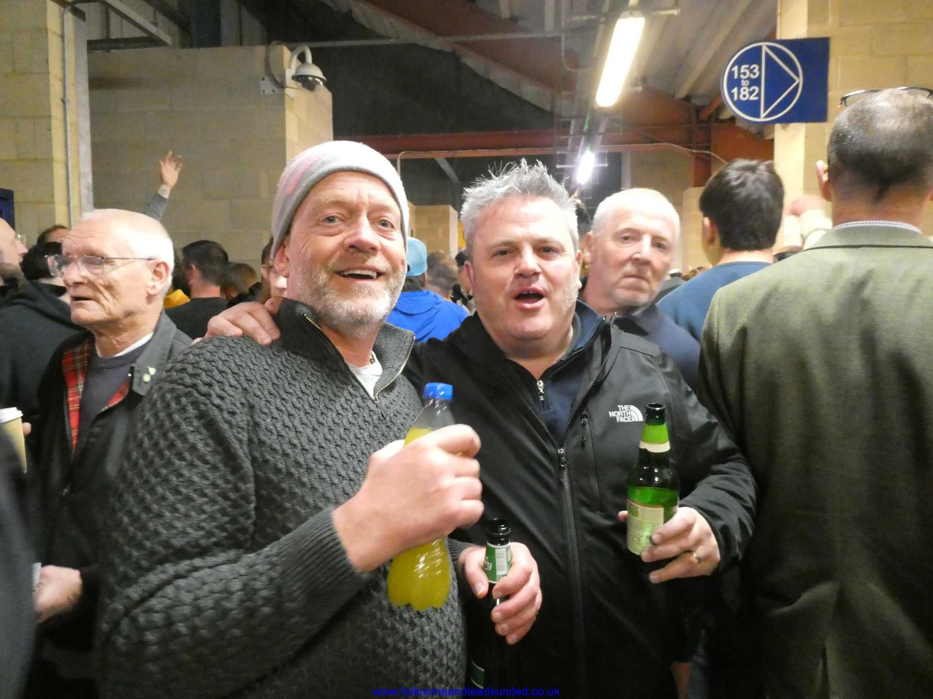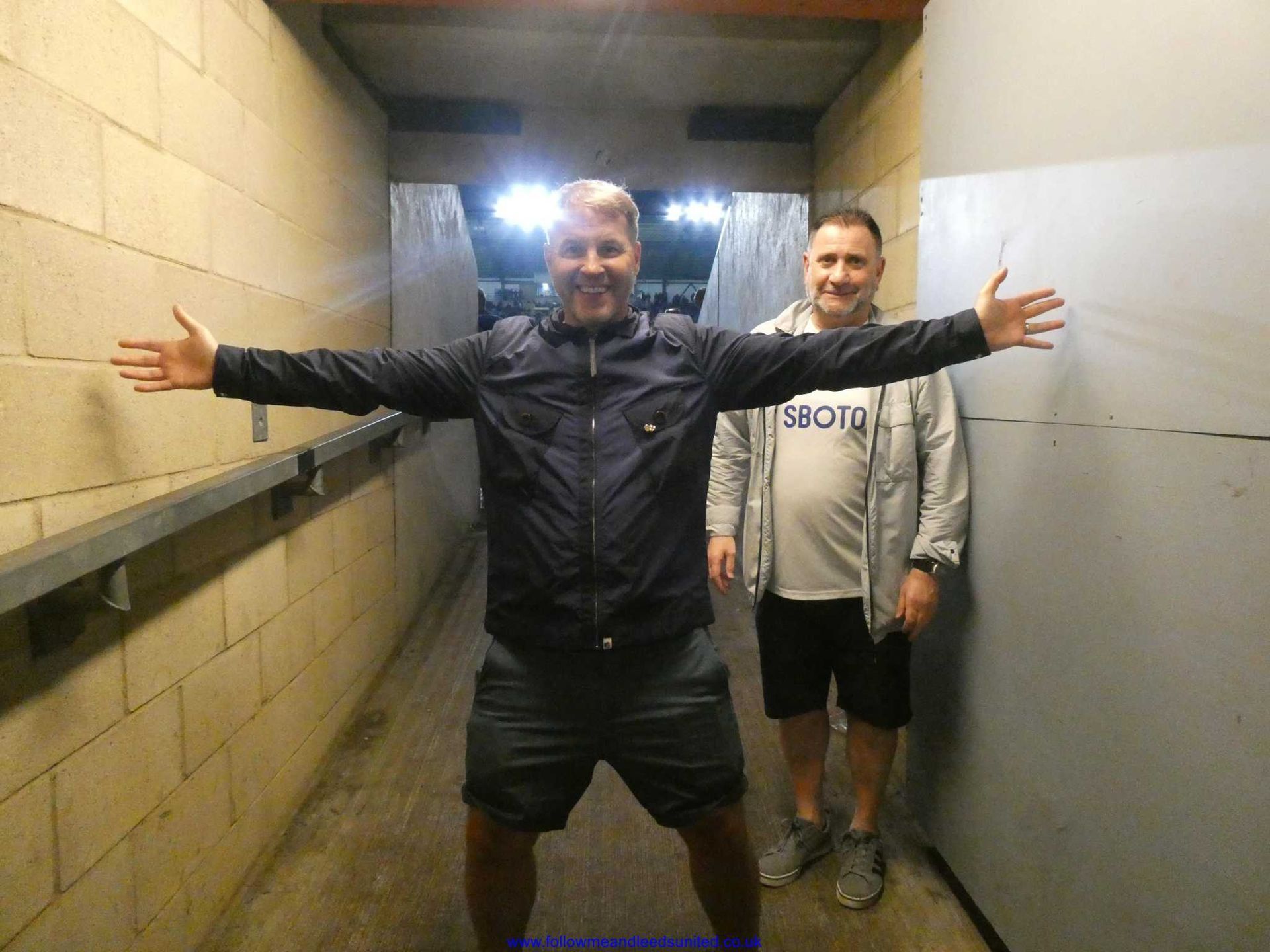 At our pub stop it was nice to talk to some Oxford fans who still wished us good luck despite wanting their team to win, as they’d be fighting for the points as they were near the relegation zone. The last time we’d come to this ground was for a pre-season friendly, but I couldn’t remember when but was reminded that it was for Bielsa’s first game. It’s still unique with only three stands in place but it gave some Leeds fans the chance to watch from the car park and others in the distant trees. This was another ground where we were treated well as far as I was concerned. The only issue was getting soaked before the game when I switched the tap on in the ladies sink only for a torrent of water to overflow everywhere. I wasn’t the only one to find that out the hard way.