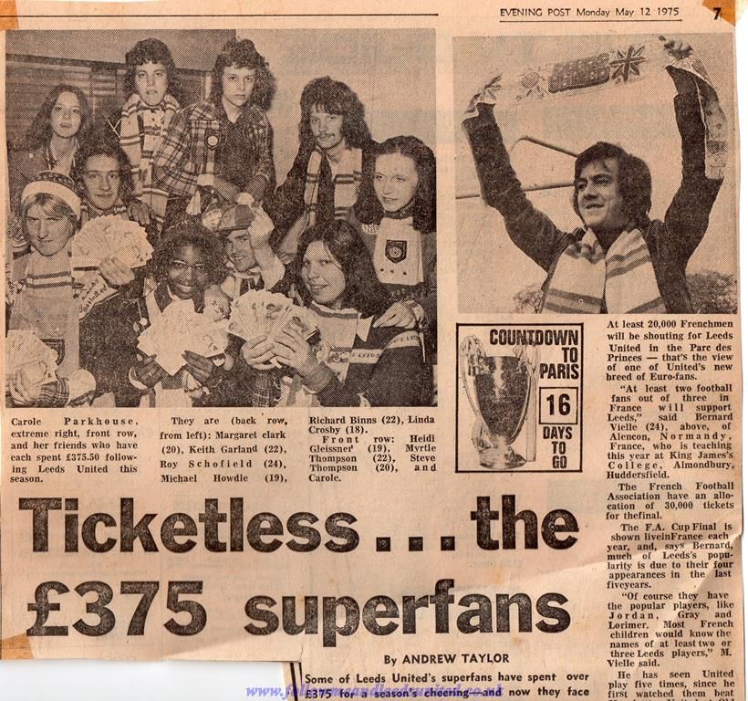 I cannot believe it is 50 years to the day that I set off for Paris for the European Cup Final. Initially I didn’t get one of the 8,000 tickets for the game despite it being my 70th game of the season but ended up with two. I was going with or without a ticket and got mine through my friend Carole’s season ticket as she got one with her programme tokens as well. By travelling with the club to the final it meant I got a further ticket as we’d travelled to Barcelona in the previous round with them. One lucky Leeds fan who I knew was the recipient of the second ticket for face value outside the ground.