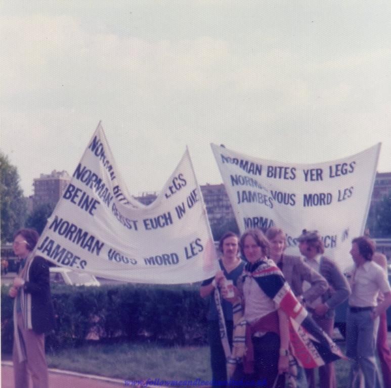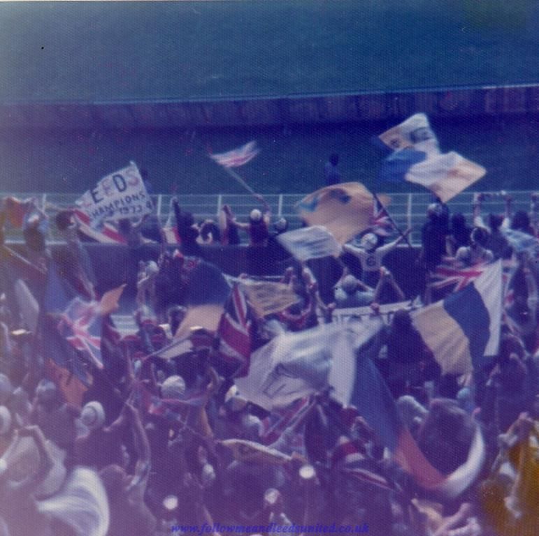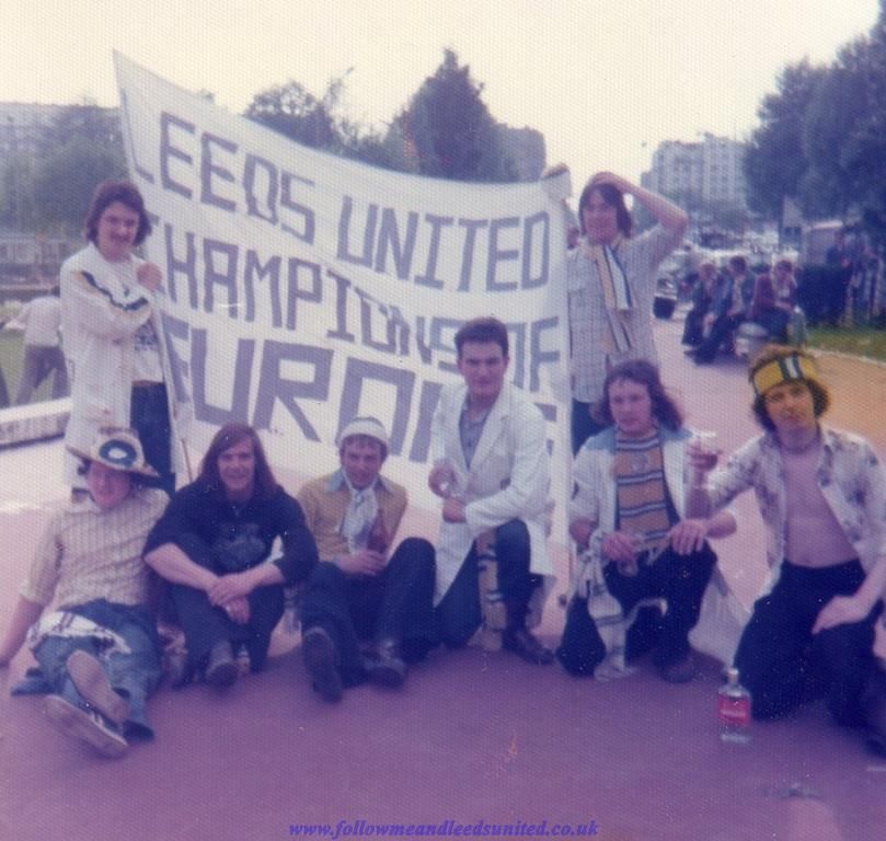 We did manage to walk around the ground to soak up the atmosphere once we arrived and it was good to get photos and have our photos taken by loads of Leeds and German fans before going into the ground. I had a fantastic view behind the goal on the front row of the upper tier next to the clock. The whole night was magical from the start, and it had been perfect, with Leeds fans singing na na na na, na na na na, hey hey hey, Leeds United for the first time. It was an incredible feeling being in the stadium and when Peter Lorimer smashed the ball into the net in front of us, I immediately looked at the linesman and referee only to see them both award a goal before celebrating. It was only when Beckenbauer went over to the referee that things started to change and we couldn’t believe it when the goal was disallowed. I’ll never forget being cheated out of our rightful trophy and we will always be Champions of Europe. WACCOE. My first book Follow Me and Leeds United includes all my recollections from this game and the previous rounds for those interested.