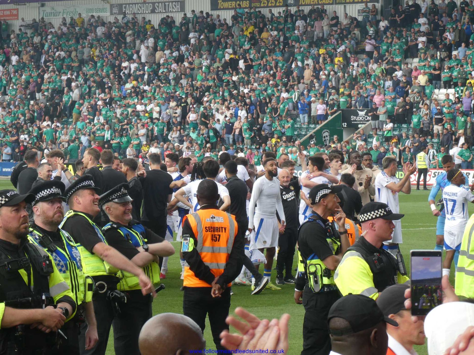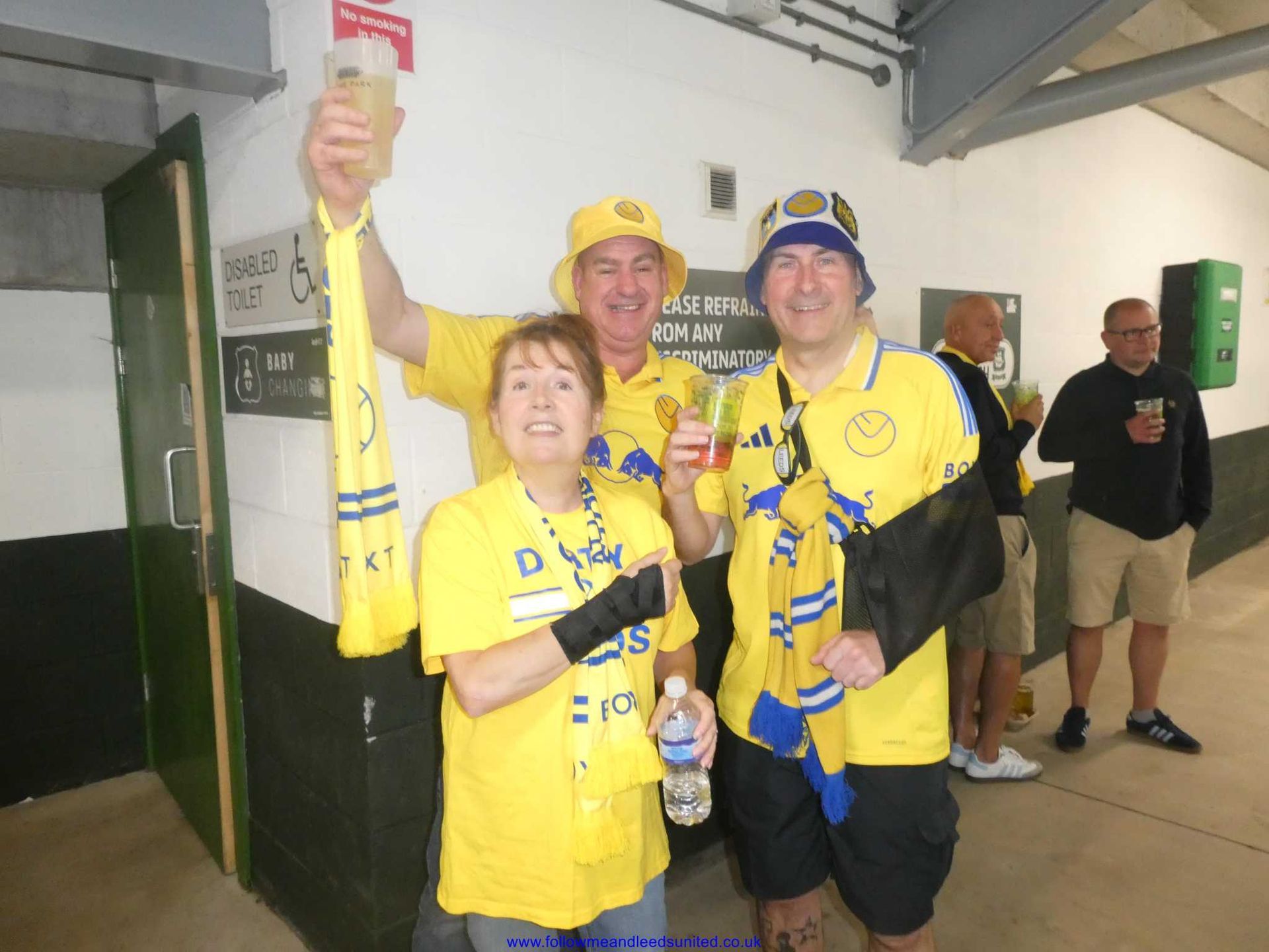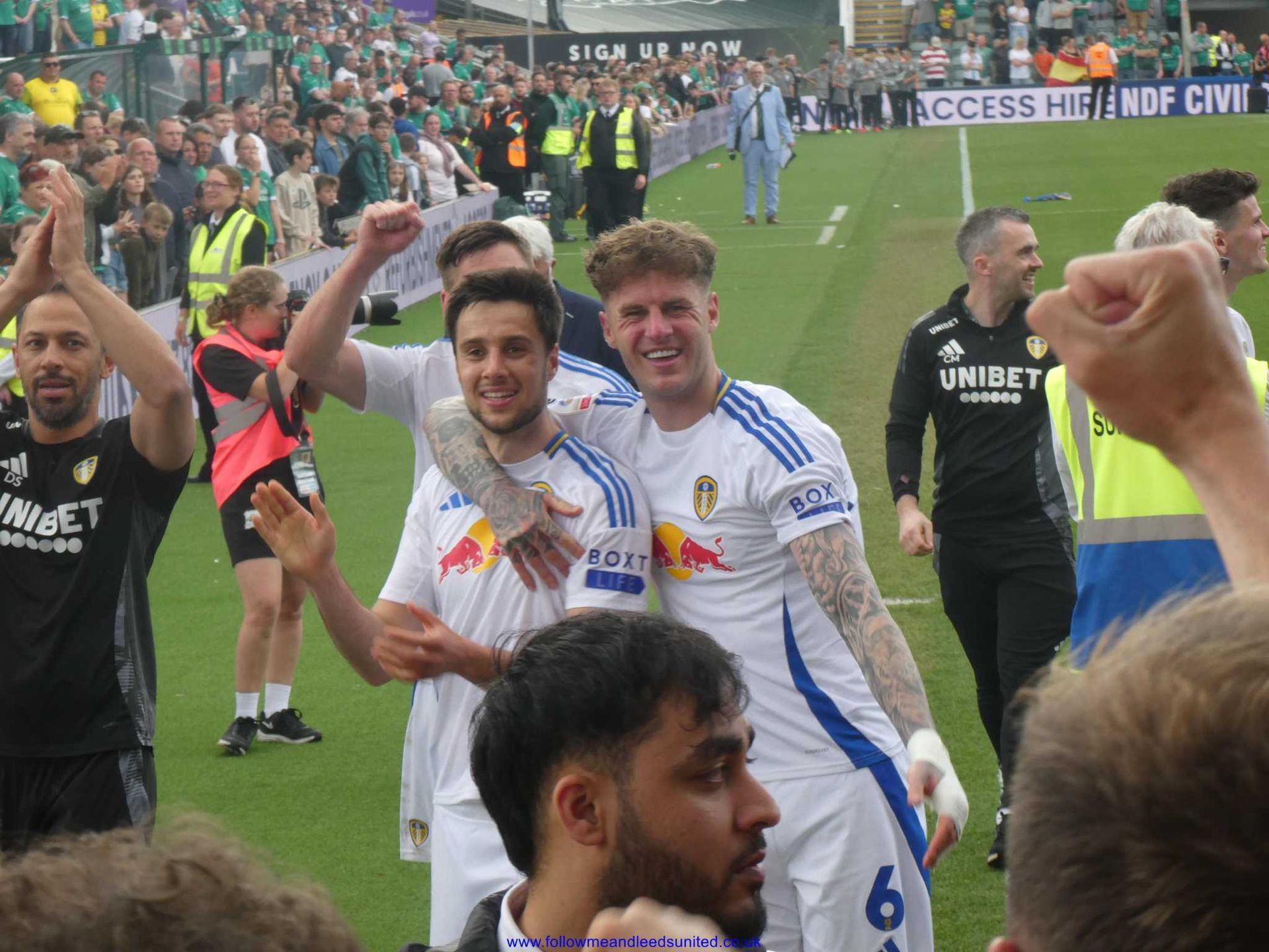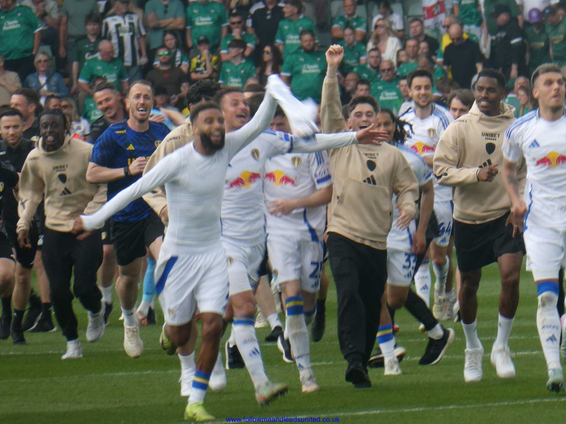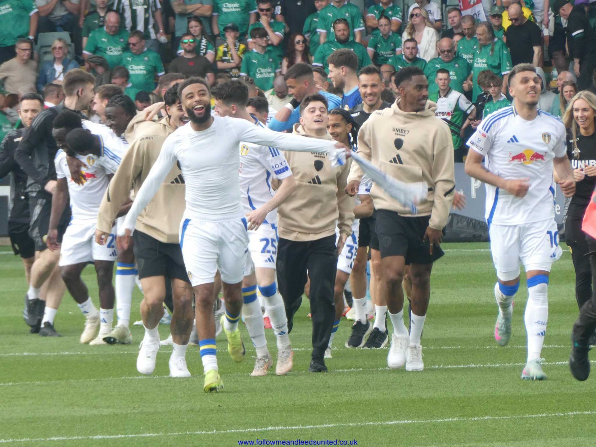 As the seconds ticked down, Plymouth had a couple of attacks giving us some anxious moments before the final whistle blew and everyone including the team went nuts. The songs rang out from the Leeds fans celebrating our promotion to the Premier League as Champions with an impressive 100 points. It turned out that Burnley had 100 points too, but our goal difference was far superior thank goodness. Tremendous, joyous scenes both on and off the pitch as the team went off before coming out again to be presented with the trophy. It turns out there was quite a gathering of Leeds fans in the stand to our left too. Happy, smiling and ecstatic Leeds fans although we couldn’t quite believe we had done it. Being able to celebrate the promotion with the team was brilliant because when we last won the league under Bielsa, we weren’t allowed to join in the celebrations due to covid. I’m not sure how long we all stayed in the ground celebrating but what a great feeling it was.