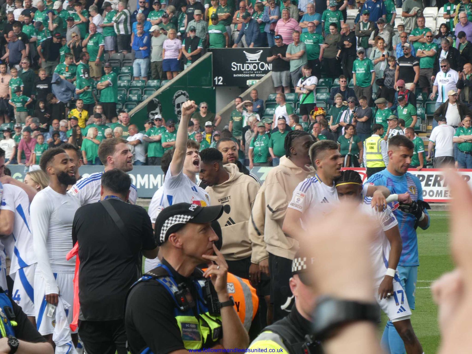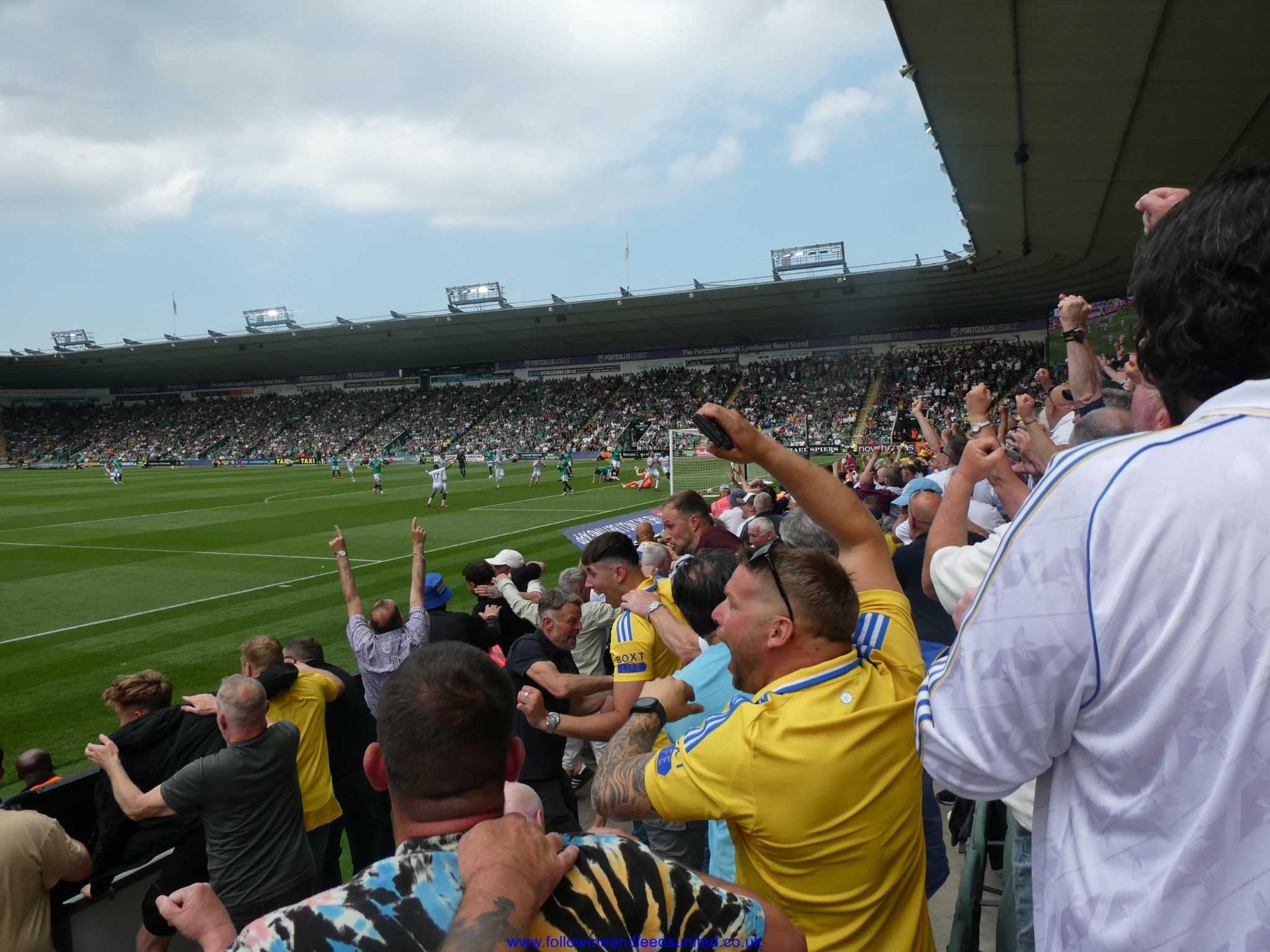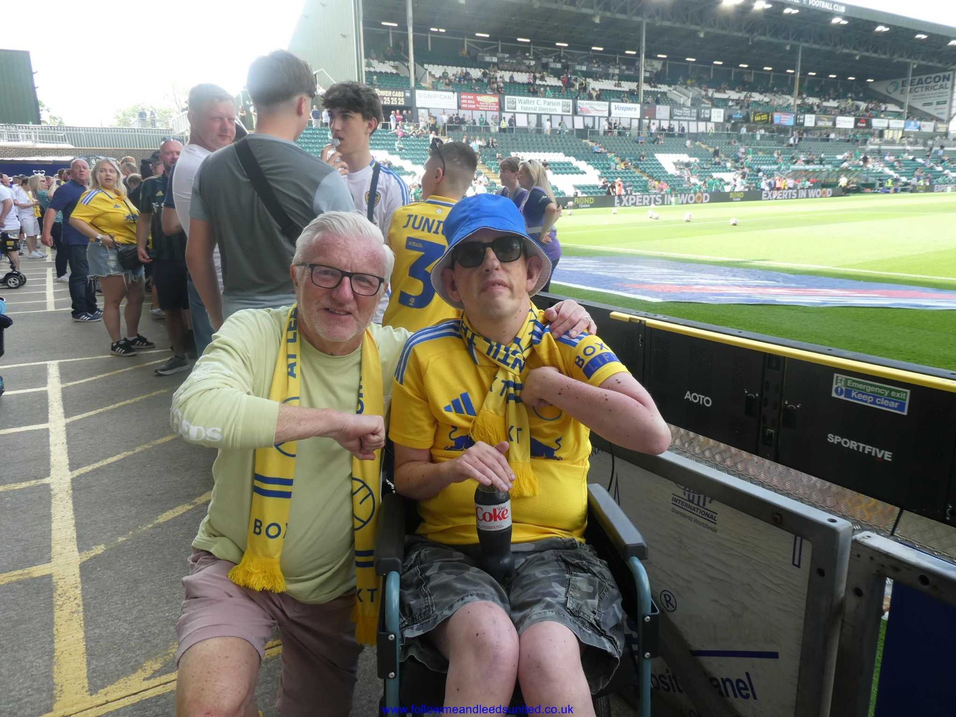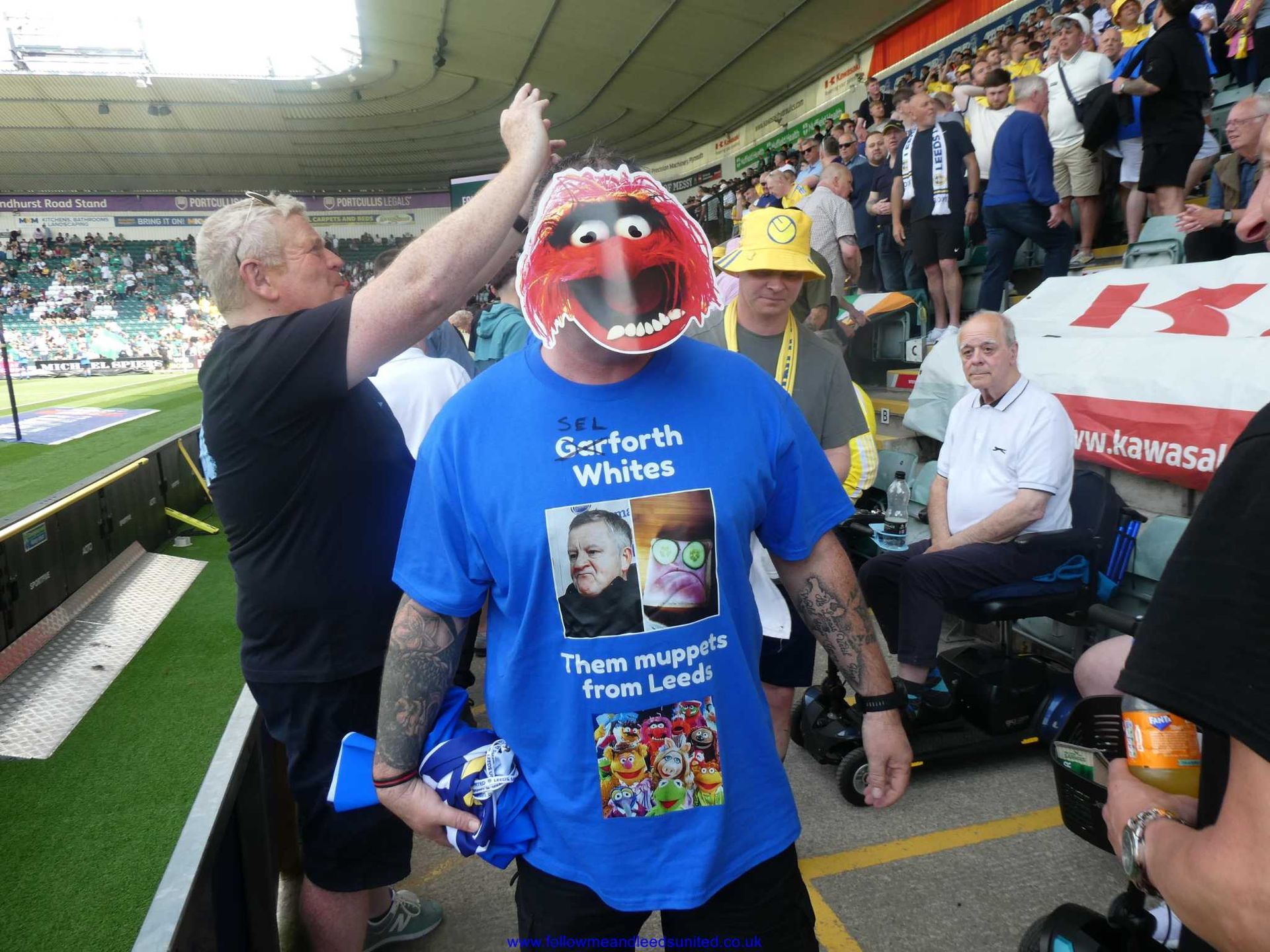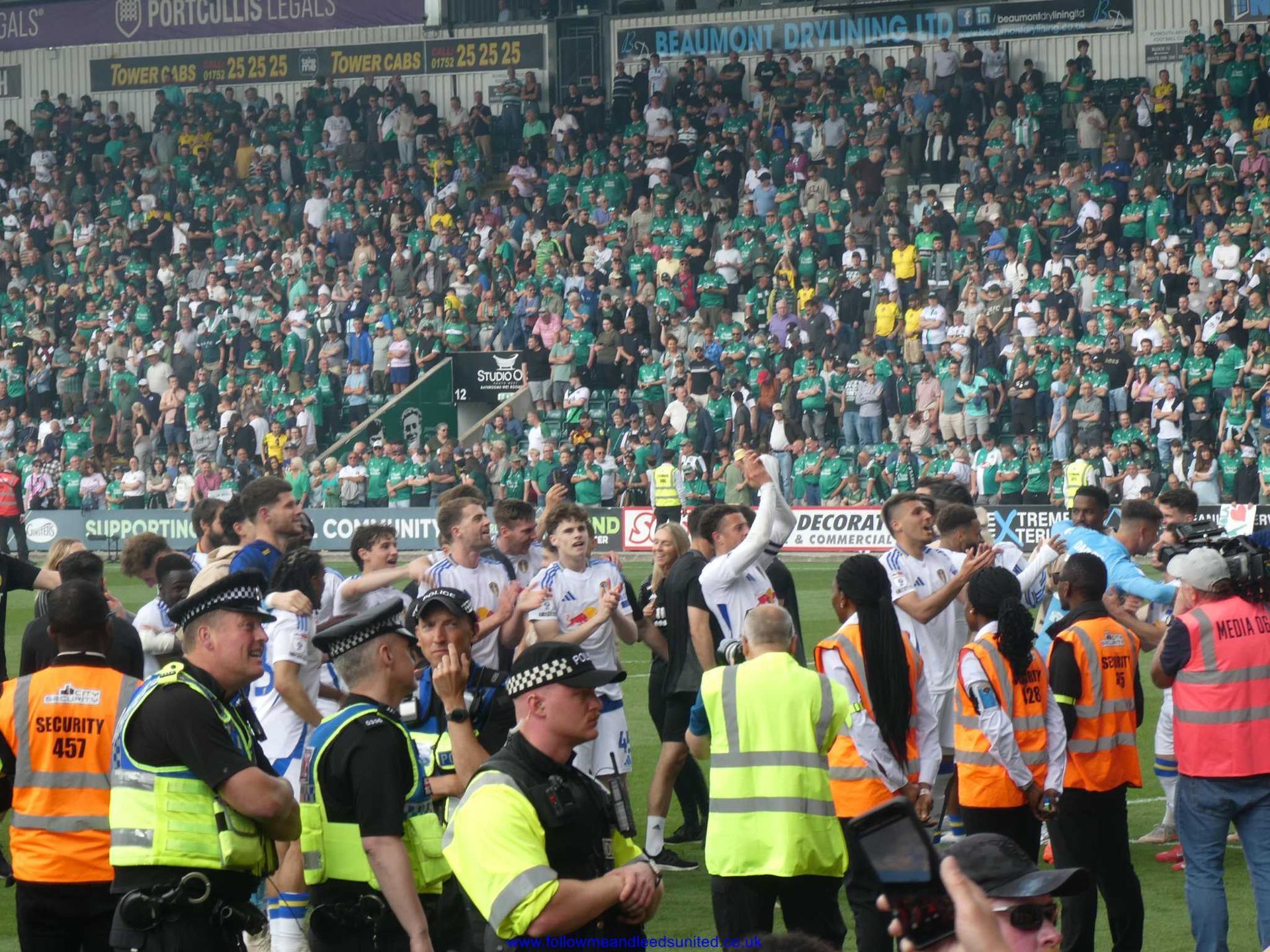 I thought we’d have made some changes at half time but once again, Farke stuck with the same players, and I hoped he’d prove me wrong. Well, it didn’t take long before Solomon sent in a great pass from the byline into the middle of the box and Gnonto ran in to hit a close range shot into the net to equalise. I’m sure Bogle got a touch to the ball before reaching Gnonto. Plymouth had been time wasting and we thought we’d taken the lead when Gnonto picked up the ball to the left of us and hit a shot into the net from a narrow angle, only for it to be disallowed for offside. Replays showed once again that this goal was onside and could have been the difference between going up as champions as Burnley were now winning. That was very frustrating though. As it was, we set up that beautiful finale to send us all delirious with joy. We’d no idea how much injury time there was and then the lad next to me said six minutes were added. Suddenly a Plymouth fan in the left stand started taking the mick out of our celebrations and indicating he wanted to fight the lad next to me. All I was bothered about was the little girl to the left of him who was crying. Plymouth were already relegated which to be honest I thought was a shame as they had amassed 44 points.