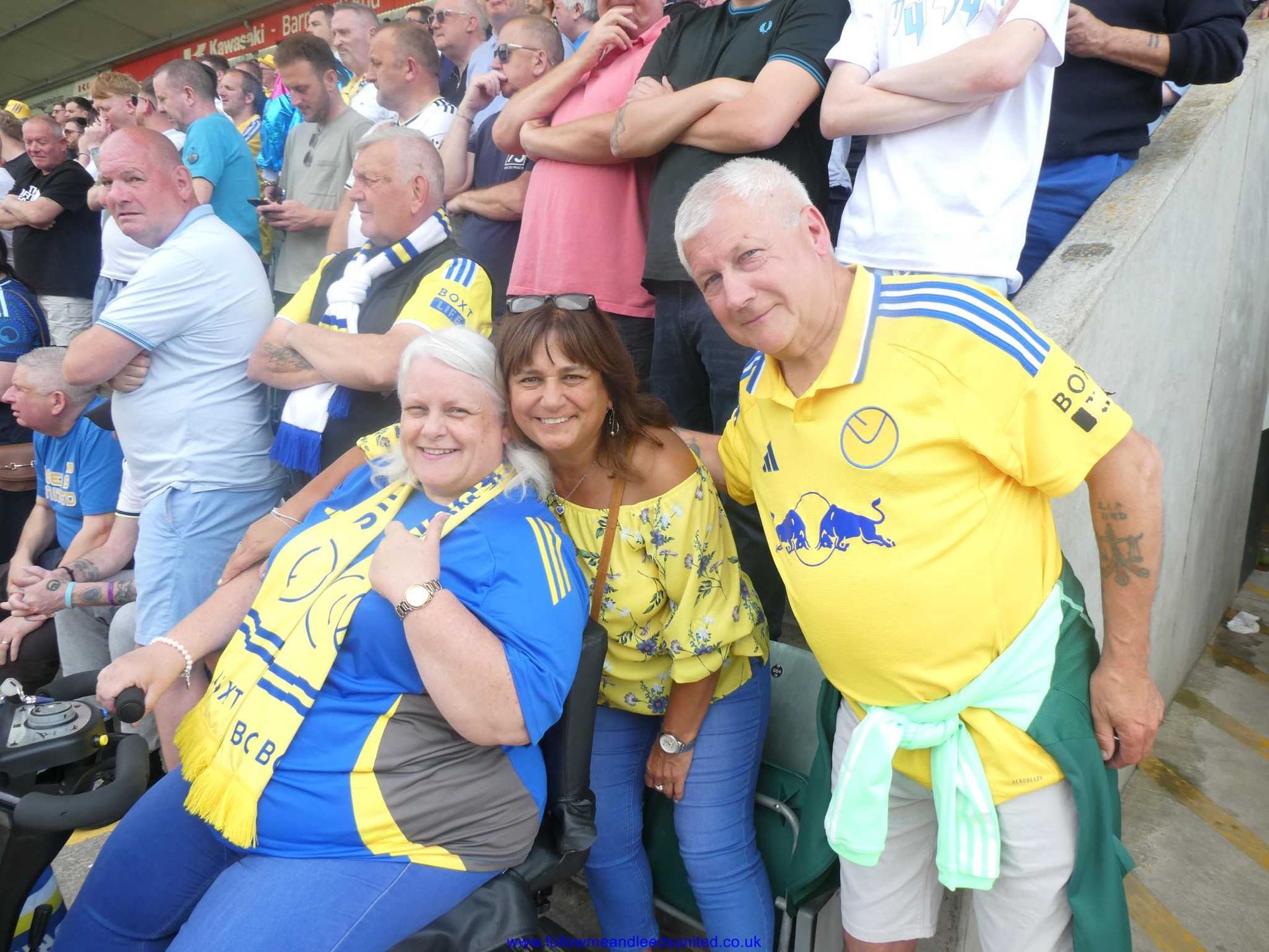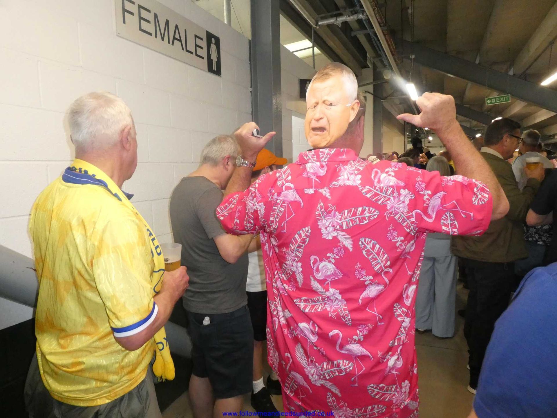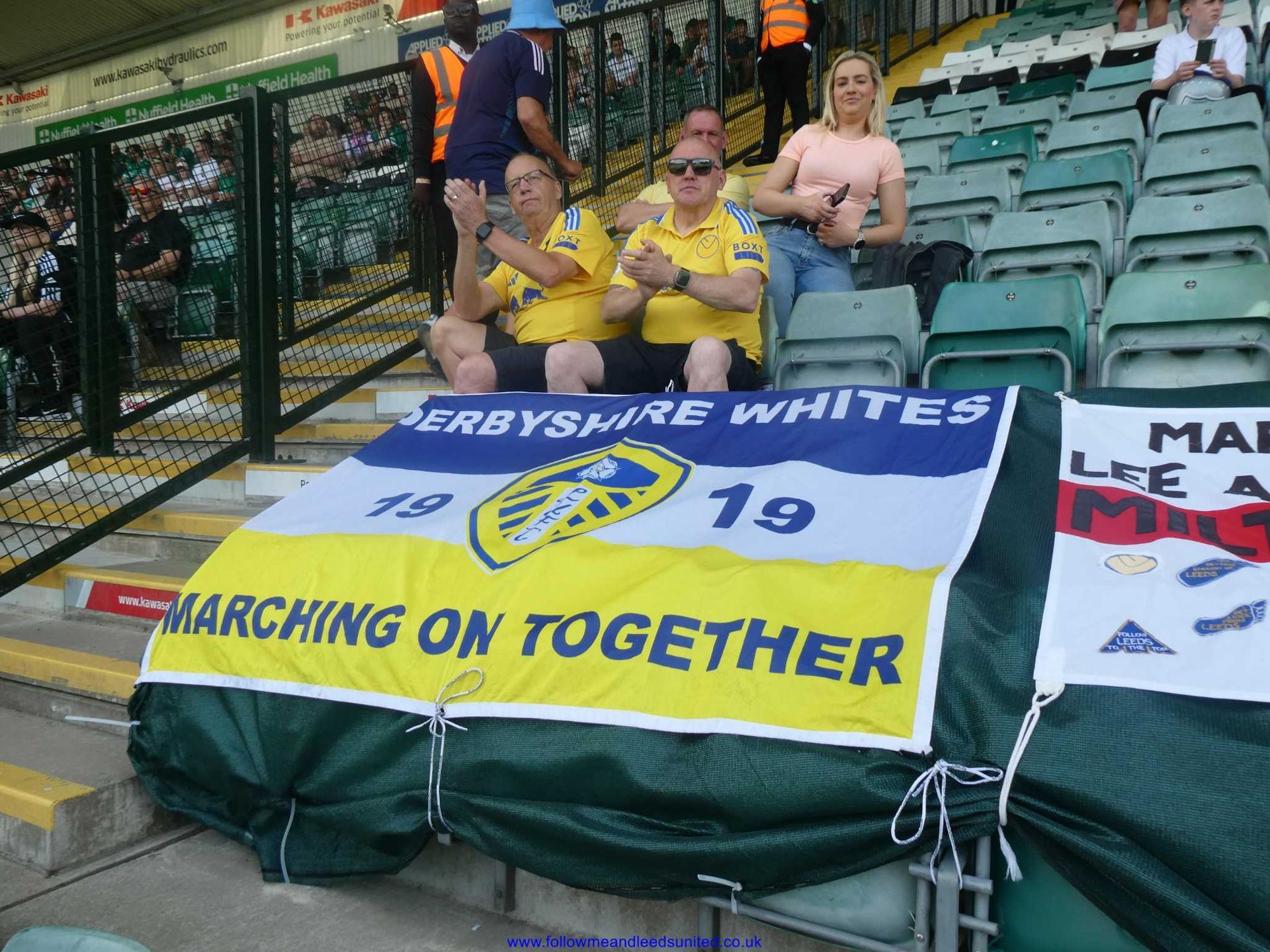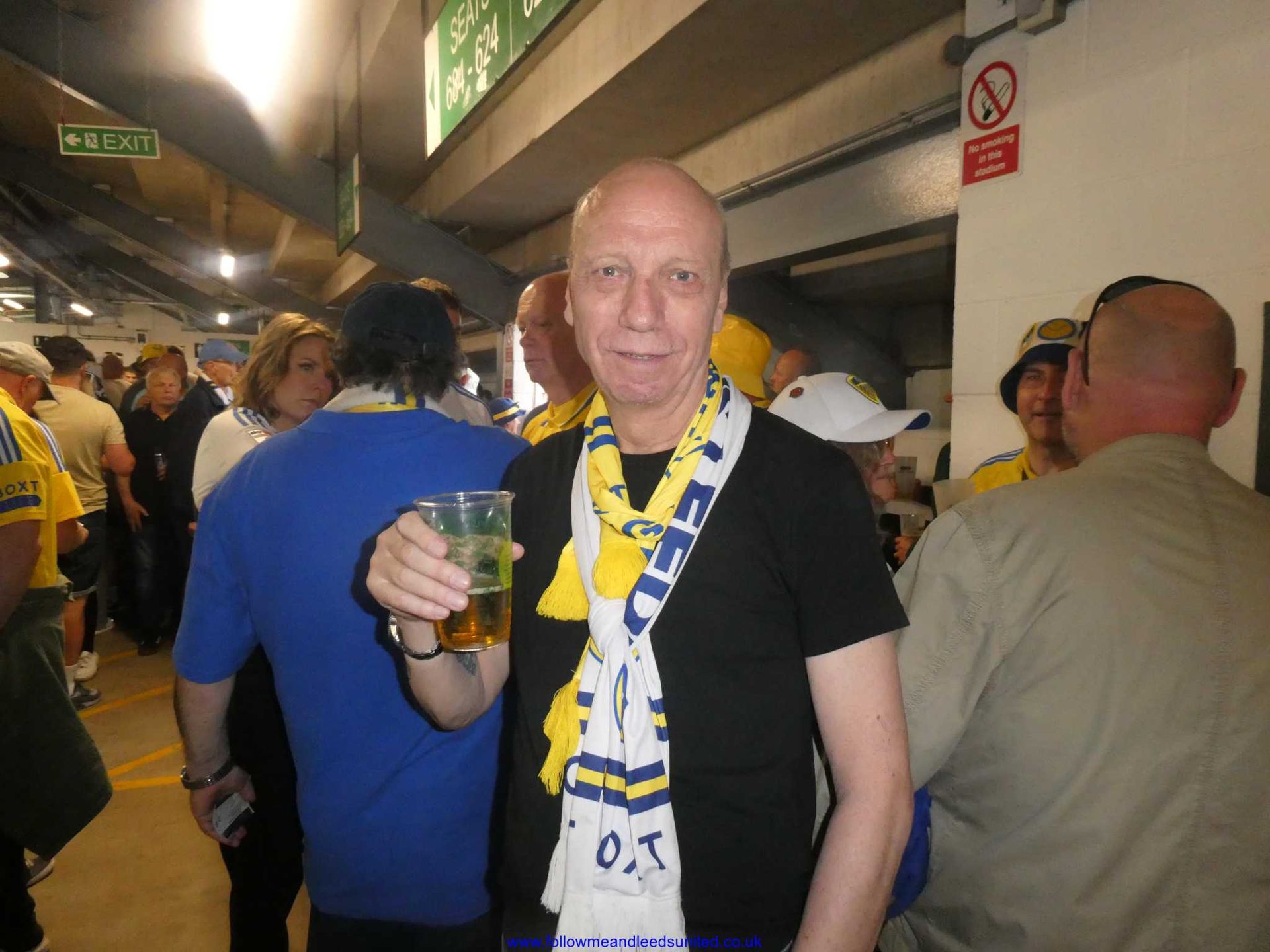 Well, what can I say but in typical Leeds fashion, they certainly put us through the ringer before winning the game dramatically in the last few minutes of the game. Carnage from then on as the Leeds fans celebrated wildly and as I’d moved over to the side to get my flag; I was in just the wrong place when we scored. I’d moved further down near the front and thought if we score now, it will be bedlam, cue Solomon jinking his way past players hitting a low shot that hit the back of the net. Immediately someone I knew came literally flying over the seats onto the steps behind me when he was pushed and I’m sure I ended up sitting on him as I tried to stop myself falling down the terraces. I think he’ll know about it in the morning and luckily for me I hung onto the handrail but then thought it safer to stay there. The flags had all been put on the cordoned off seats at the front of the stand then just on kick off, the stewards took them all down, so I went to get mine as it had been near the corner flag. I hung it on the side wall but would have been better bringing it back to my seat, as that would have been the better place to be for the team presentation.