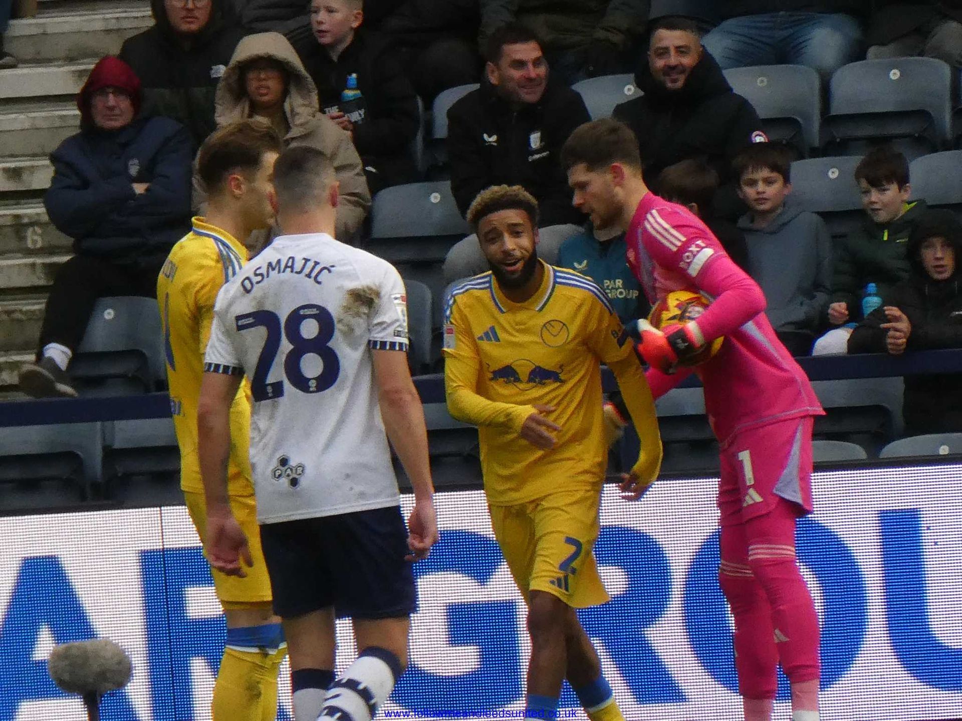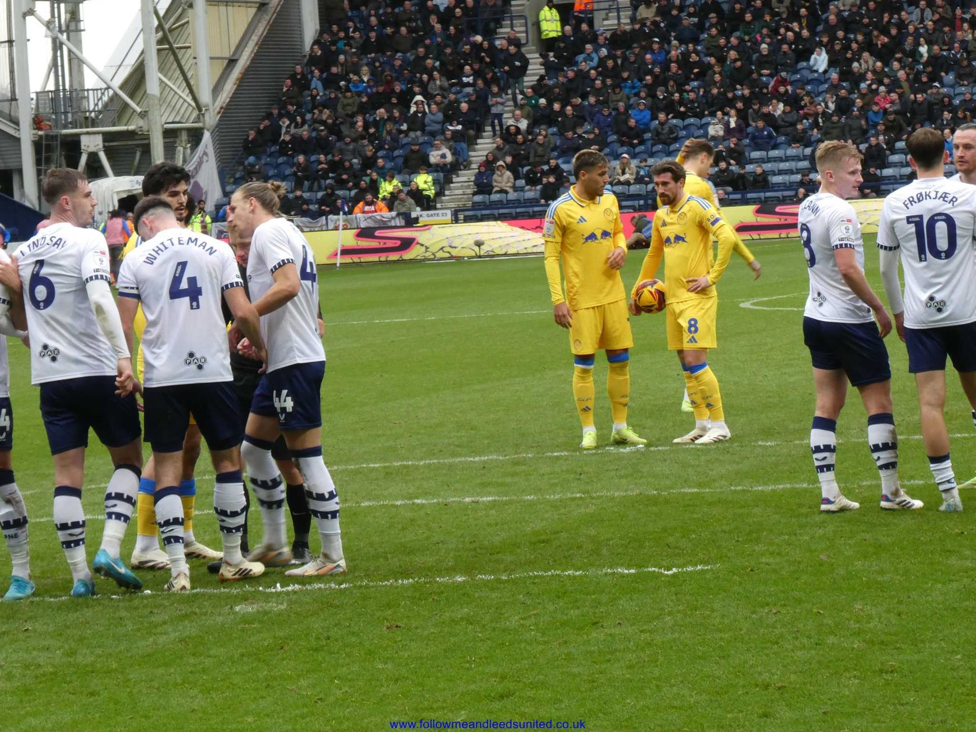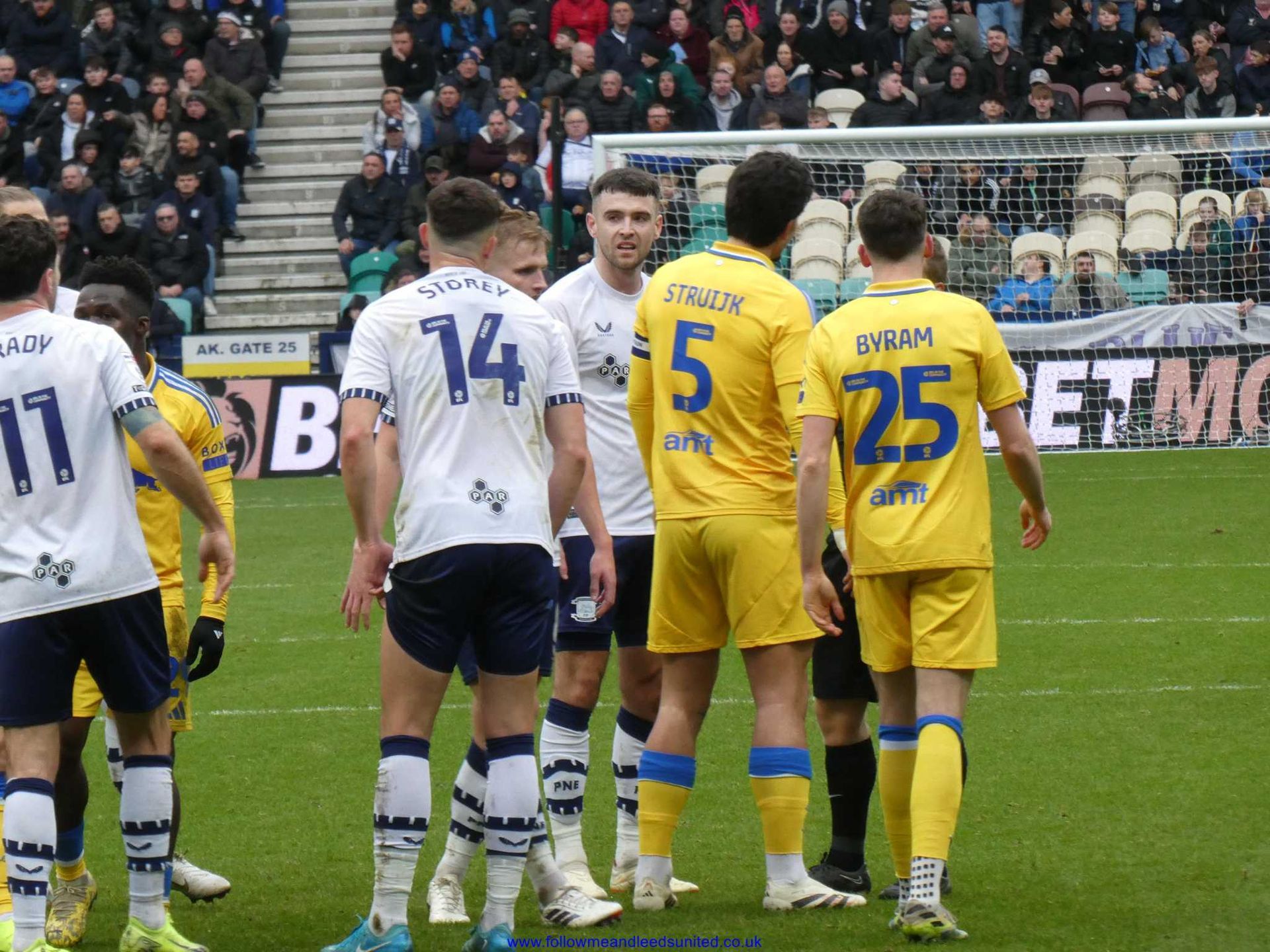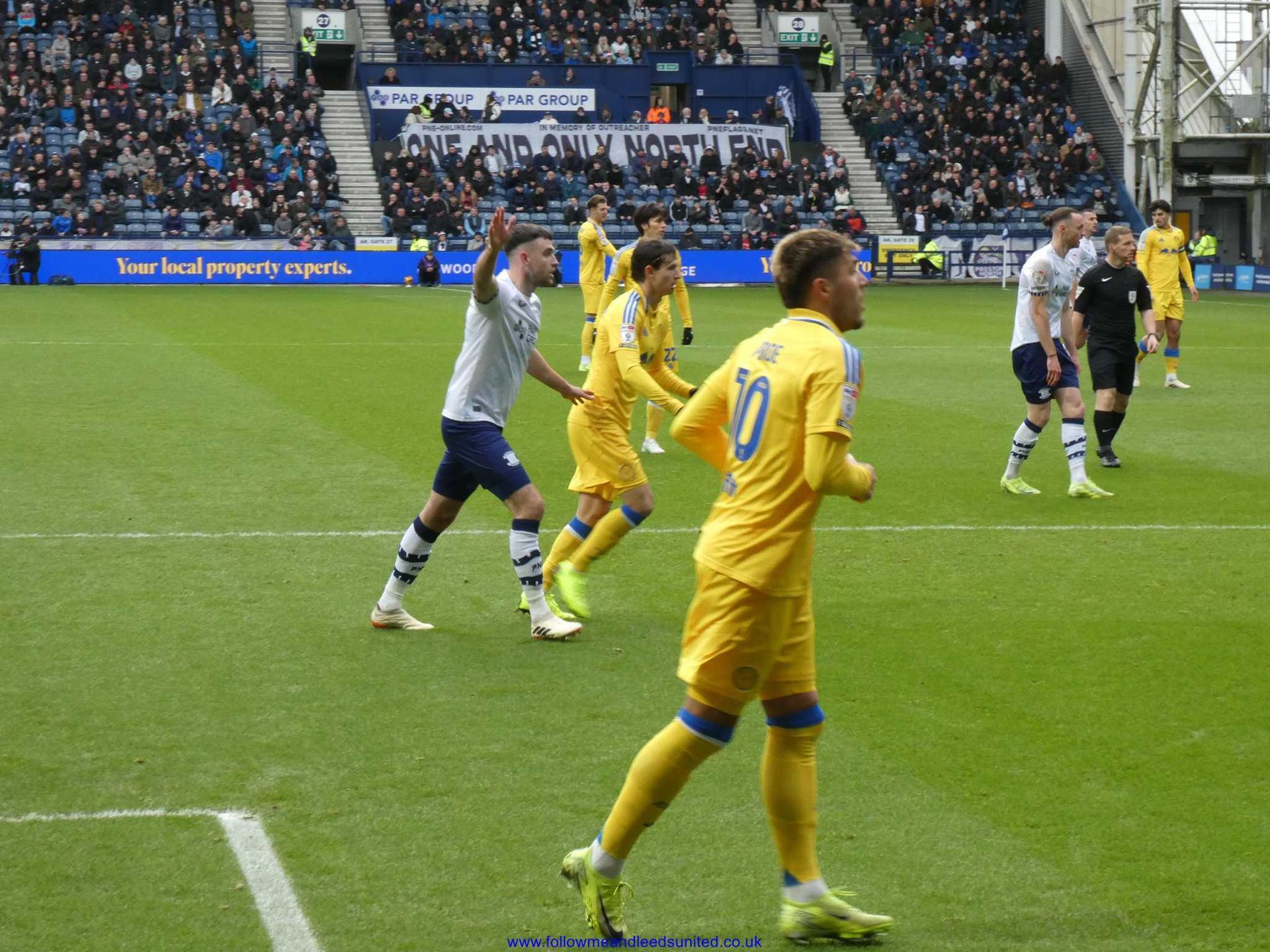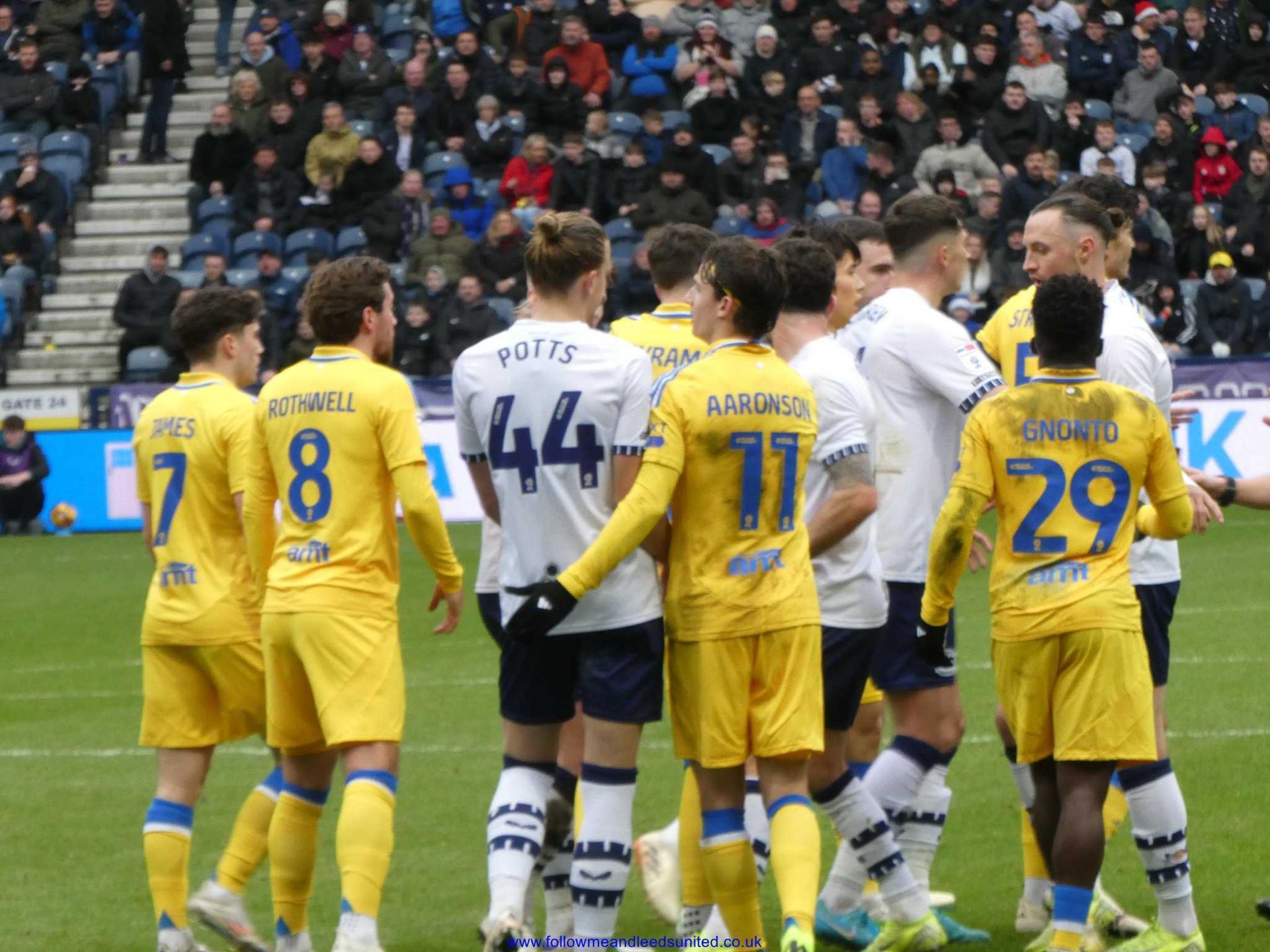 The first twenty minutes of the game were very scrappy and underwhelming because although we had a lot of possession, we didn’t really do much with it. After another attack towards over 5,000 Leeds fans broke down, we were made to pay the price for our defence being so far forward as Preston raced to the other end to take the lead. It wasn’t a surprise though as we could see it coming as they’d already had a counterattack. The game started being littered with plenty of fouls, but the bad ones were committed by Preston, and they were lucky that their man stayed on the field after a foul on Bogle. Even if it wasn’t a straight red, he had already been booked so should have been sent off. Sadly, it was Farke who ended up with a yellow card. Preston obviously knew he should have been sent off and that he was lucky to stay on the pitch as he was subbed at half time. The referee lost it in my opinion with some of the decisions he made before half time too. Games at Preston in recent years have always been quite feisty from them for some reason. Leeds did get in a good position to score only to see Aaronson’s shot go way over the goal.