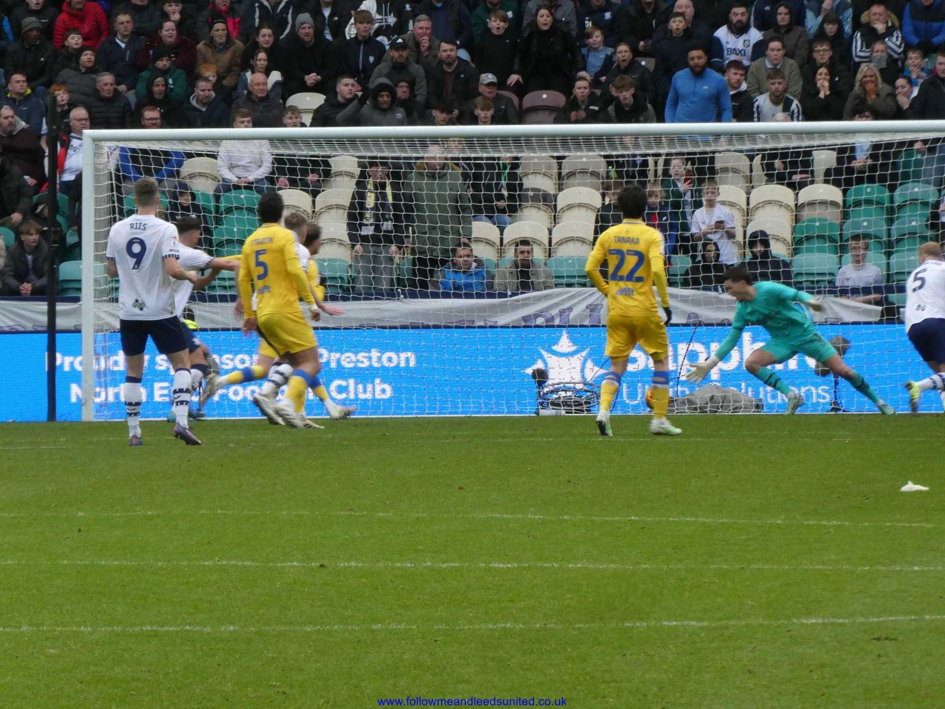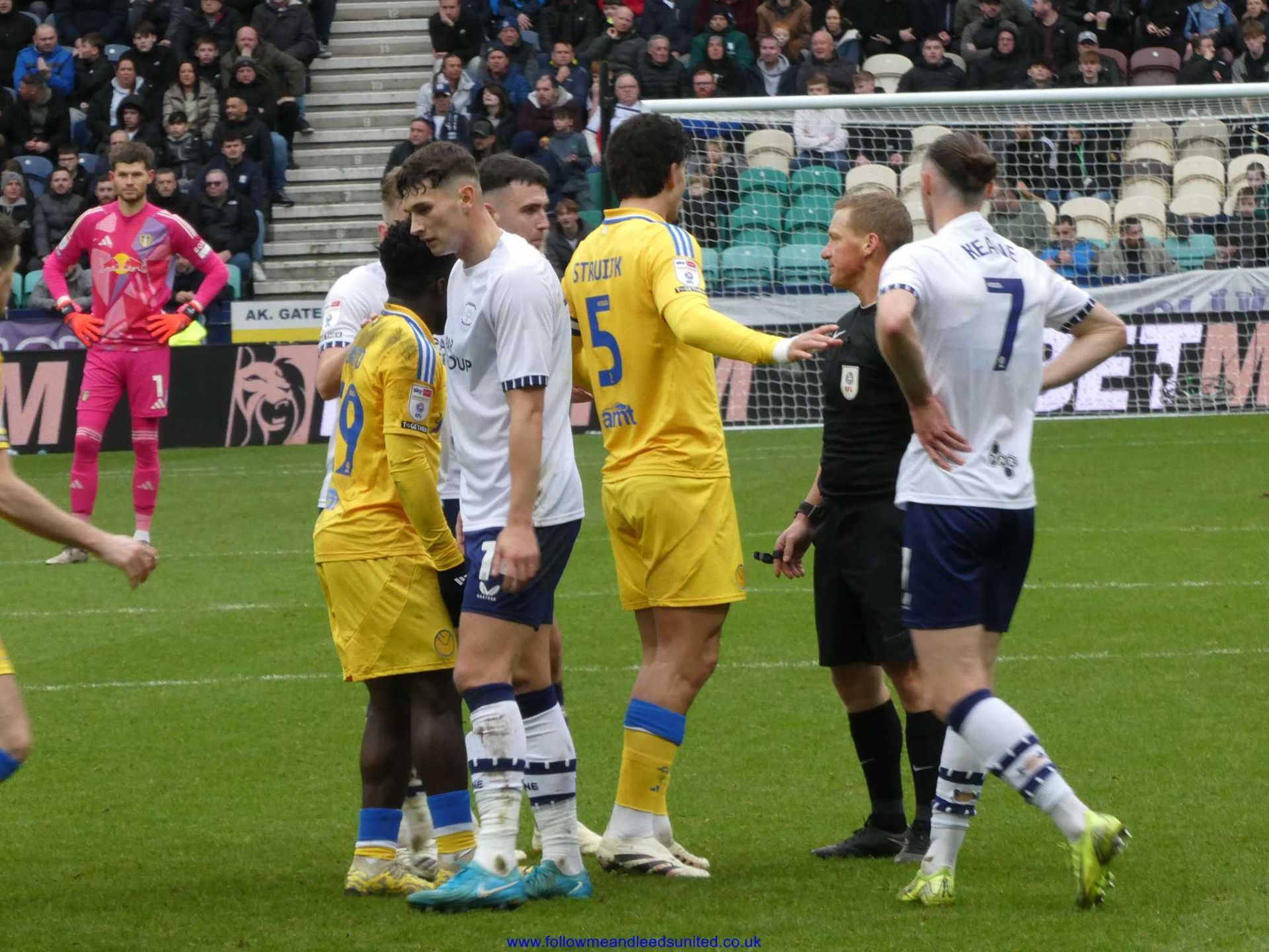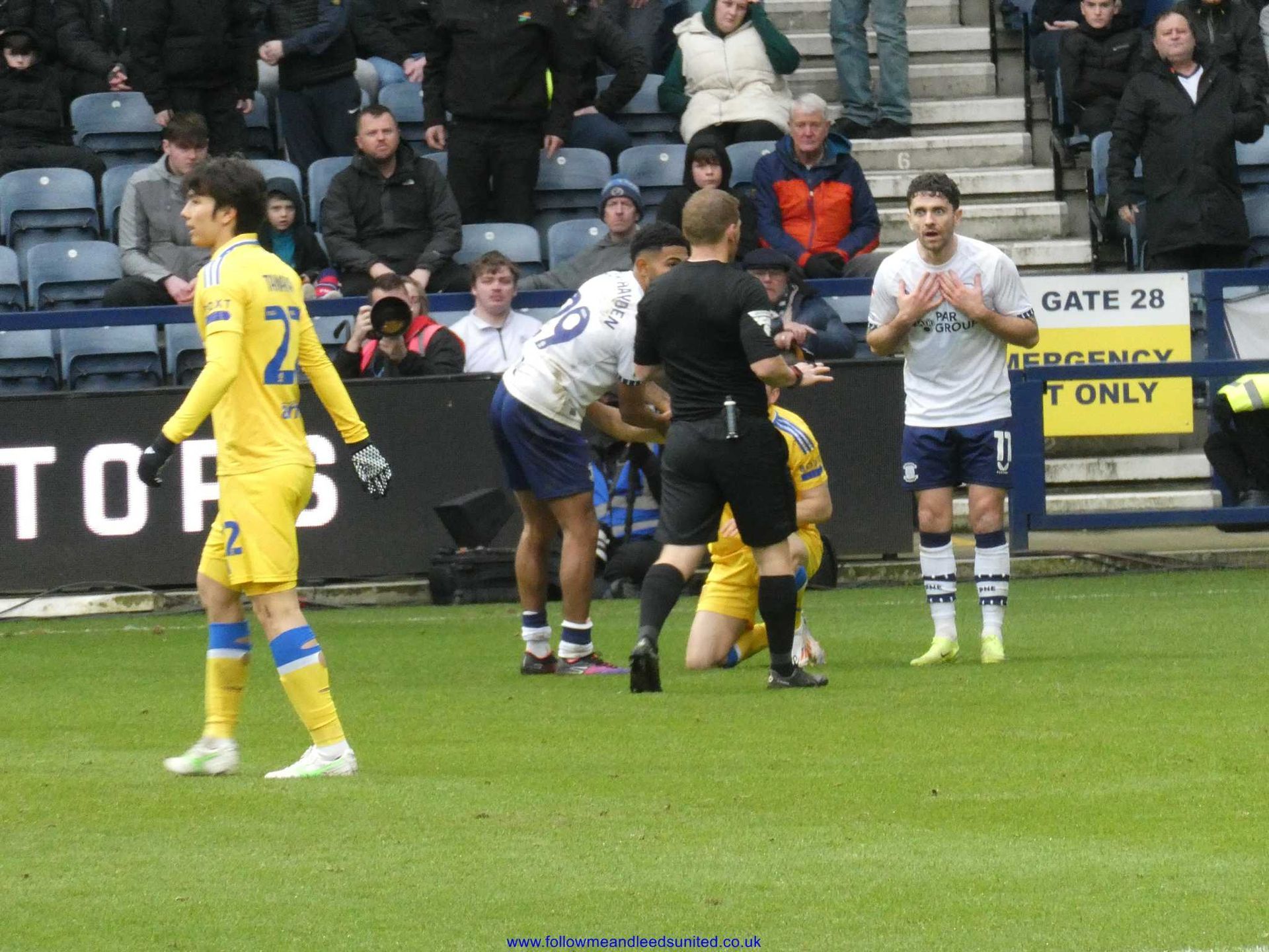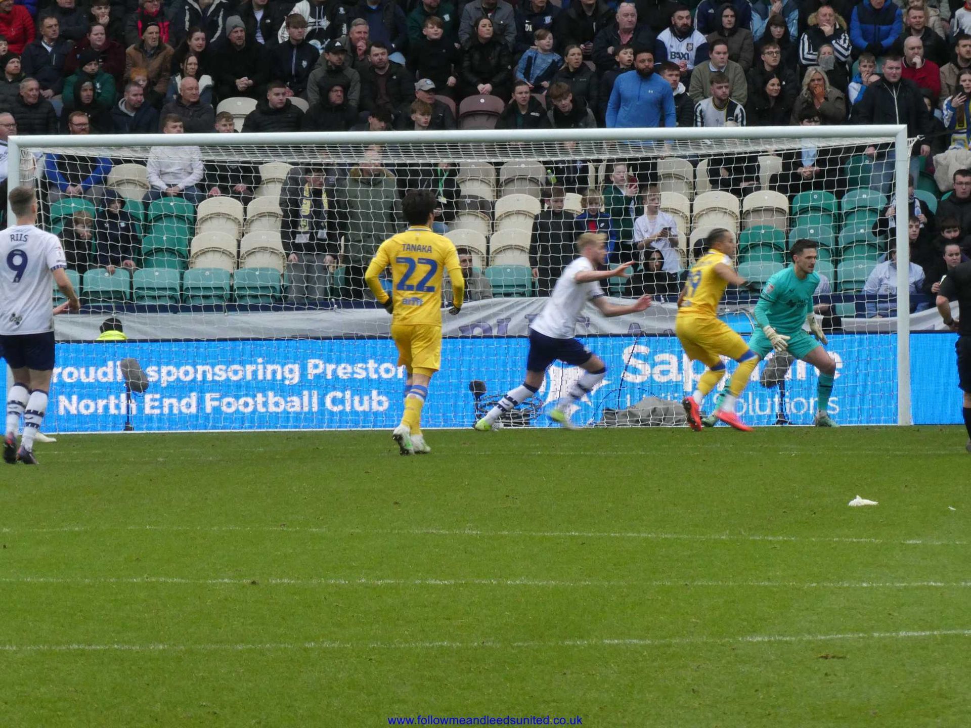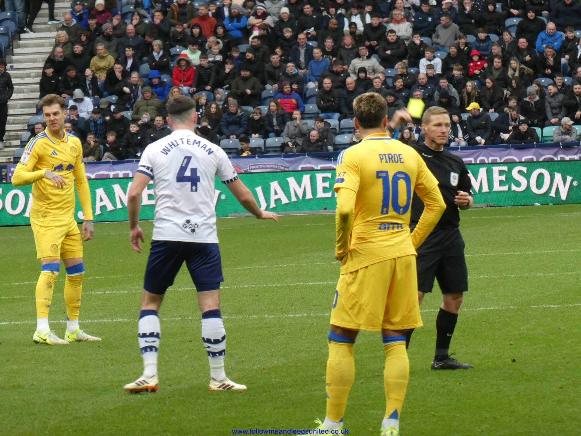 The first twenty minutes of the game were very scrappy and underwhelming because although we had a lot of possession, we didn’t really do much with it. After another attack towards over 5,000 Leeds fans broke down, we were made to pay the price for our defence being so far forward as Preston raced to the other end to take the lead. It wasn’t a surprise though as we could see it coming as they’d already had a counterattack. The game started being littered with plenty of fouls, but the bad ones were committed by Preston, and they were lucky that their man stayed on the field after a foul on Bogle. Even if it wasn’t a straight red, he had already been booked so should have been sent off. Sadly, it was Farke who ended up with a yellow card. Preston obviously knew he should have been sent off and that he was lucky to stay on the pitch as he was subbed at half time. The referee lost it in my opinion with some of the decisions he made before half time too. Games at Preston in recent years have always been quite feisty from them for some reason. Leeds did get in a good position to score only to see Aaronson’s shot go way over the goal.
