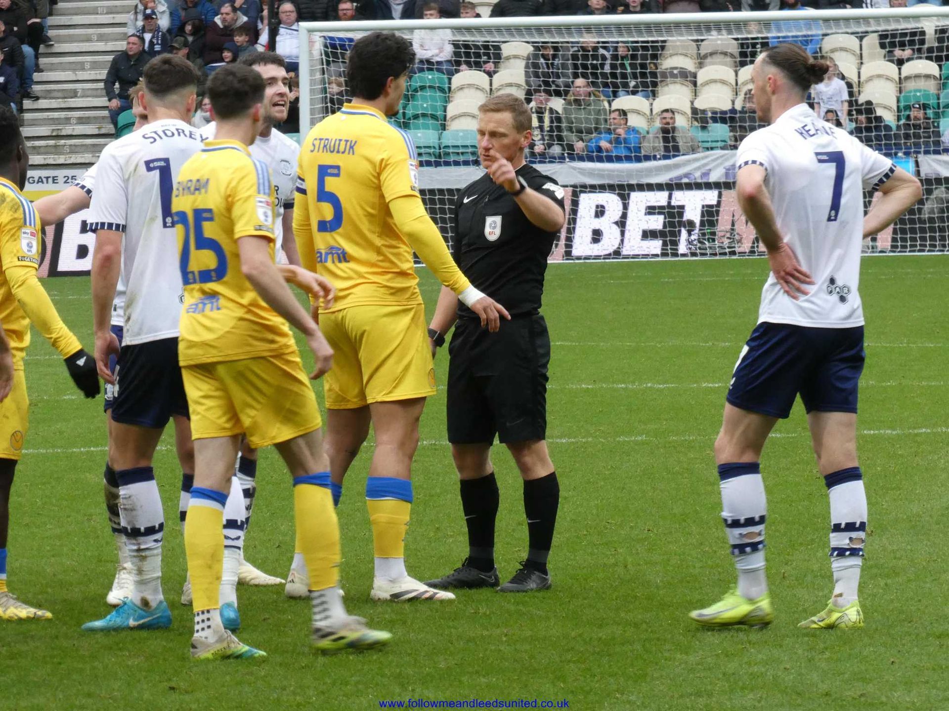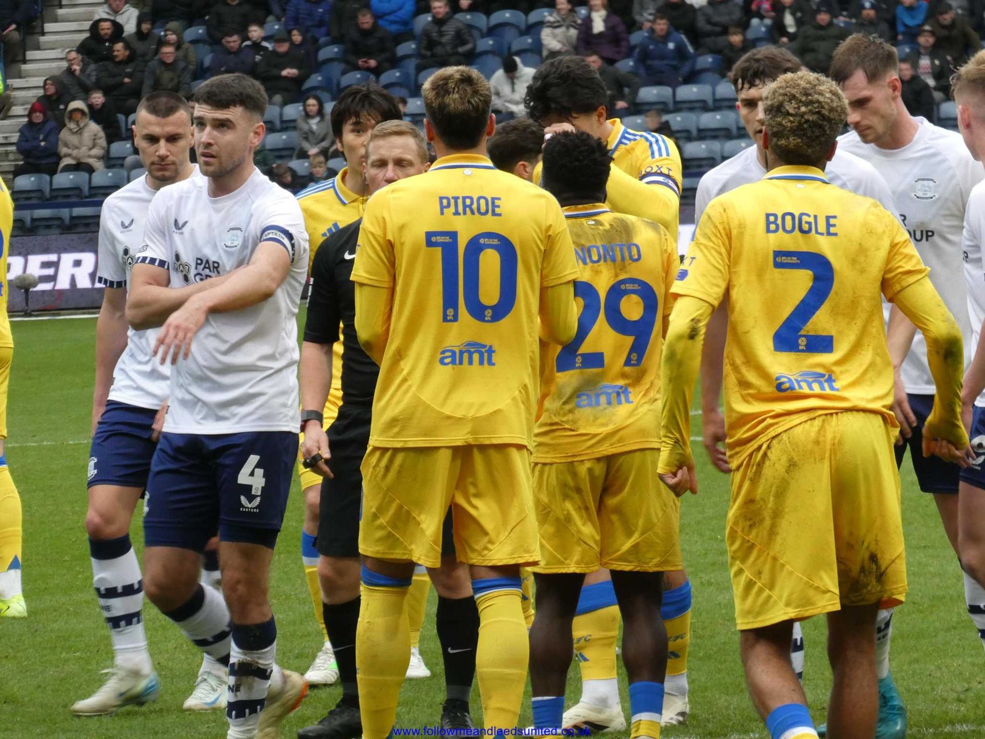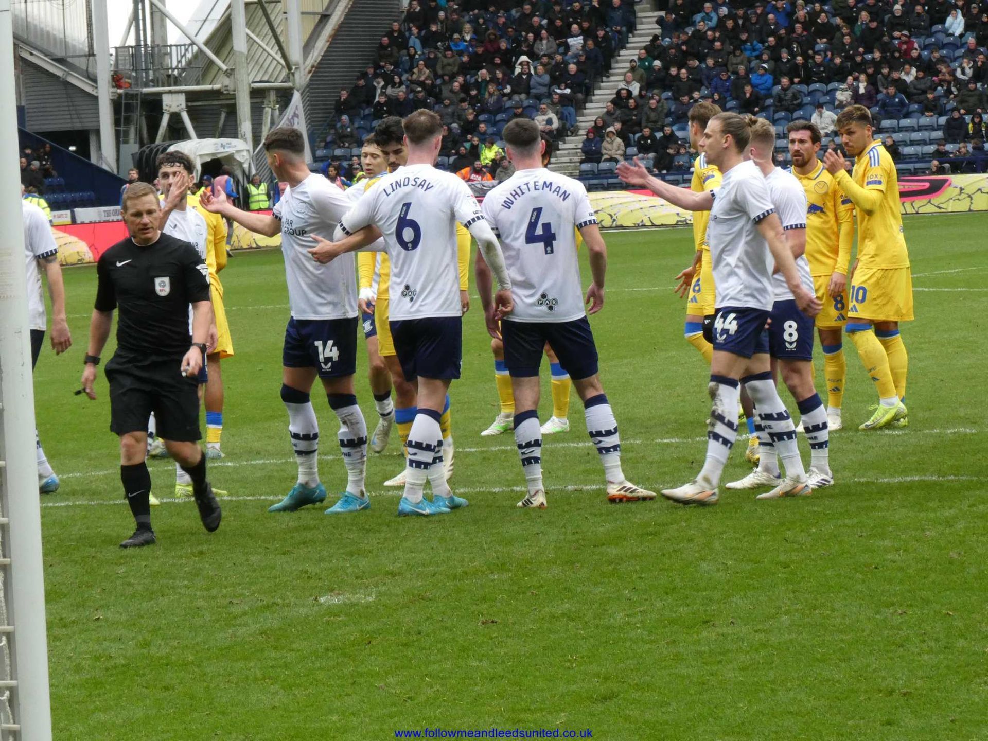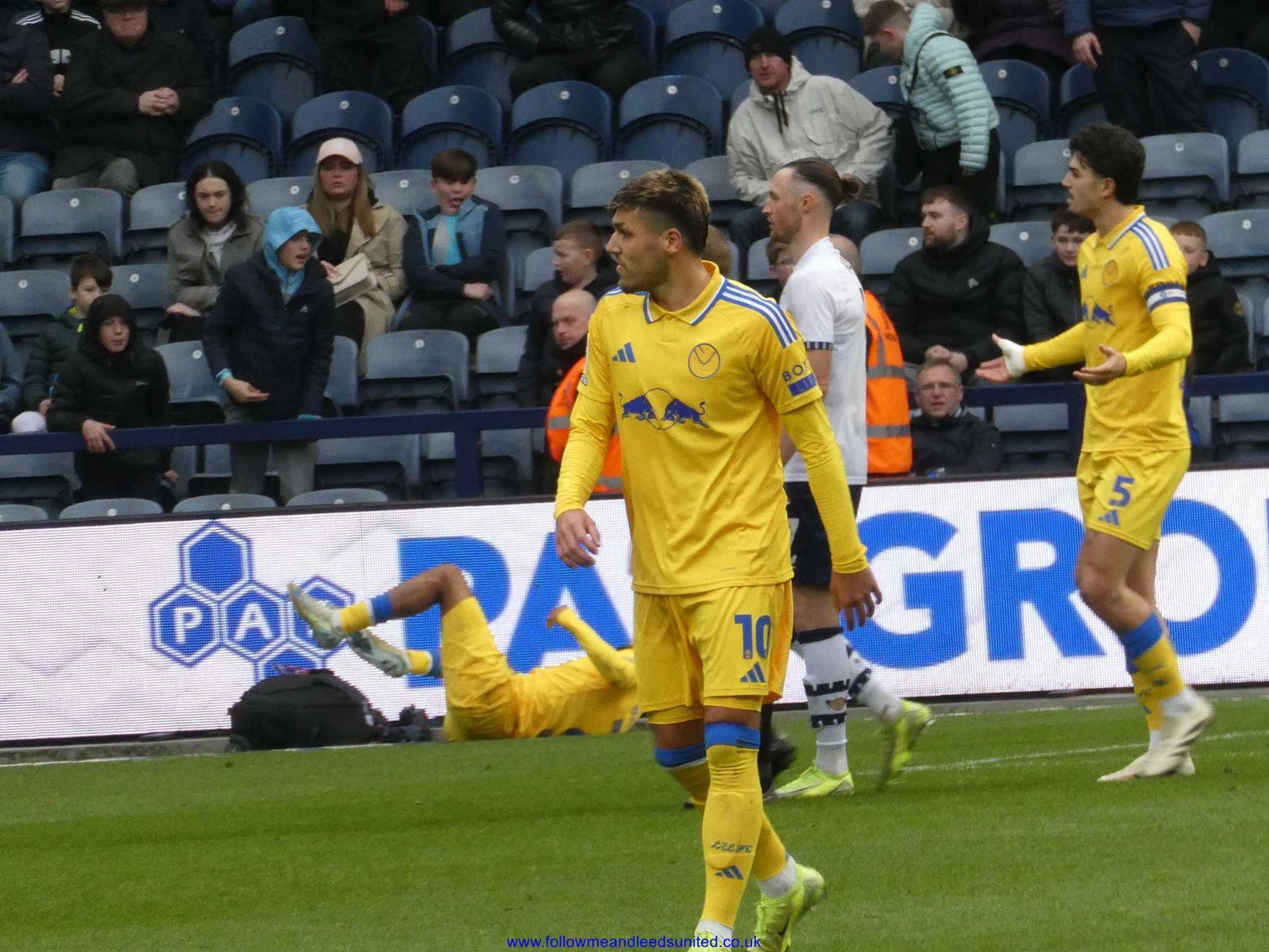 The first twenty minutes of the game were very scrappy and underwhelming because although we had a lot of possession, we didn’t really do much with it. After another attack towards over 5,000 Leeds fans broke down, we were made to pay the price for our defence being so far forward as Preston raced to the other end to take the lead. It wasn’t a surprise though as we could see it coming as they’d already had a counterattack. The game started being littered with plenty of fouls, but the bad ones were committed by Preston, and they were lucky that their man stayed on the field after a foul on Bogle. Even if it wasn’t a straight red, he had already been booked so should have been sent off. Sadly, it was Farke who ended up with a yellow card. Preston obviously knew he should have been sent off and that he was lucky to stay on the pitch as he was subbed at half time. The referee lost it in my opinion with some of the decisions he made before half time too. Games at Preston in recent years have always been quite feisty from them for some reason. Leeds did get in a good position to score only to see Aaronson’s shot go way over the goal.