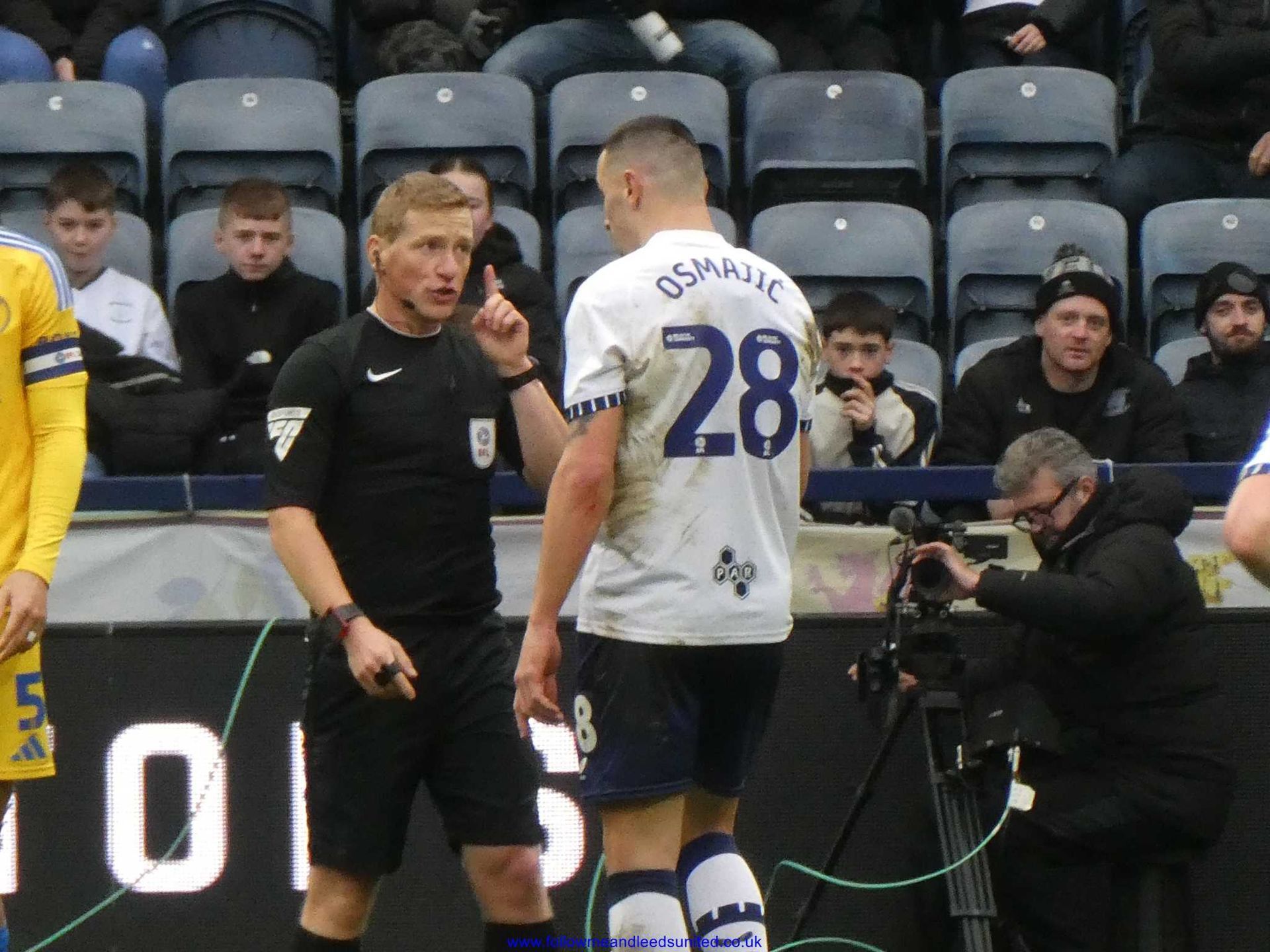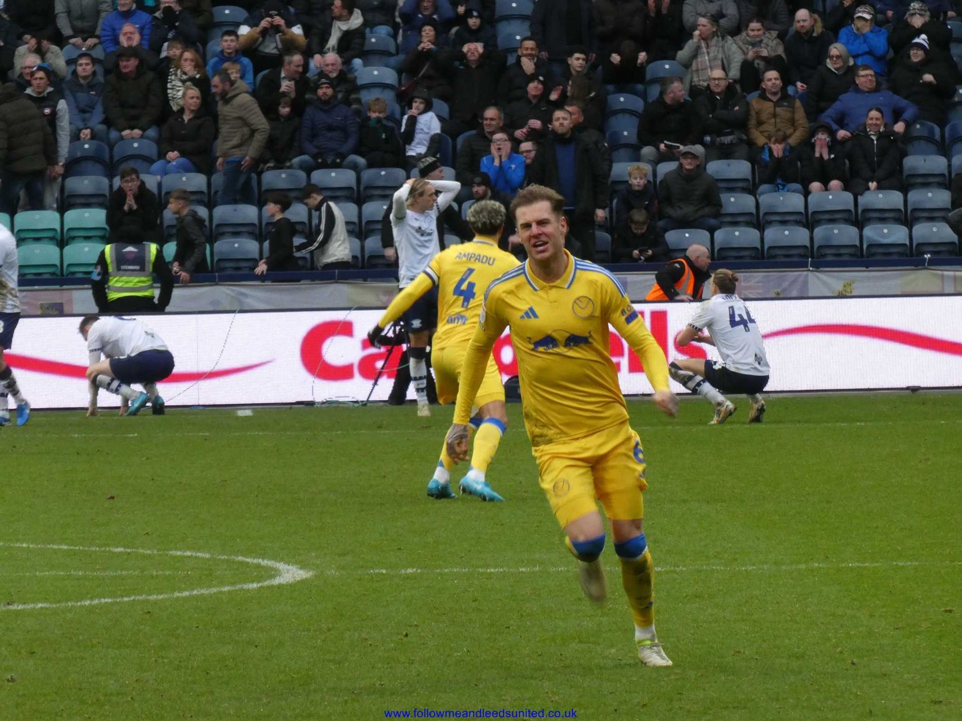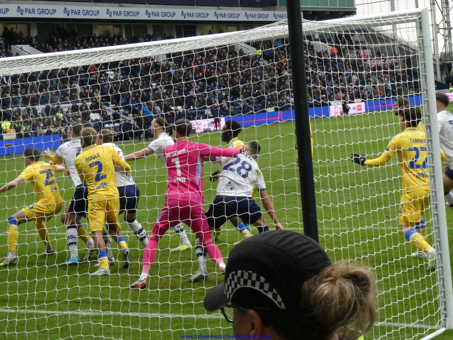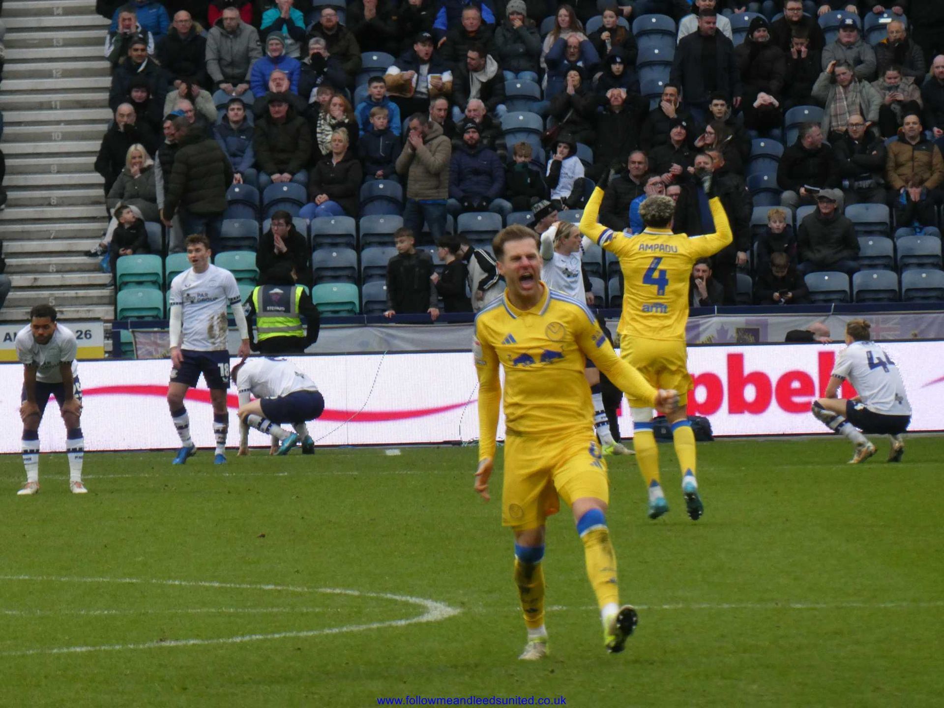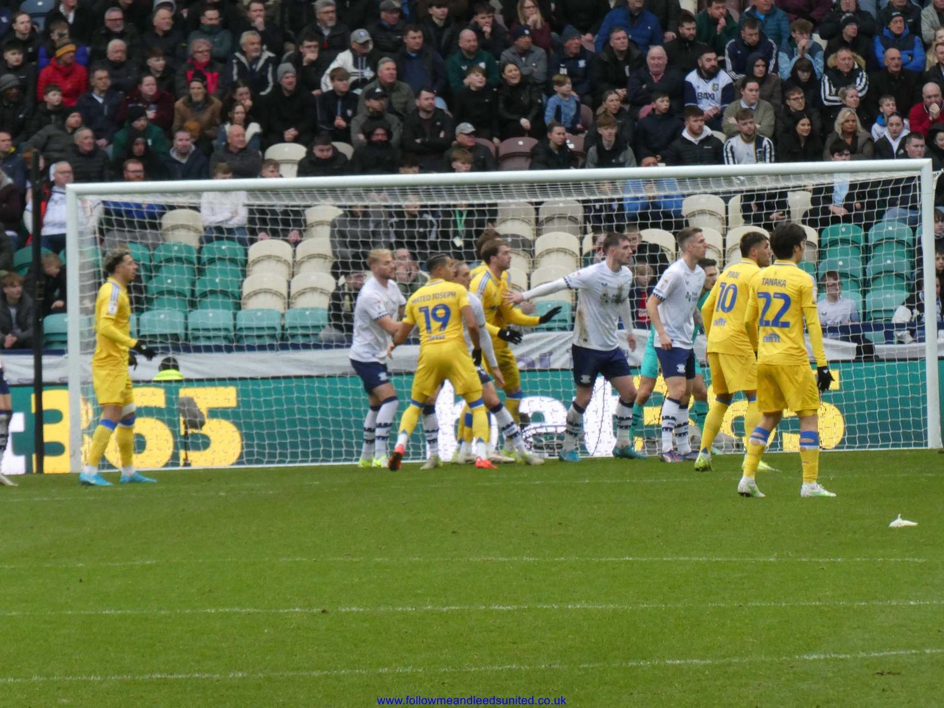 The first twenty minutes of the game were very scrappy and underwhelming because although we had a lot of possession, we didn’t really do much with it. After another attack towards over 5,000 Leeds fans broke down, we were made to pay the price for our defence being so far forward as Preston raced to the other end to take the lead. It wasn’t a surprise though as we could see it coming as they’d already had a counterattack. The game started being littered with plenty of fouls, but the bad ones were committed by Preston, and they were lucky that their man stayed on the field after a foul on Bogle. Even if it wasn’t a straight red, he had already been booked so should have been sent off. Sadly, it was Farke who ended up with a yellow card. Preston obviously knew he should have been sent off and that he was lucky to stay on the pitch as he was subbed at half time. The referee lost it in my opinion with some of the decisions he made before half time too. Games at Preston in recent years have always been quite feisty from them for some reason. Leeds did get in a good position to score only to see Aaronson’s shot go way over the goal.