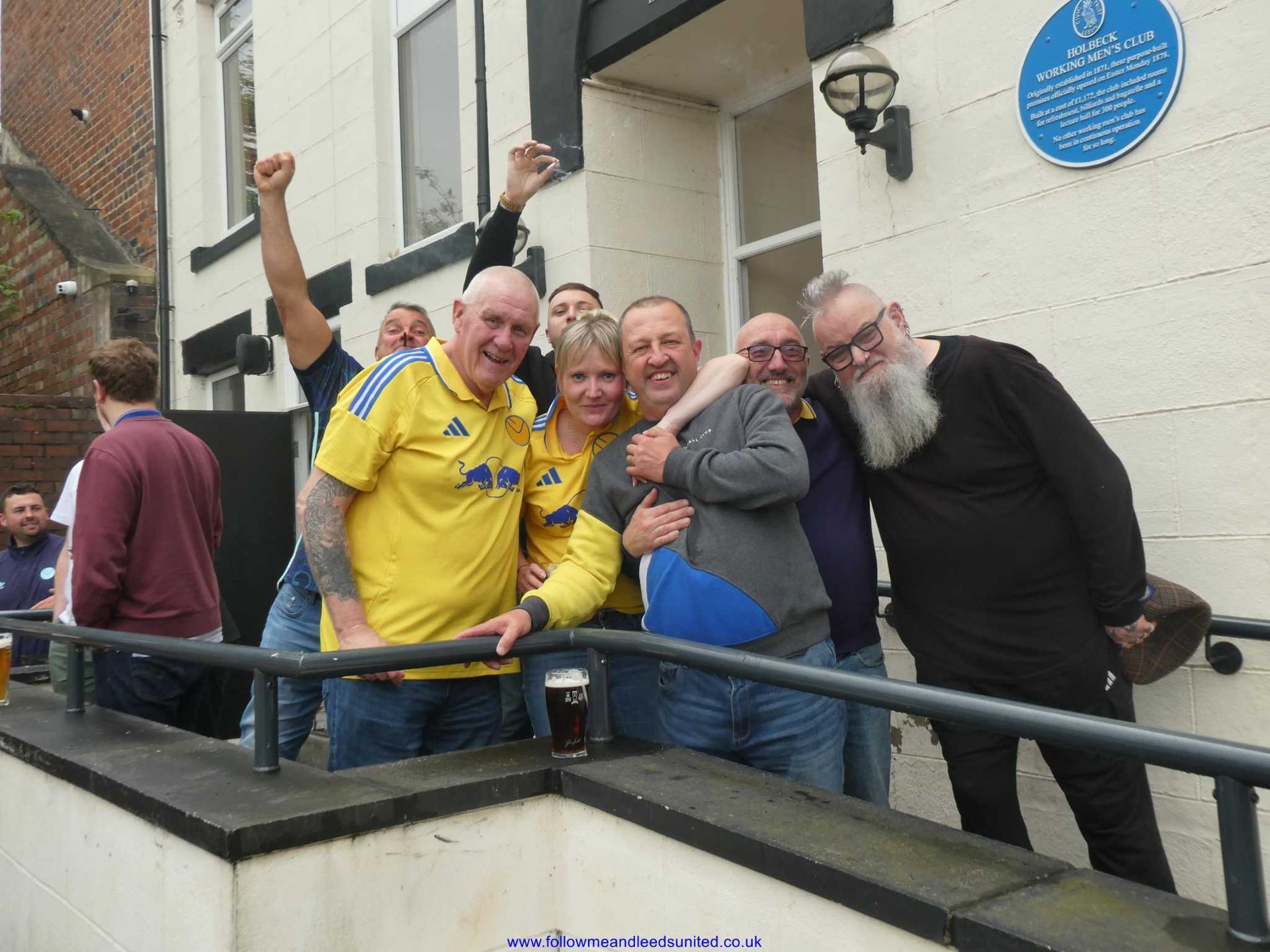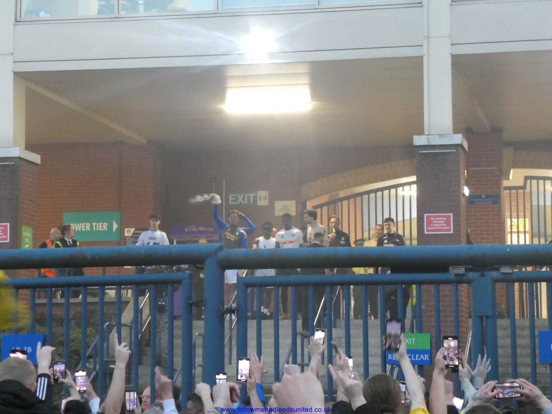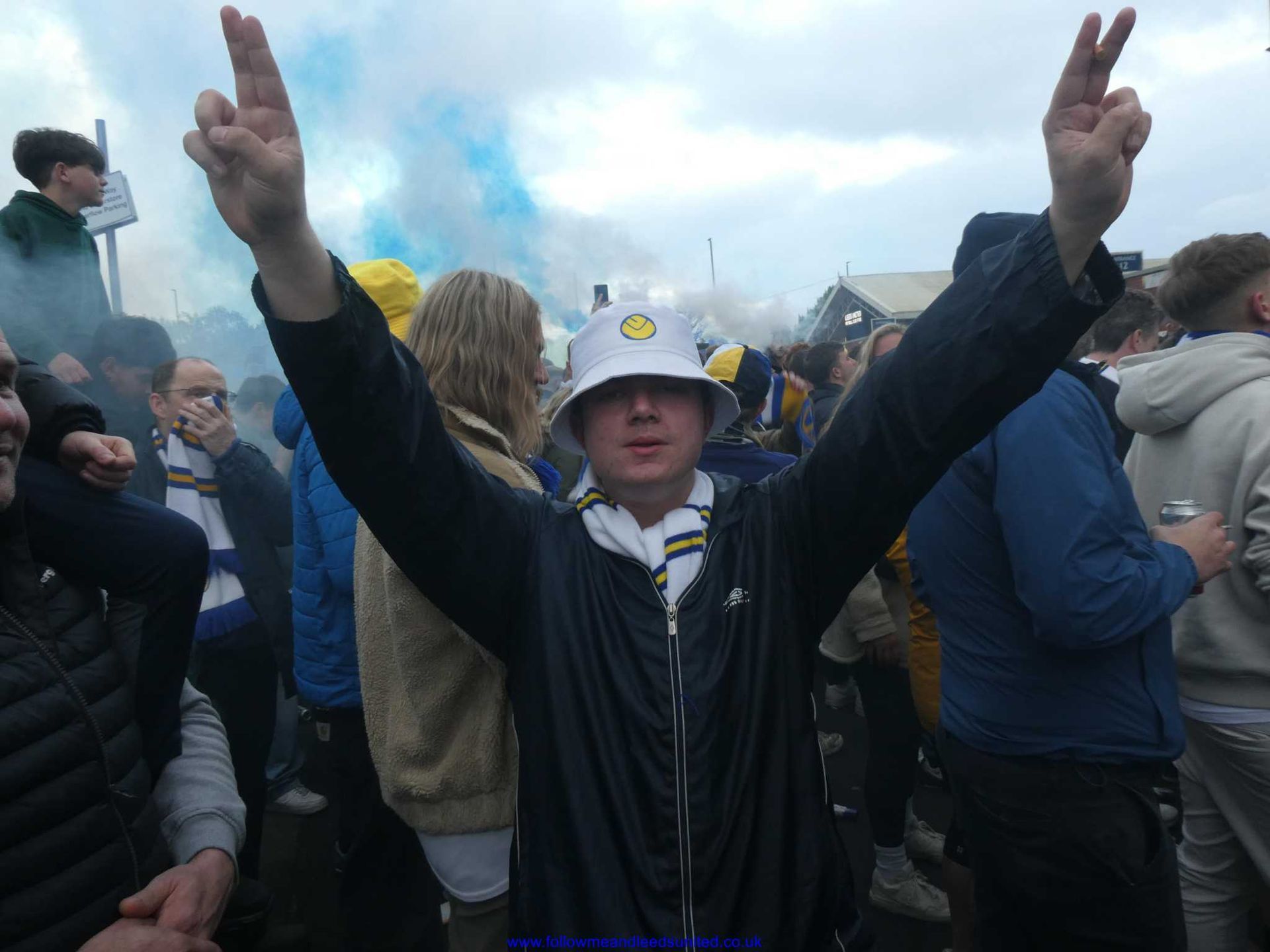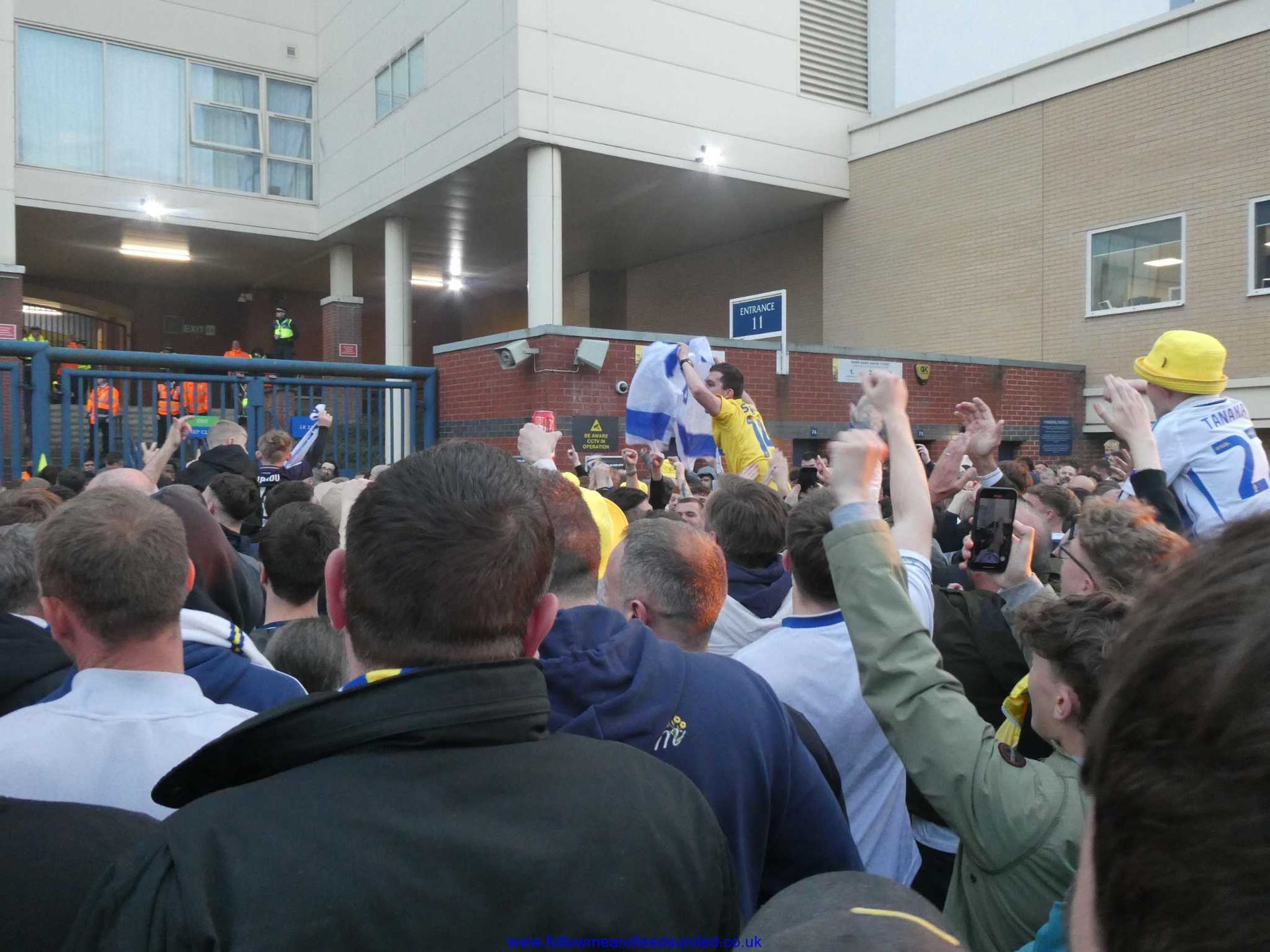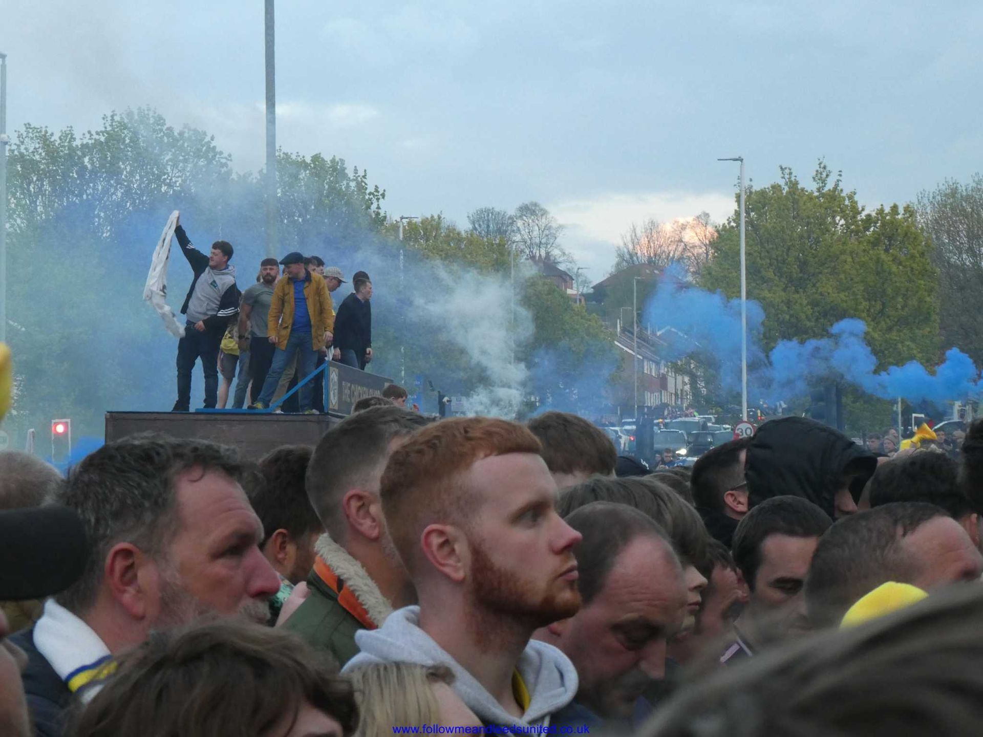 At the end of the game, we went back to the Holbeck Working Men’s Club before heading back down to Elland Road to celebrate our promotion as Burnley were winning Sheffield United. Great scenes as we celebrated with the team and other fans although the flares let off stunk to high heaven. A nice gesture was my granddaughter being given a Leeds scarf to cover her face when the smoke was overpowering. The smoke lingered in my throat long into the night too. It was also very humbling to be told that I am an inspiration which were amongst some of the lovely words said to me by our fans today. With the hugs and thoughts about my late husband, I couldn’t ask for more support from so many of you which is why Leeds United supporters are second to none.