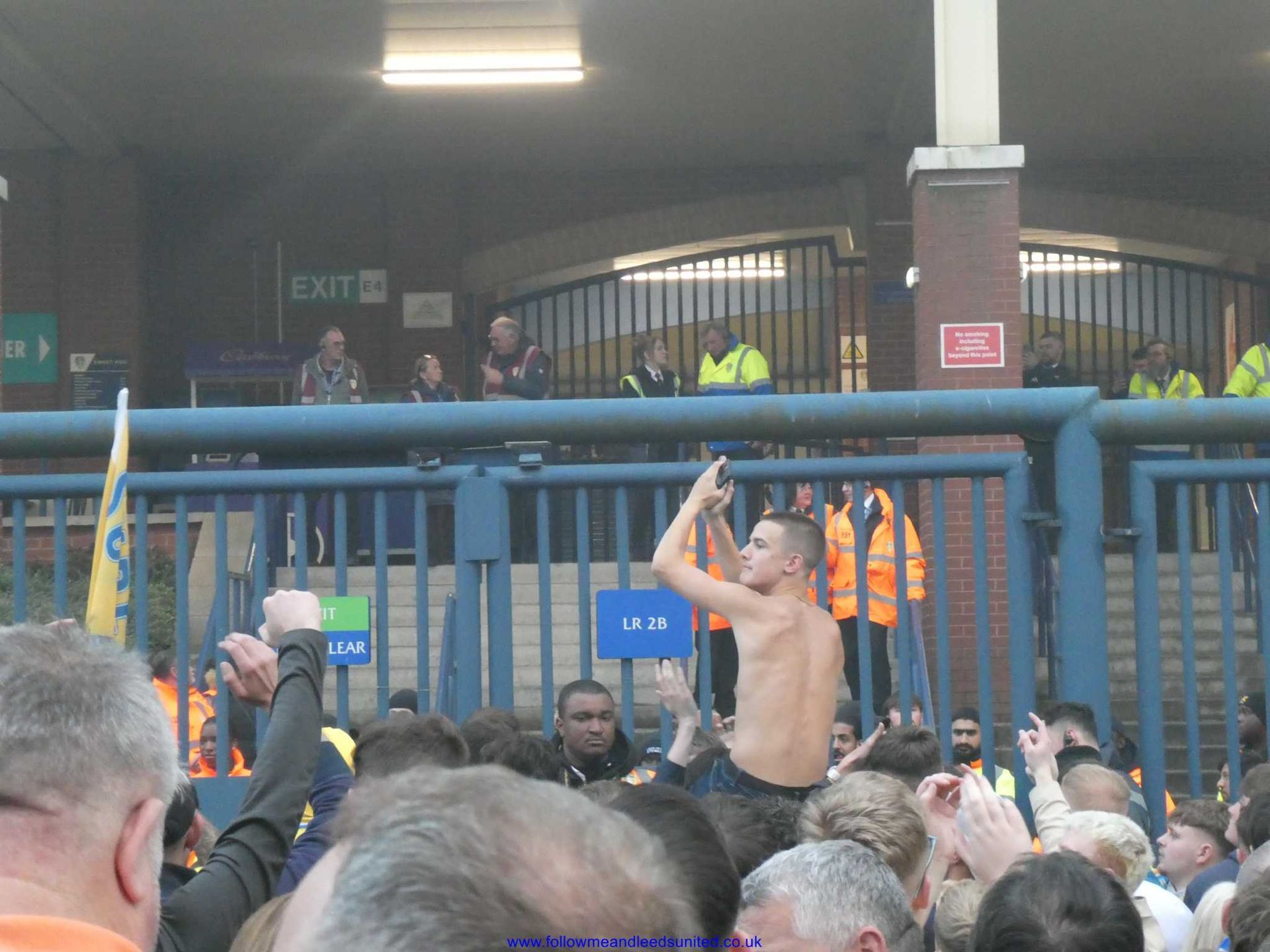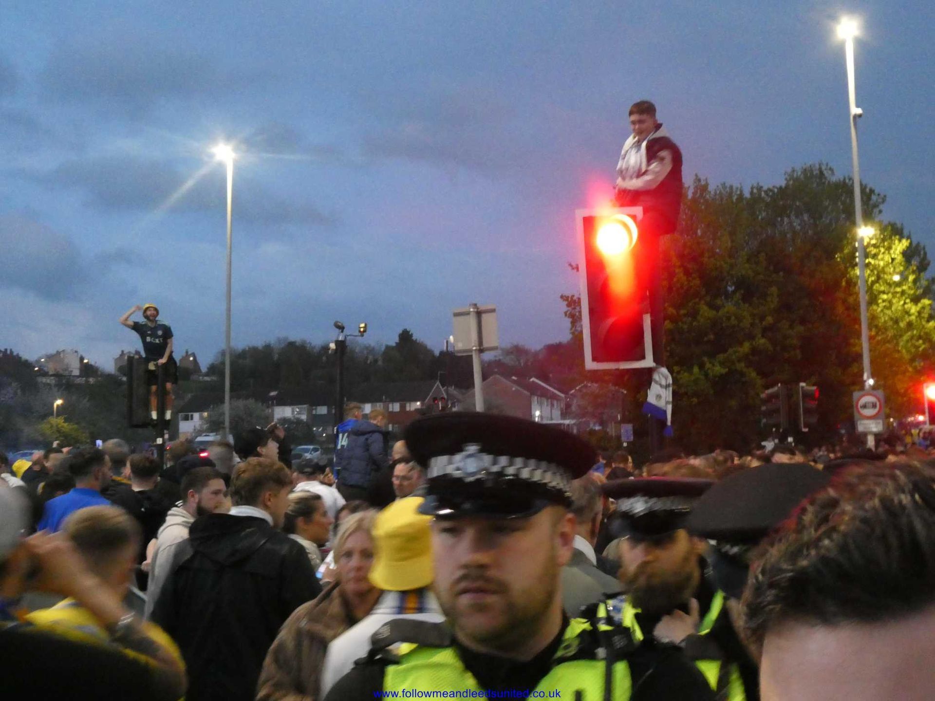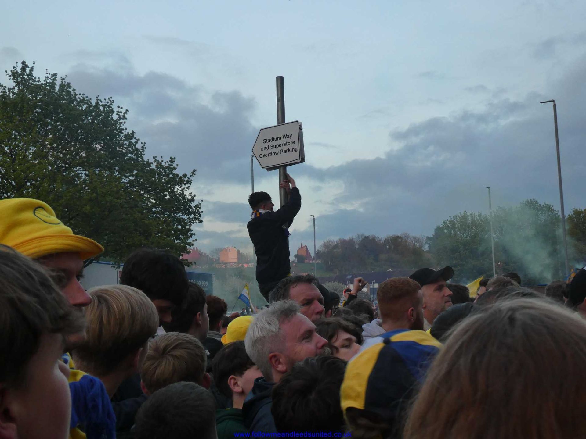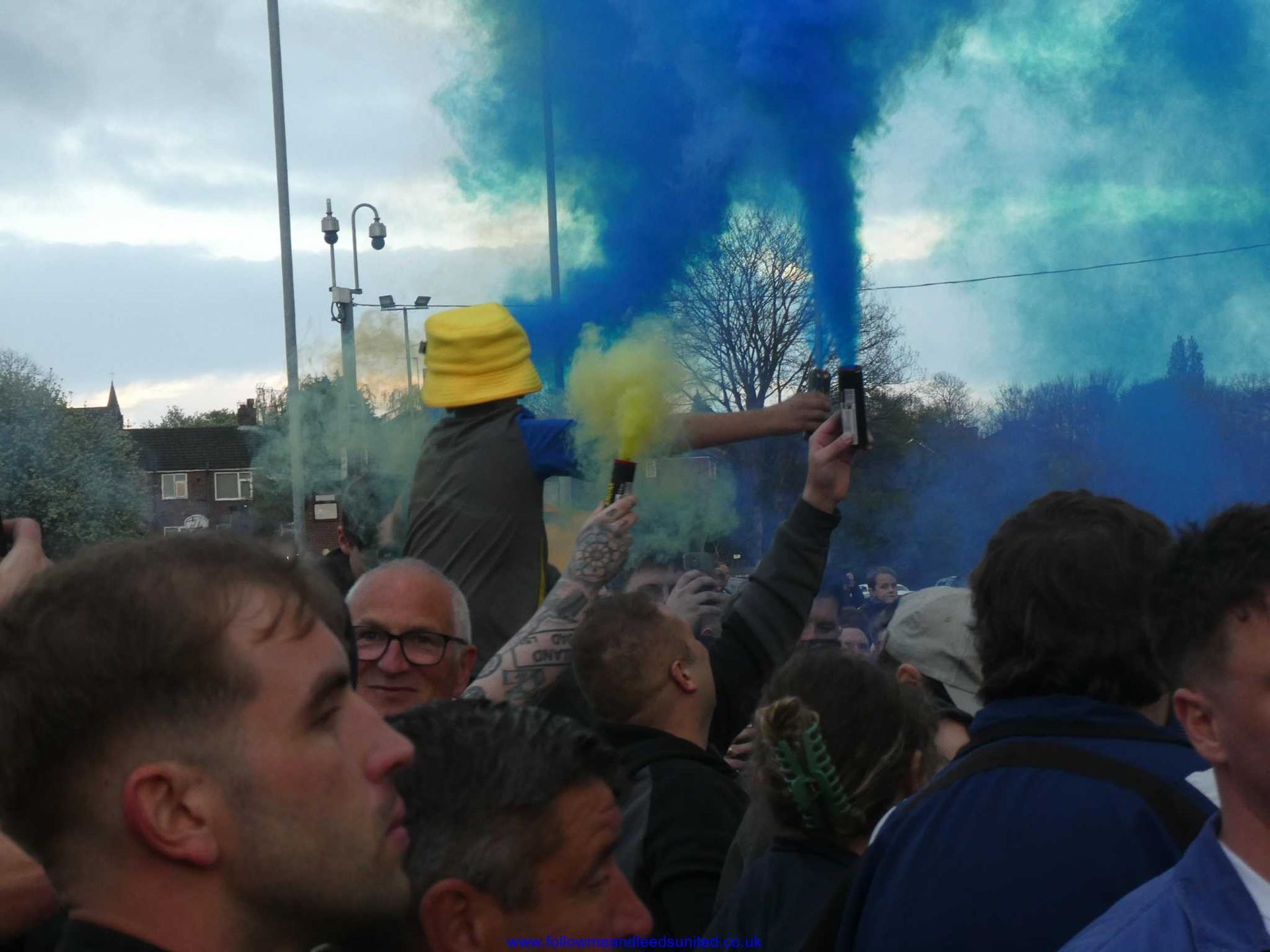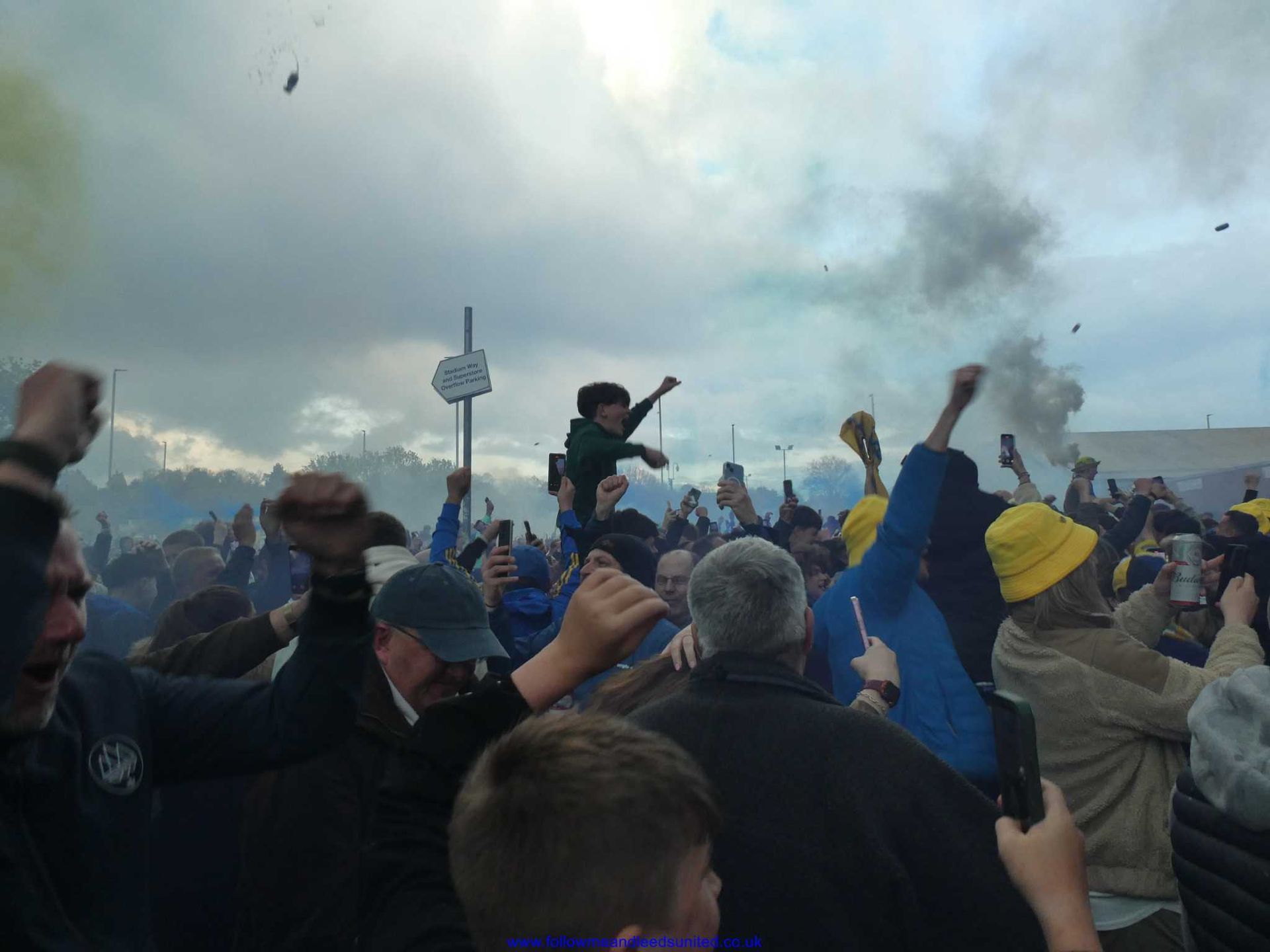 At the end of the game, we went back to the Holbeck Working Men’s Club before heading back down to Elland Road to celebrate our promotion as Burnley were winning Sheffield United. Great scenes as we celebrated with the team and other fans although the flares let off stunk to high heaven. A nice gesture was my granddaughter being given a Leeds scarf to cover her face when the smoke was overpowering. The smoke lingered in my throat long into the night too. It was also very humbling to be told that I am an inspiration which were amongst some of the lovely words said to me by our fans today. With the hugs and thoughts about my late husband, I couldn’t ask for more support from so many of you which is why Leeds United supporters are second to none.