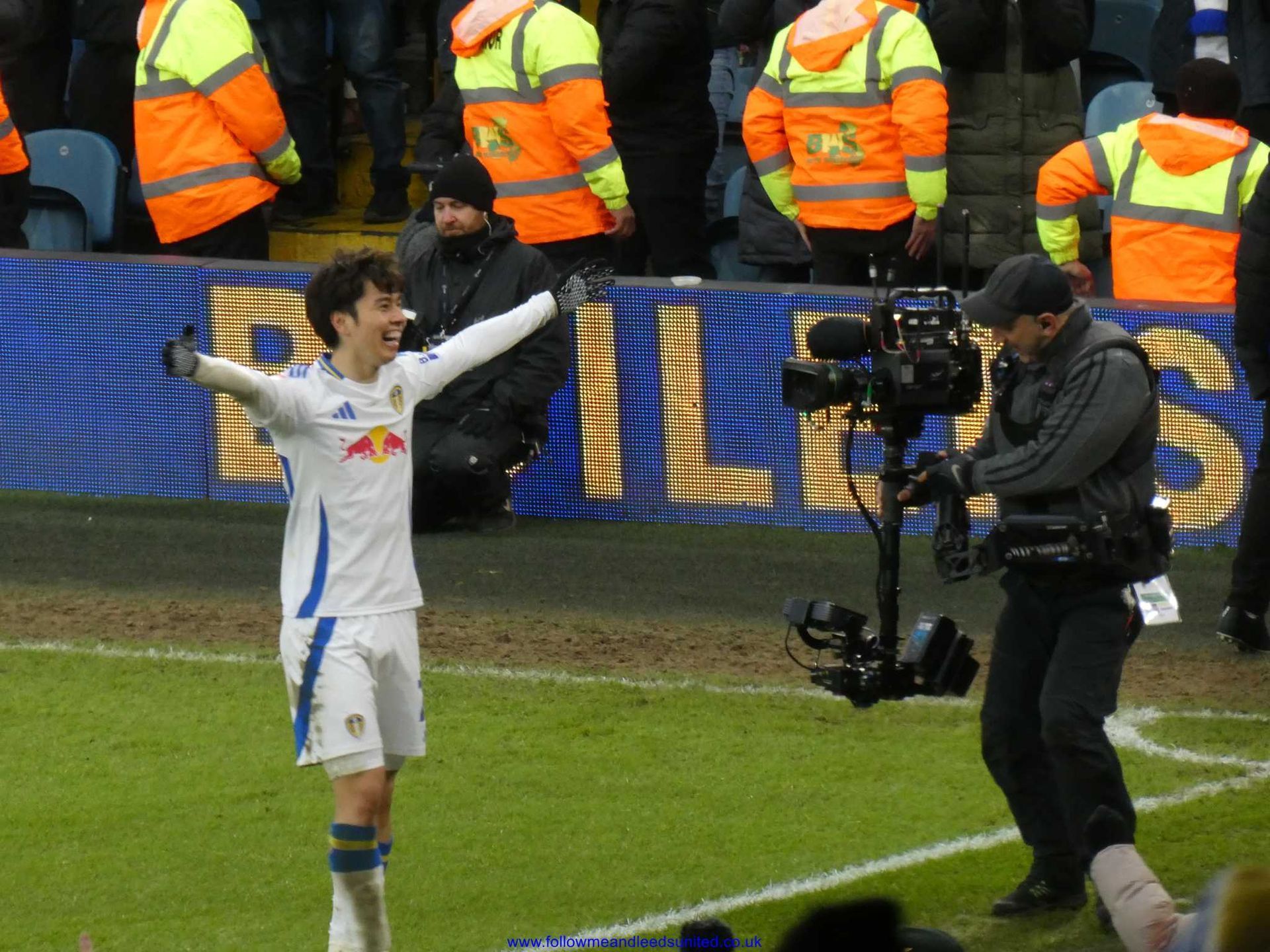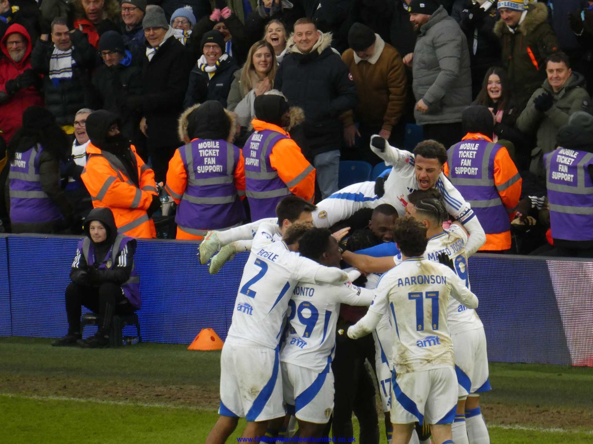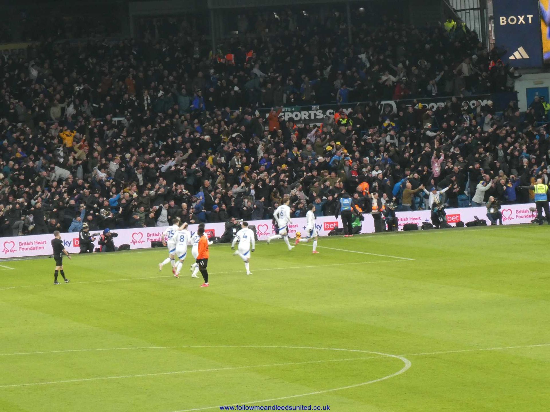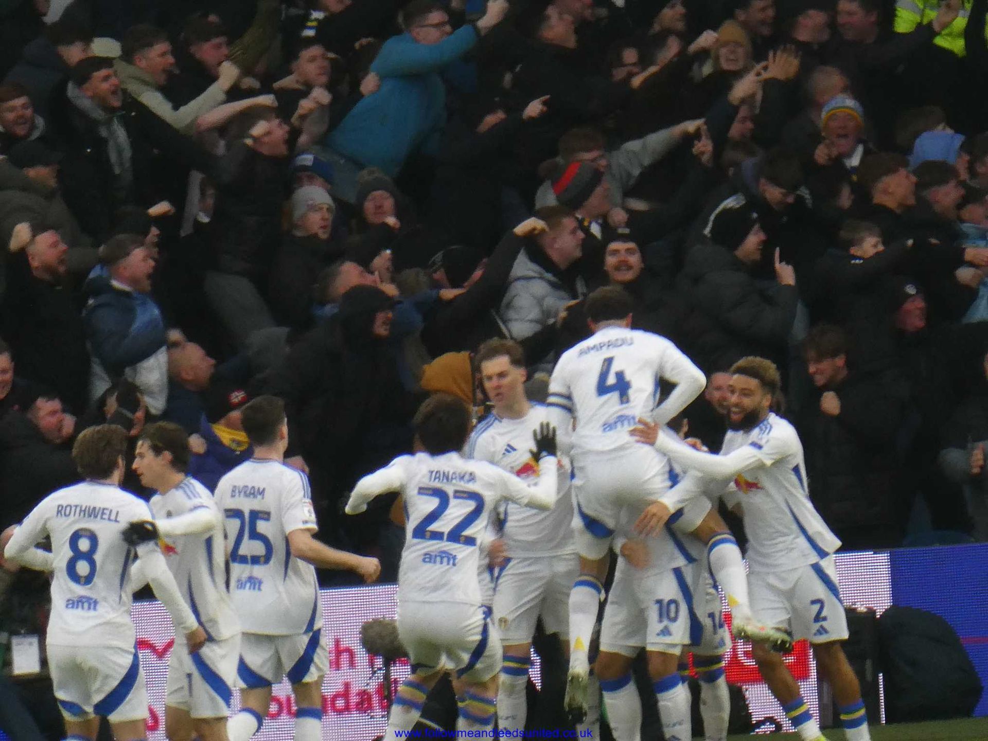 Leeds got off to a fantastic start when Aaronson got near enough to the keeper to make him spill the ball. Solomon was there to pick it up and place his shot in between two Wednesday players to score an early goal. That was just the start we needed but Wednesday were soon on the attack which showed it wasn’t going to be easy. A few times they had players spare on the wings plus the referee was giving them free kick after free kick even when they were just being challenged for the ball. When has football become a non-contact sport? To make things worse, he didn’t even blow for two blatant hand balls during the game, after a foul on one of our players, then immediately blew for one of their players going down. When decisions go against you it always gives the opposition the impetus who go from strength to strength, so it is to our credit that we were able to overcome this today. We nearly put ourselves in trouble when the ball should have gone out for a goal kick but to be safe Bogle put the ball over the line. It was a bit of an anxious moment but thankfully we eventually cleared the ball away. Despite them losing, their player took a while whilst taking a corner to the left of us and was told to move the ball onto the line. Despite pretending to move the ball, I’m not actually sure he ever did do it. The game had been fast paced and James brought two saves out of their keeper as we went in one goal in front at the break.