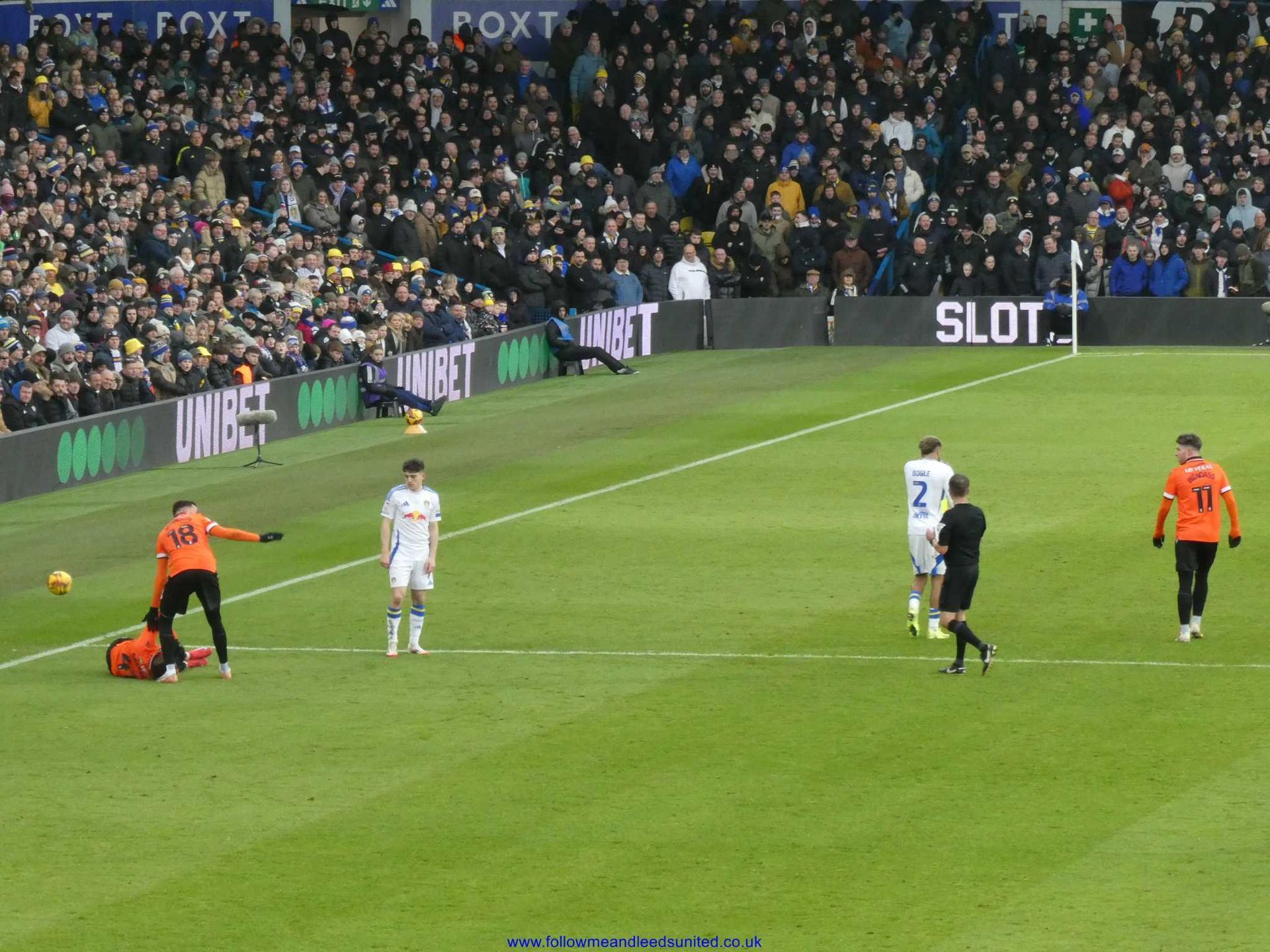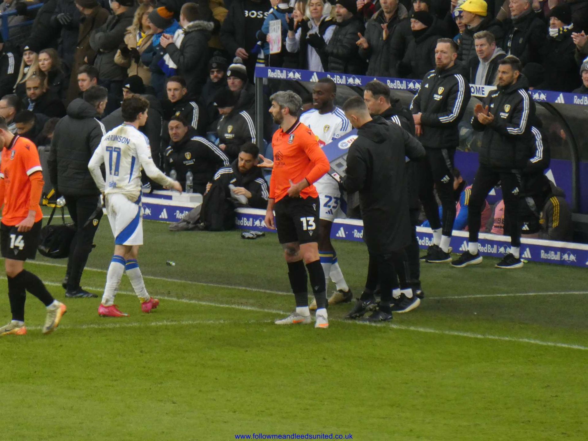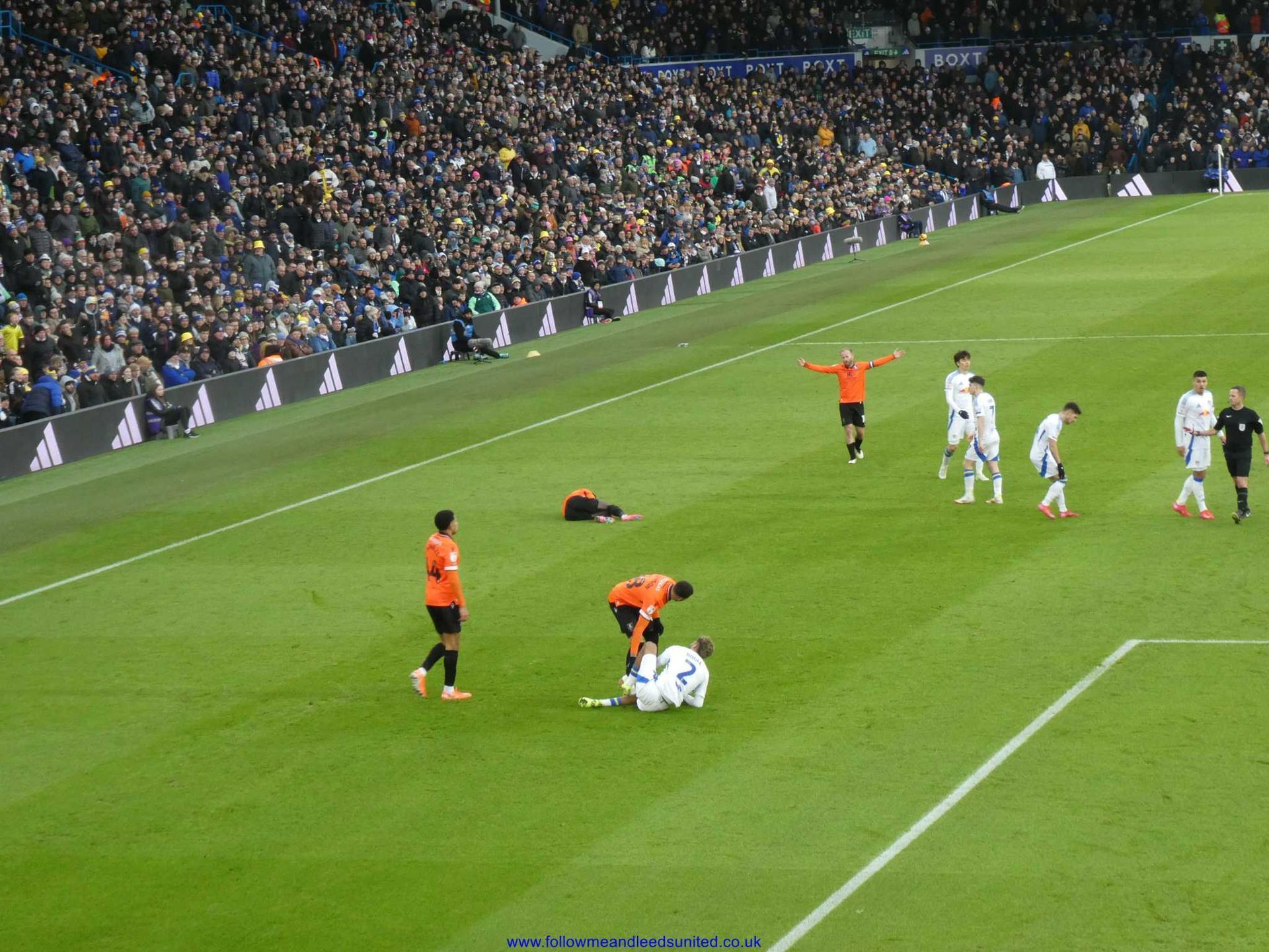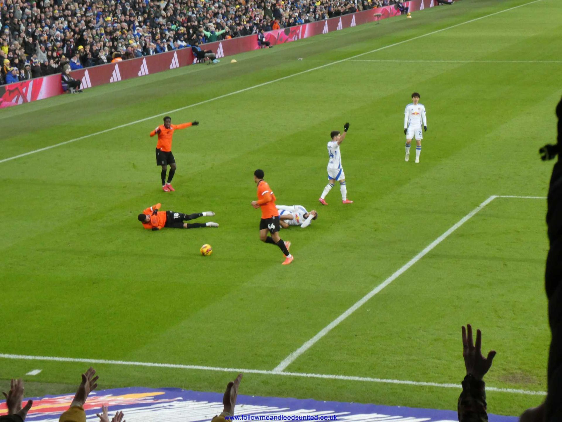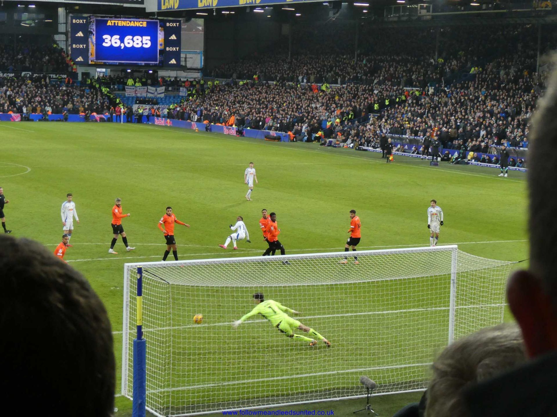 Leeds got off to a fantastic start when Aaronson got near enough to the keeper to make him spill the ball. Solomon was there to pick it up and place his shot in between two Wednesday players to score an early goal. That was just the start we needed but Wednesday were soon on the attack which showed it wasn’t going to be easy. A few times they had players spare on the wings plus the referee was giving them free kick after free kick even when they were just being challenged for the ball. When has football become a non-contact sport? To make things worse, he didn’t even blow for two blatant hand balls during the game, after a foul on one of our players, then immediately blew for one of their players going down. When decisions go against you it always gives the opposition the impetus who go from strength to strength, so it is to our credit that we were able to overcome this today. We nearly put ourselves in trouble when the ball should have gone out for a goal kick but to be safe Bogle put the ball over the line. It was a bit of an anxious moment but thankfully we eventually cleared the ball away. Despite them losing, their player took a while whilst taking a corner to the left of us and was told to move the ball onto the line. Despite pretending to move the ball, I’m not actually sure he ever did do it. The game had been fast paced and James brought two saves out of their keeper as we went in one goal in front at the break.