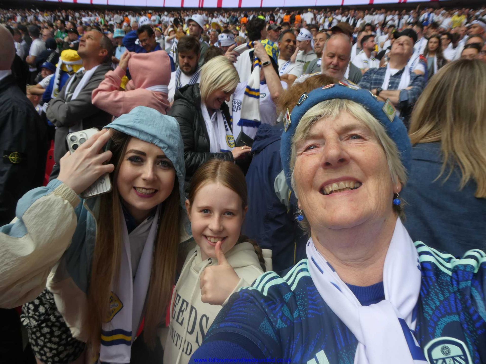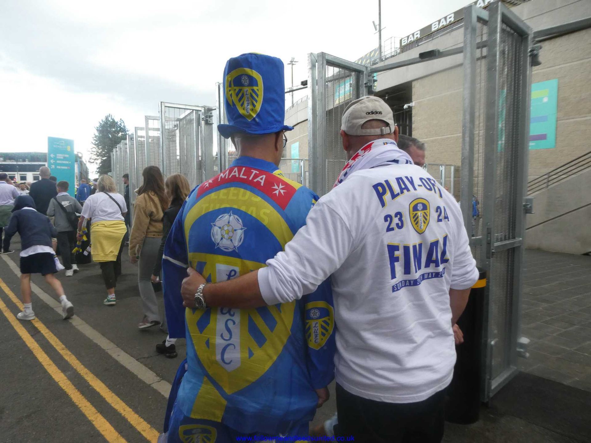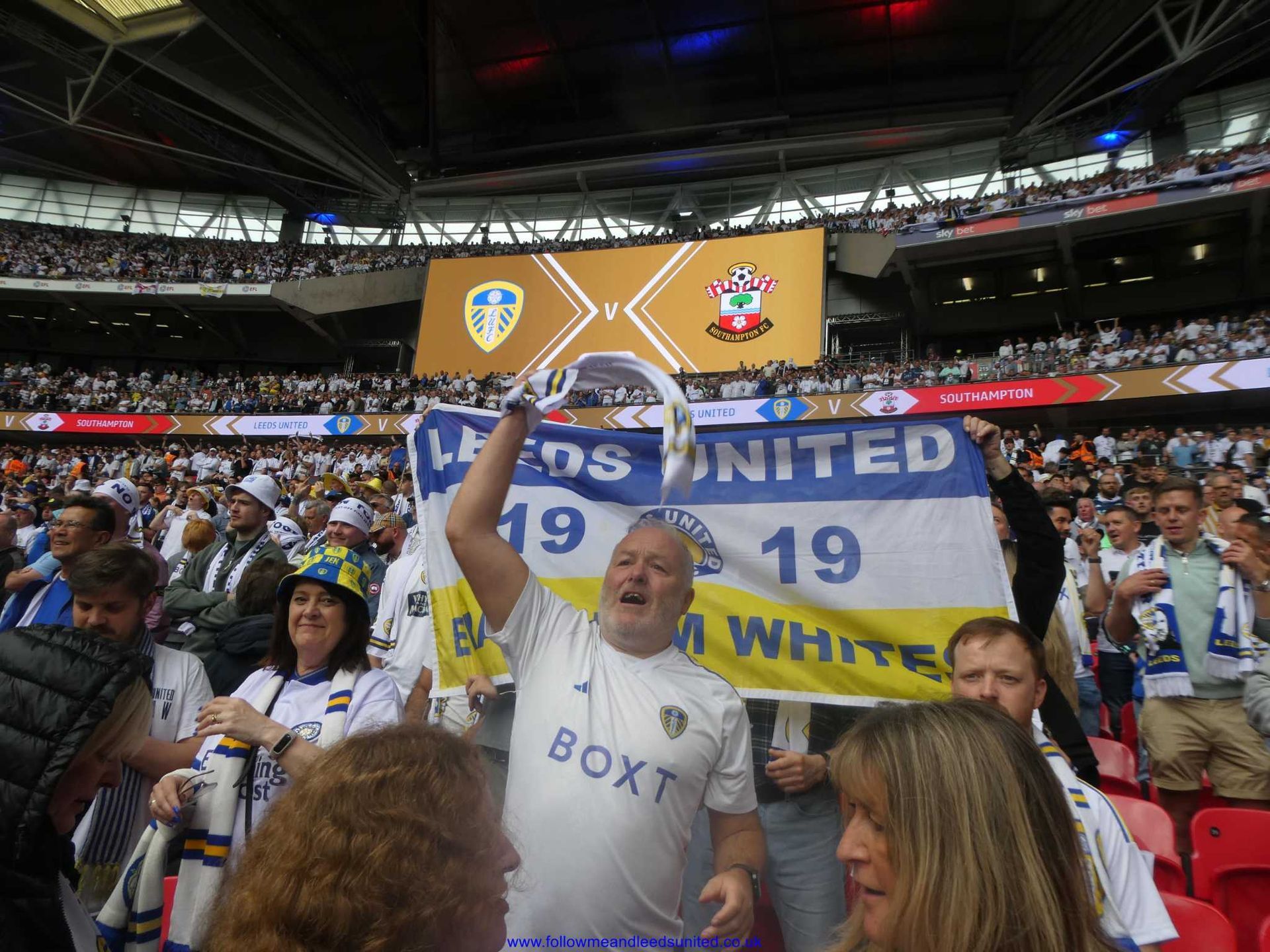 We will have another season staying in the Championship but as fixtures will be out in three weeks, the Euros take place and once we know where our preseason tour will be held, it won’t be long before we are back on the terraces again. To be honest I didn’t feel disappointed at the end just resigned to us not winning another play off game. I did think it would be third time lucky with them having beaten us twice already this season, plus our lick had to change one day in the play offs. I think we could have done with having Collar back leading the fans today. We have over 200 songs and chants that we recorded for our CDs, and it would have been lovely to have lots of different ones sung today. Even though we had scarves put on our seats again today, we could not create that 12th man siege we had at Elland Road. We may have had a wall of noise, but we needed to be singing songs in my opinion. I was also sad that we never did a “one Don Revie chant” as it was the anniversary of his death today. I was privileged to have seen the greatest Leeds United team under his tenure and he and that team are why our worldwide fanbase is what it is today. I was touched to be told that I was a credit to Leeds United today because of what I do with my blogs and photos, so I want to say thank you for the compliment which is appreciated.