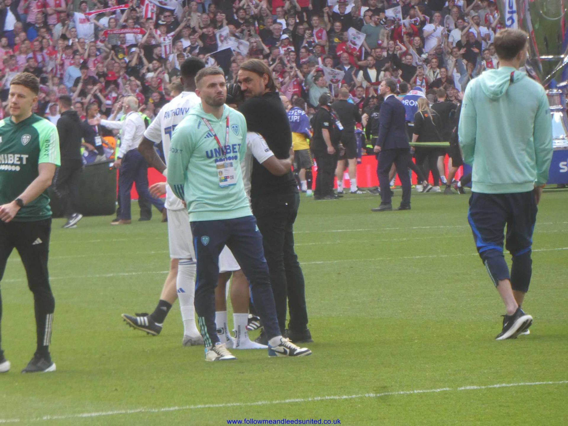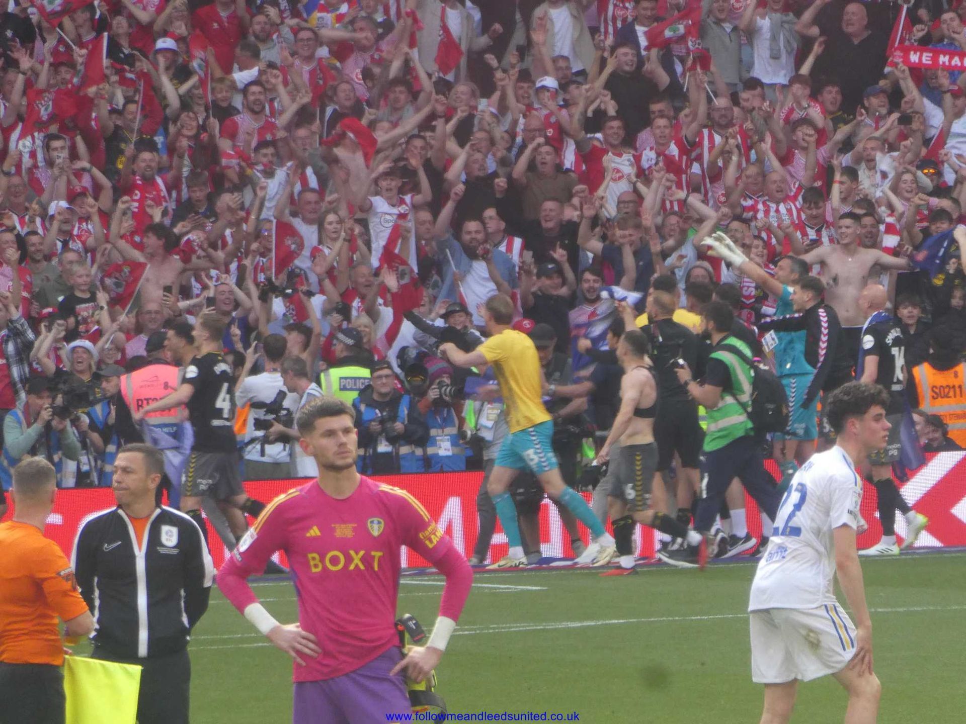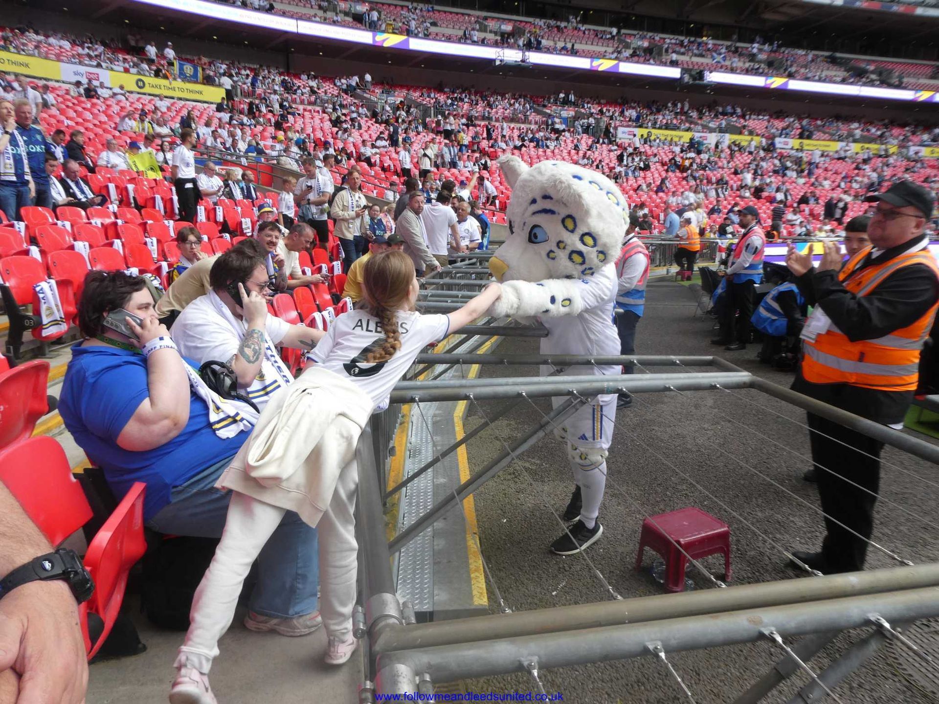 We will have another season staying in the Championship but as fixtures will be out in three weeks, the Euros take place and once we know where our preseason tour will be held, it won’t be long before we are back on the terraces again. To be honest I didn’t feel disappointed at the end just resigned to us not winning another play off game. I did think it would be third time lucky with them having beaten us twice already this season, plus our lick had to change one day in the play offs. I think we could have done with having Collar back leading the fans today. We have over 200 songs and chants that we recorded for our CDs, and it would have been lovely to have lots of different ones sung today. Even though we had scarves put on our seats again today, we could not create that 12th man siege we had at Elland Road. We may have had a wall of noise, but we needed to be singing songs in my opinion. I was also sad that we never did a “one Don Revie chant” as it was the anniversary of his death today. I was privileged to have seen the greatest Leeds United team under his tenure and he and that team are why our worldwide fanbase is what it is today. I was touched to be told that I was a credit to Leeds United today because of what I do with my blogs and photos, so I want to say thank you for the compliment which is appreciated.