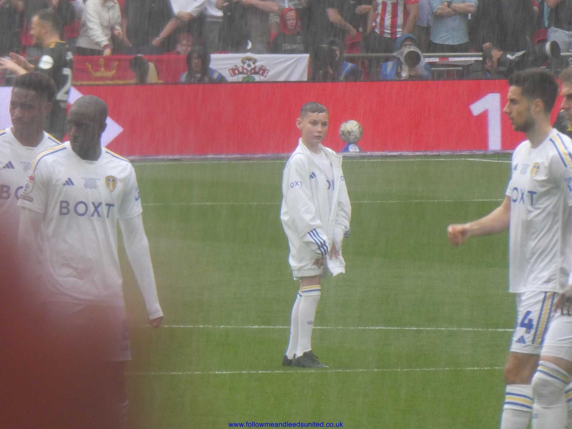 Just as the teams came out the heavens opened with torrential rain, and we got soaked. It was lovely to see young Riley leading the team out as mascot and hopefully he had an amazing day.