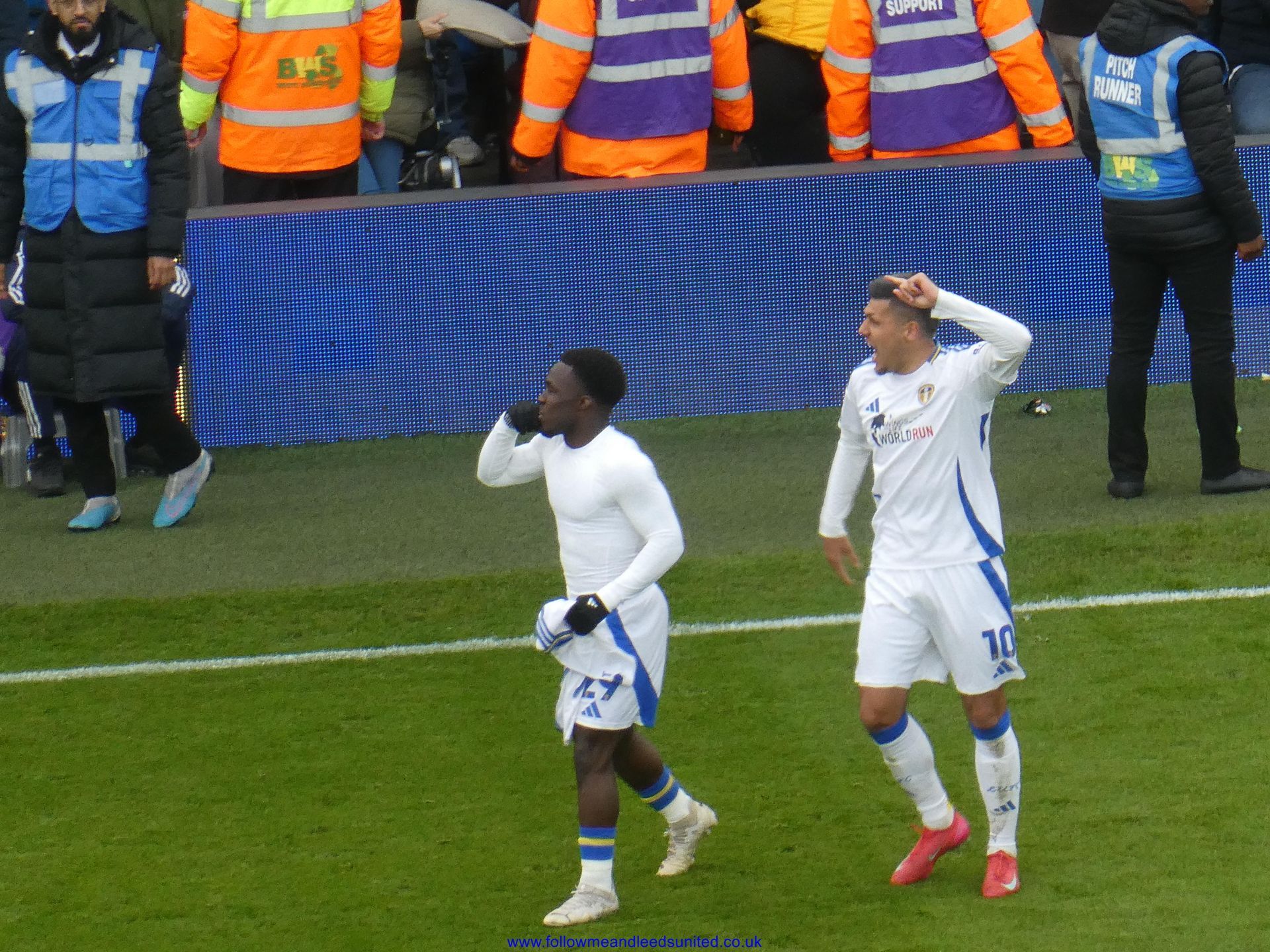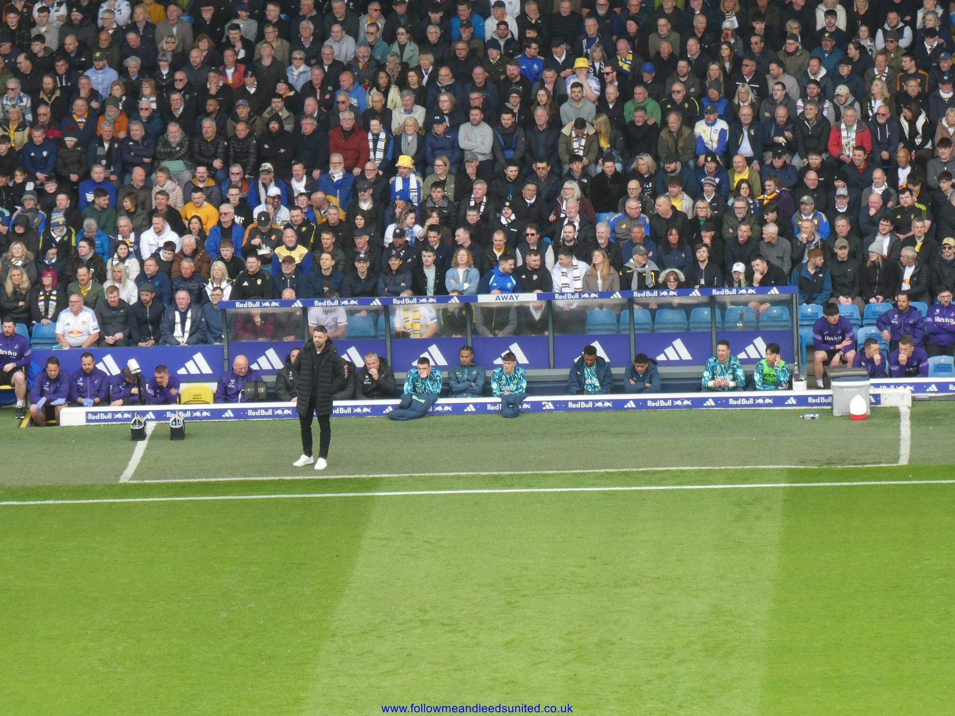 I'd gone to the front of the upper east stand to get photos as there was to be a minute's applause for Chris and Kev. As I was getting to my seat two lads asked for their photos, but I said to wait as we'd gone straight on the attack towards the south stand and before we knew it the ball had hit the back of the net. What a fantastic start to the game but in true Leeds United fashion, things went downhill when we conceded a penalty. I didn't think it was one for a minute until I saw a replay later. Rodon did catch him, but he was going out of the penalty area, so it wasn’t a goal scoring opportunity. Did that use to be a rule in the past where they’d wave away a penalty appeal on that basis? I’m not sure if I’ve made it up or whether for once my memory is correct but no doubt someone will enlighten me. As for the penalty, justice prevailed when Meslier dived the right way and saved it. Swansea came back at us very quickly and were very unlucky not to equalise shortly afterwards. They won a free kick in front of us and as they sent the ball into the middle, the ball was headed against the upright and the ball bounced straight back into Meslier’s hands. Phew that was a relief, but it also showed to me that Swansea wouldn’t be no pushover, but I do feel once they were awarded the penalty, that made a difference. As the game progressed some of our players were looking leggy as the effects of the international break once more came back to haunt us.