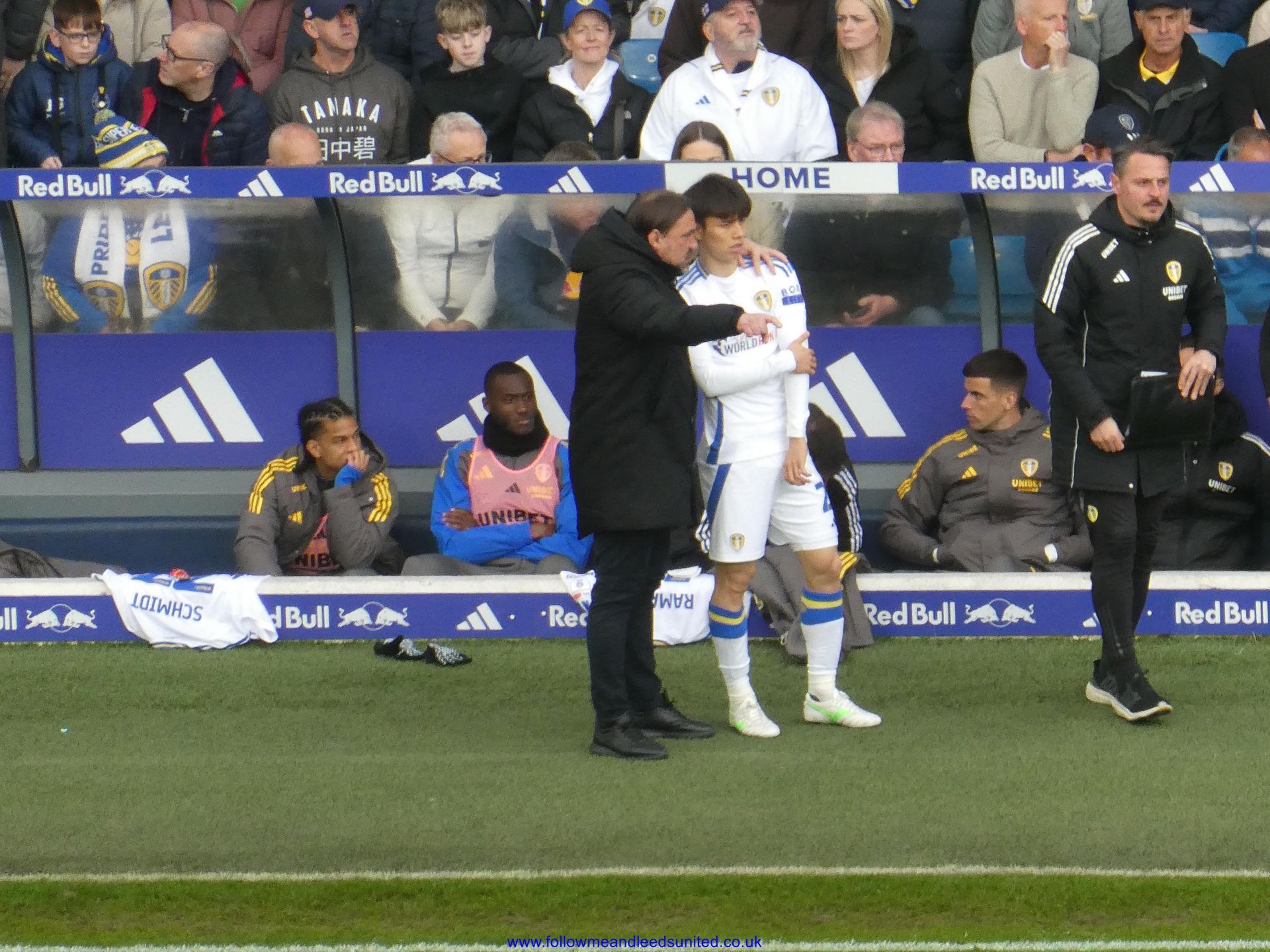 Team: Meslier, Ampadu (captain), Struijk, Rodon, James, Aaronson, Bogle, Byram, Rothwell, Piroe, Solomon.