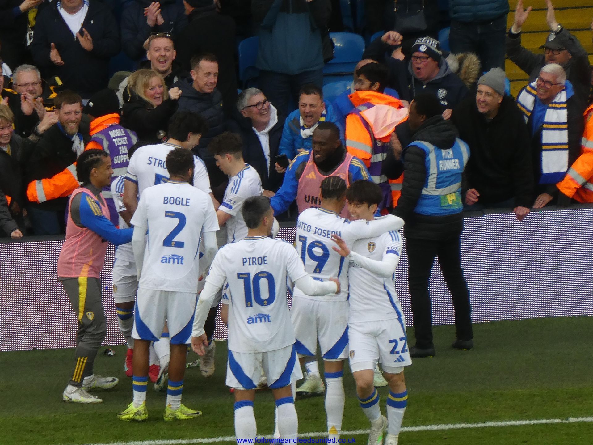 The second half had kicked off by the time I got back to my seat (by the way those padded seats are a far cry from my usual one in the Kop but are very comfy). We were very unlucky not to get a second goal as James kept the ball in on the by line then Aaronson sent the ball into the middle of the box and Piroe saw the keeper make a good save from his shot. James also saw the keeper make a good save from him. We let Swansea back into the game unexpectedly from a corner. Meslier went up unopposed to catch the ball, dropped it but the first person to react was their player to put the ball into the net. Prior to that he’d made a great save to keep them out then this happened. Gnonto came on as sub and from a corner Struijk saw their keeper make another great save but then Gnonto hit a great shot from the edge of the box to take the lead once again. Swansea had been time wasting and I thought there may be six minutes of injury time but there was seven. After we had got that goal, instead of consolidating the lead and seeing the game out, we did everything to give Swansea the chance to equalise by losing the ball, then the man from our throw in before they equalised once again with six minutes added on. With lots blaming Meslier for this goal too which I don’t, you can see on replays we had six players there who were all ball watching who had already switched off in my opinion. Swansea never gave up and deserved their point to be honest.