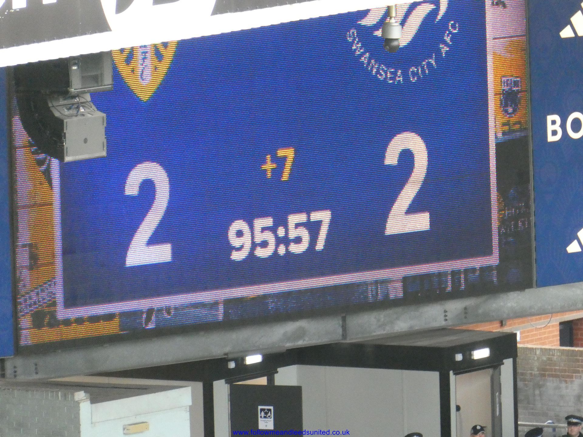 Leeds drew 2-2 with Aaronson (1) and Gnonto (86) scoring for Leeds. Swansea equalised for the second time in 90+6 minutes after doing the same in the 64th minute.