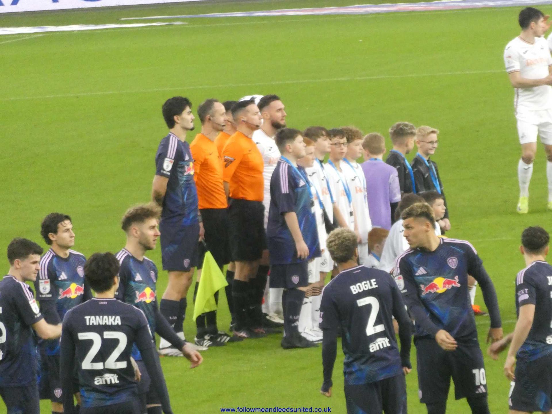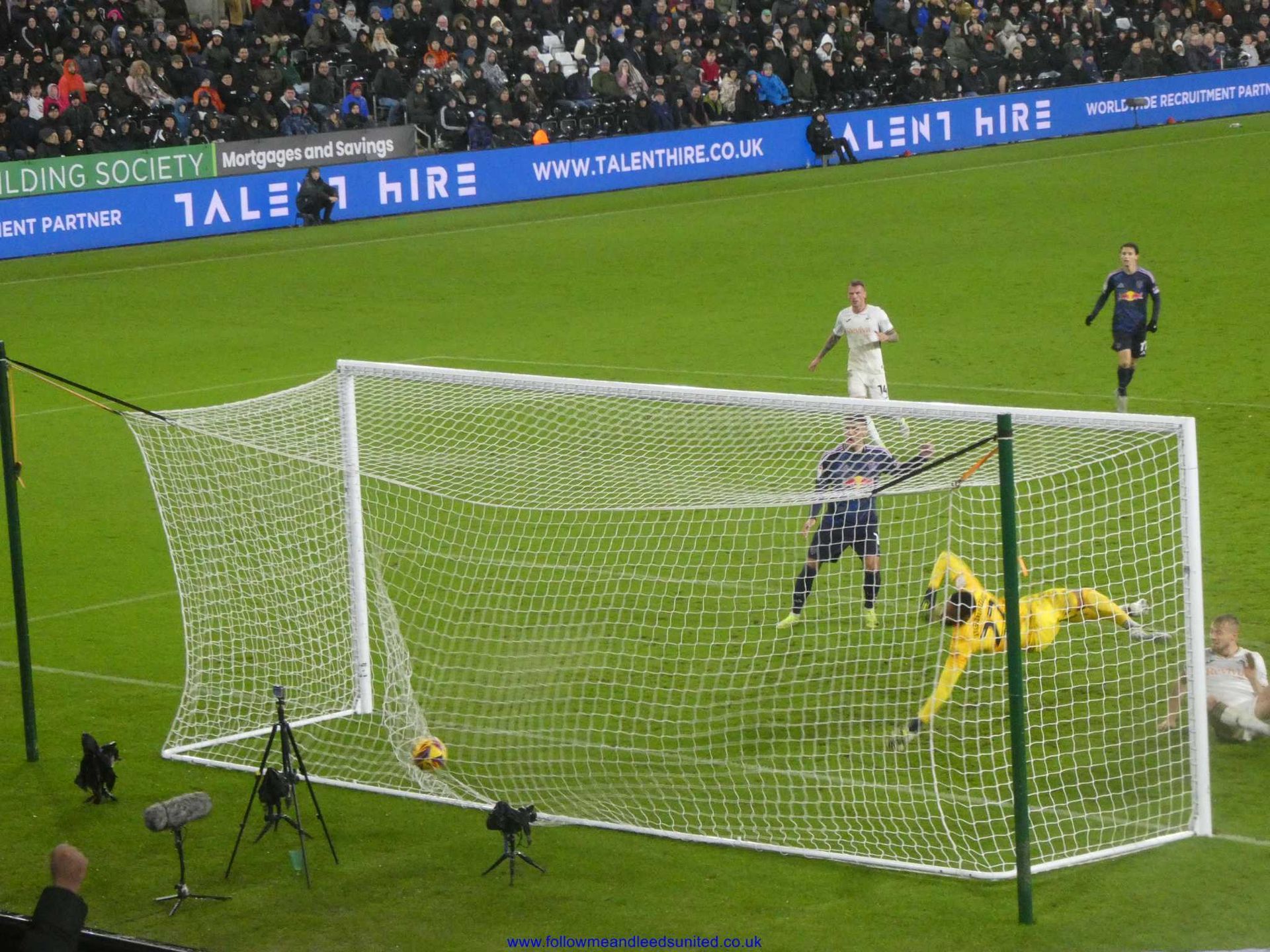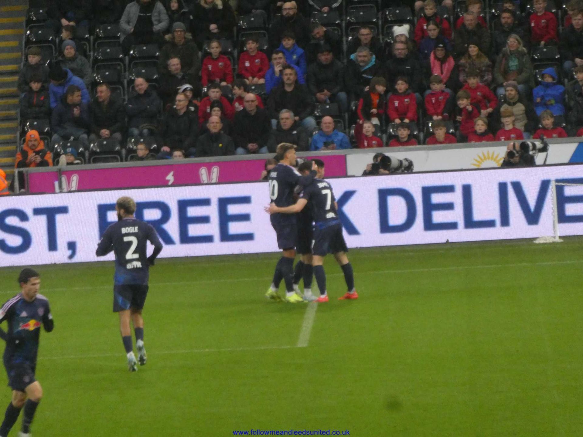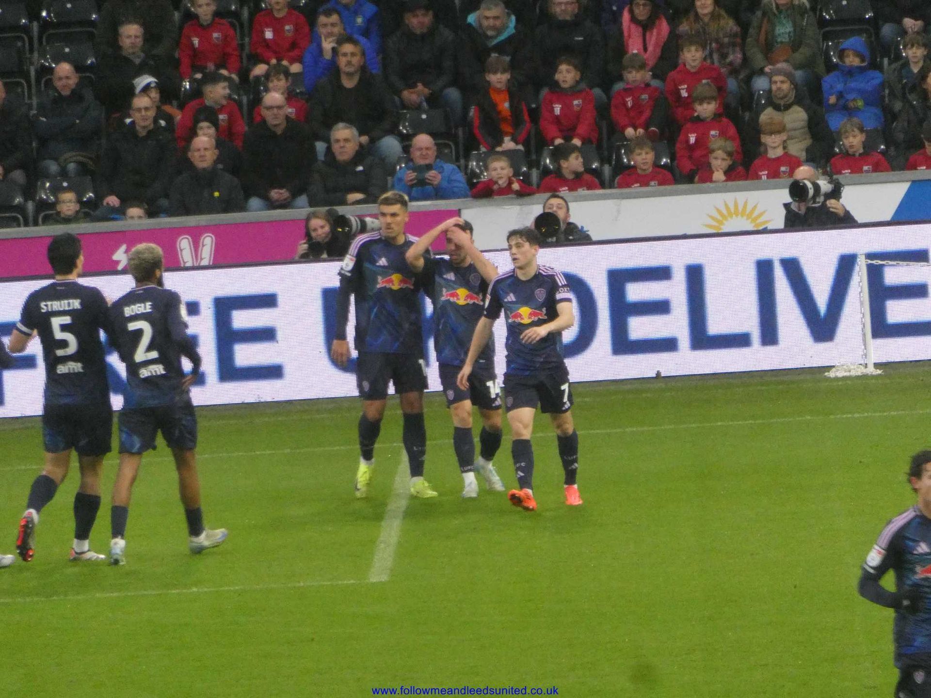 Although the game ended with seven goals scored it felt a very surreal scoreline. Leeds had the first attack and from the corner the ball reached James at the far post who saw his shot go over the bar. Swansea were lucky they weren’t penalised for a pull on Rodon’s shirt. We were frustrated with the referee blowing for any little touch on Swansea players. They were given a free kick for an innocuous challenge, which we were made to pay for when they scored from the set play when their player got past our defence in acres of space. Luckily for us we got back into the game relatively quickly and a fantastic pass through to James saw him run forward and unselfishly pass the ball across the box for Solomon to get his first goal for the club. Three minutes of injury time were given for the first half which felt more than was needed, but they got a second goal when we lost the ball in midfield, then a wicked deflection from Bogle, took the ball into the bottom corner of the goal, just of our Meslier’s full stretch reach. Without the deflection he would have saved the shot. That was a disappointing one to concede as we went into the break.