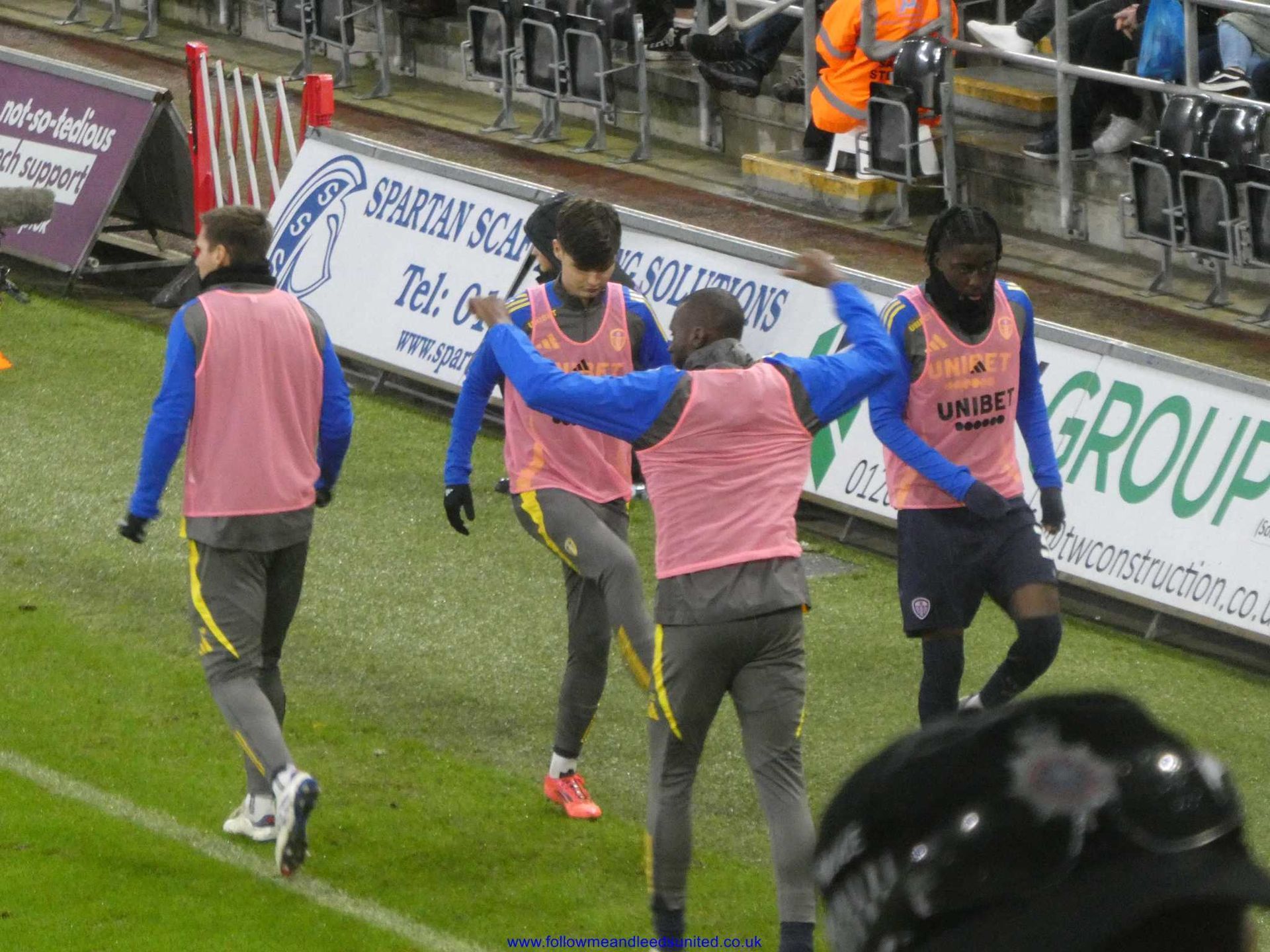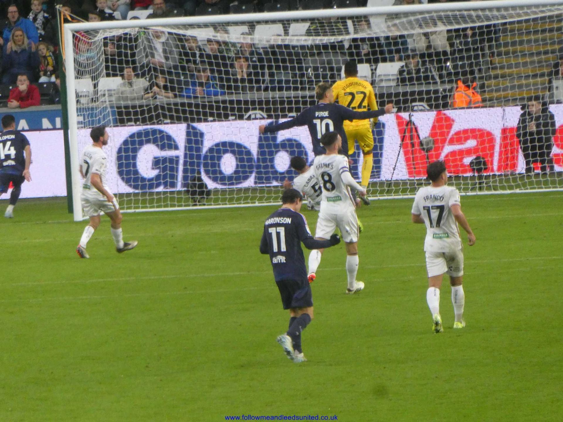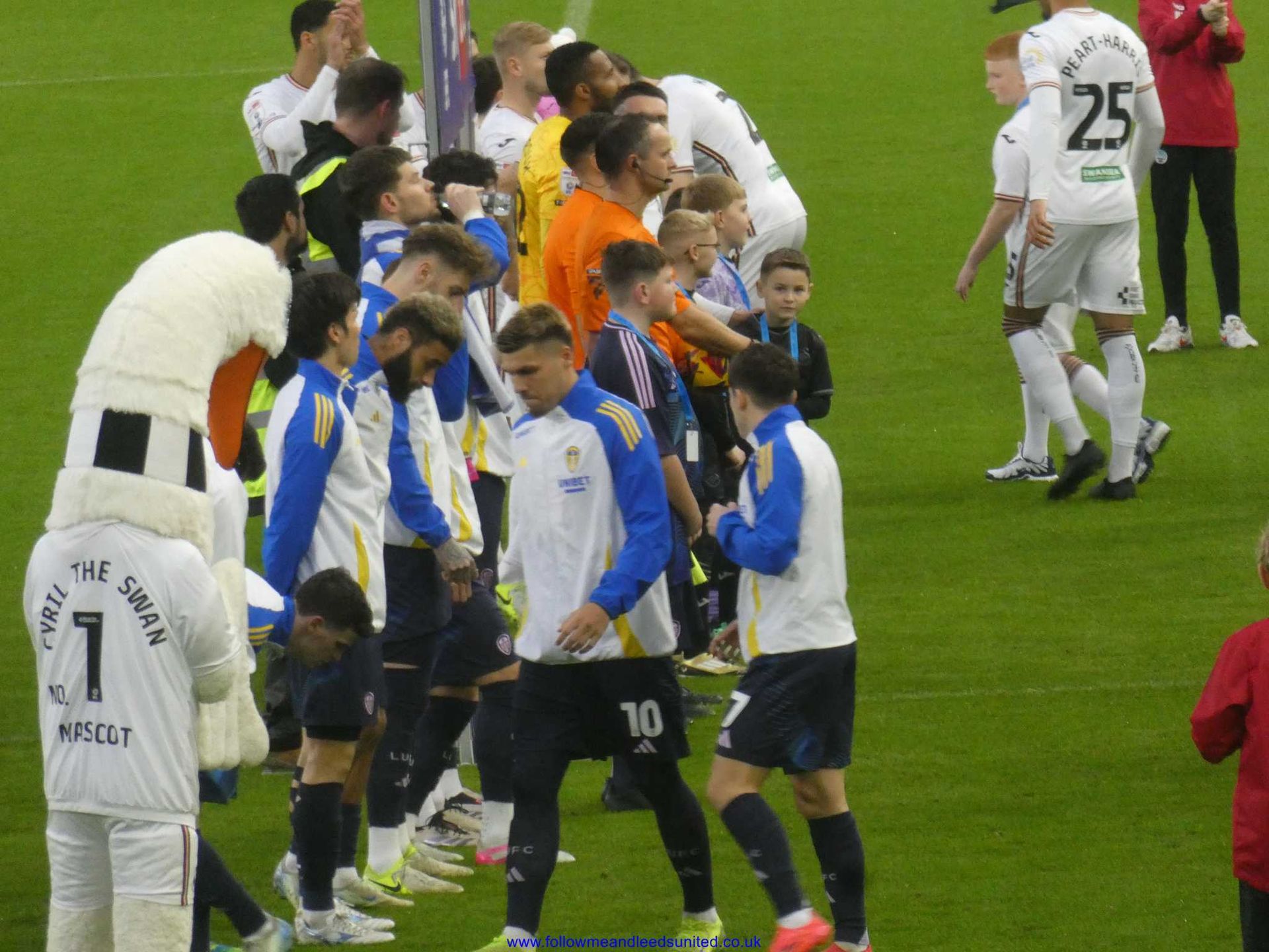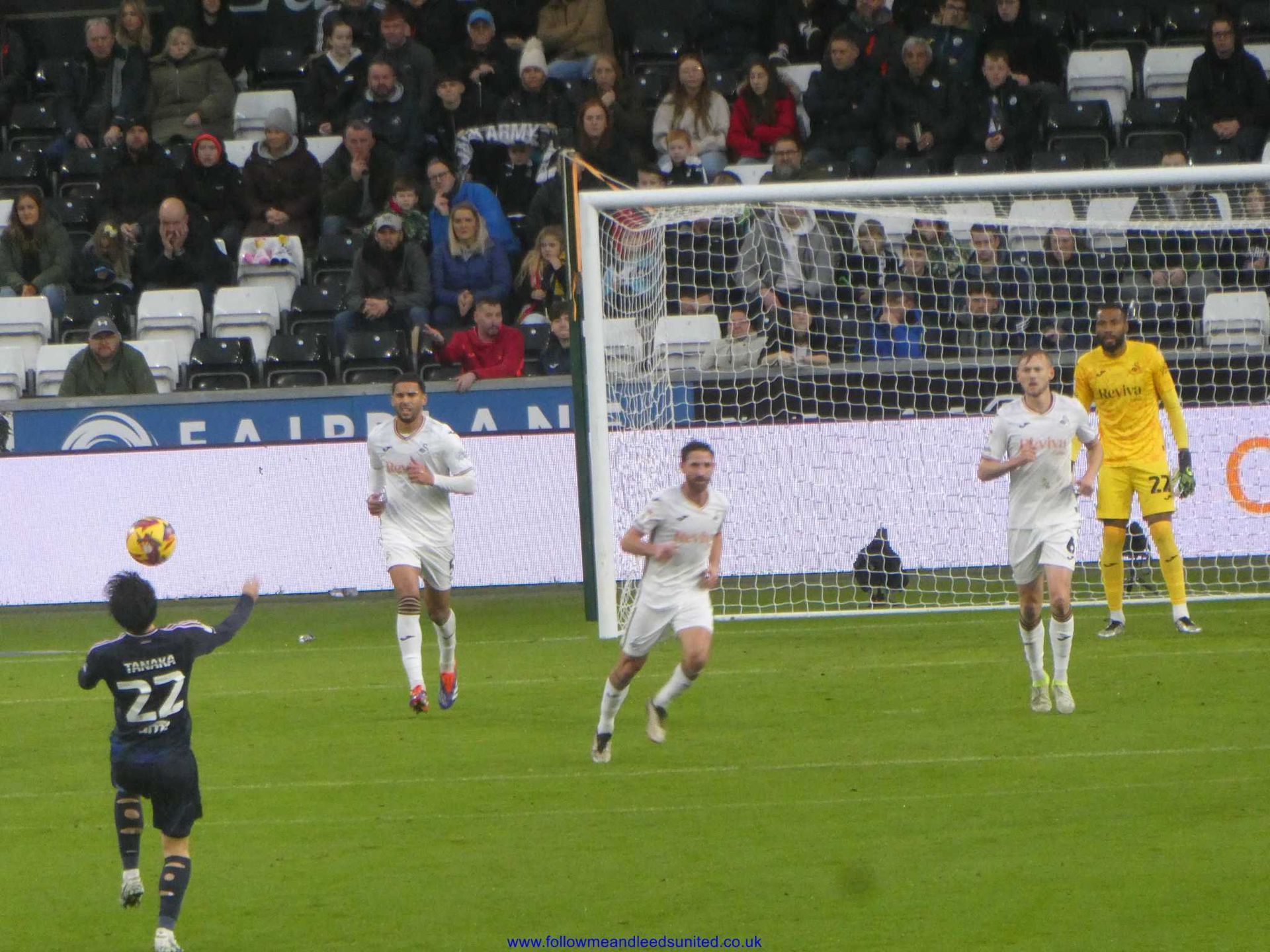 Although the game ended with seven goals scored it felt a very surreal scoreline. Leeds had the first attack and from the corner the ball reached James at the far post who saw his shot go over the bar. Swansea were lucky they weren’t penalised for a pull on Rodon’s shirt. We were frustrated with the referee blowing for any little touch on Swansea players. They were given a free kick for an innocuous challenge, which we were made to pay for when they scored from the set play when their player got past our defence in acres of space. Luckily for us we got back into the game relatively quickly and a fantastic pass through to James saw him run forward and unselfishly pass the ball across the box for Solomon to get his first goal for the club. Three minutes of injury time were given for the first half which felt more than was needed, but they got a second goal when we lost the ball in midfield, then a wicked deflection from Bogle, took the ball into the bottom corner of the goal, just of our Meslier’s full stretch reach. Without the deflection he would have saved the shot. That was a disappointing one to concede as we went into the break.
