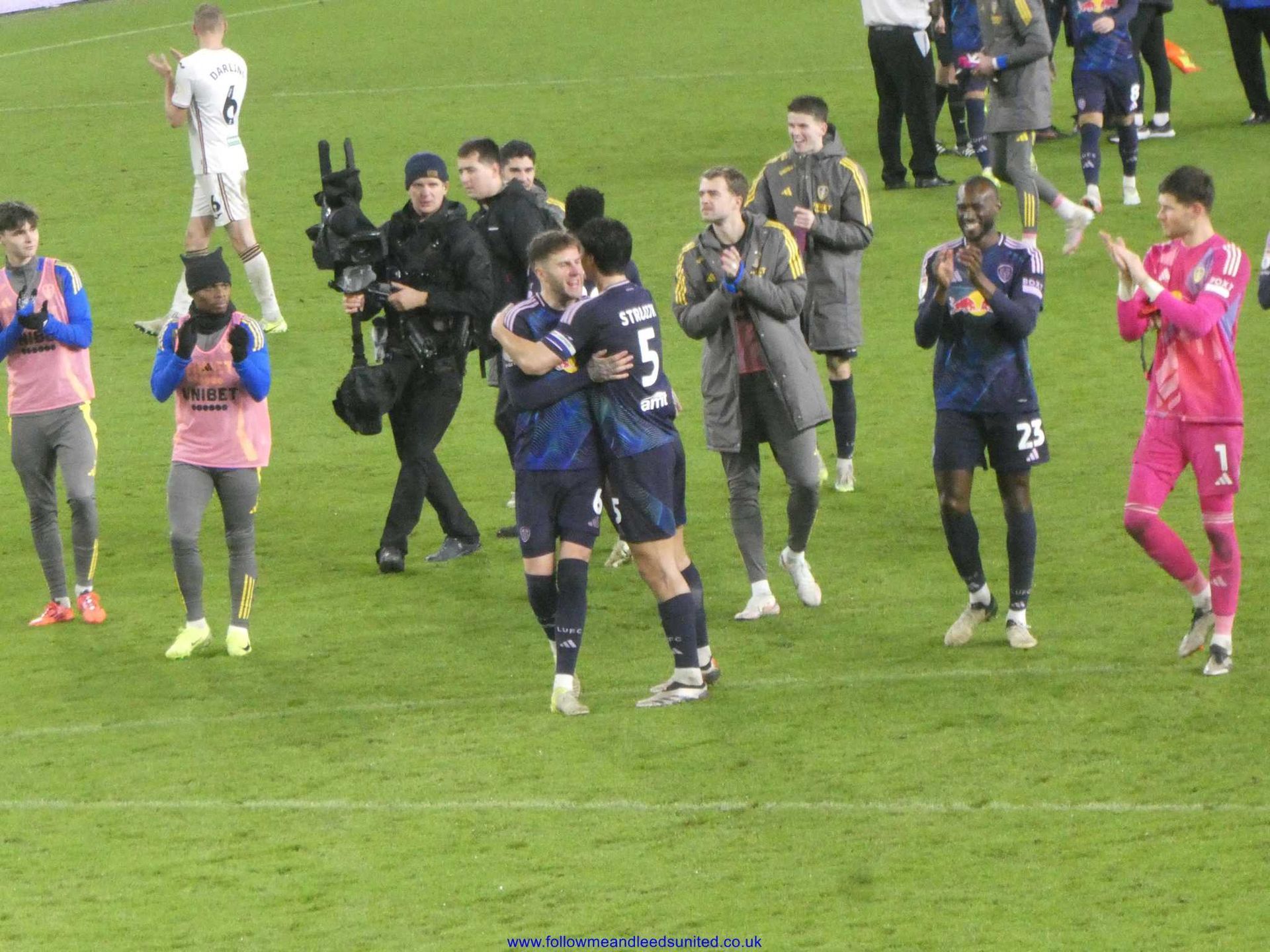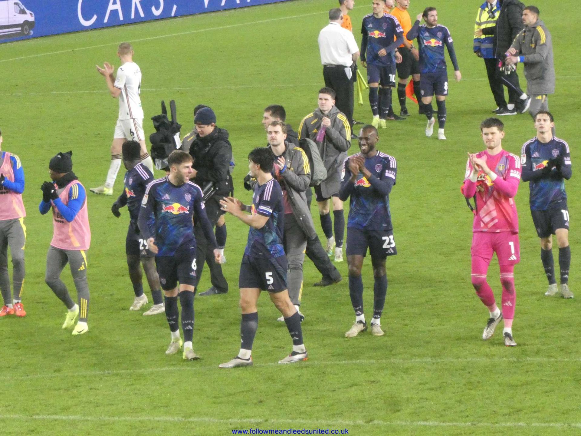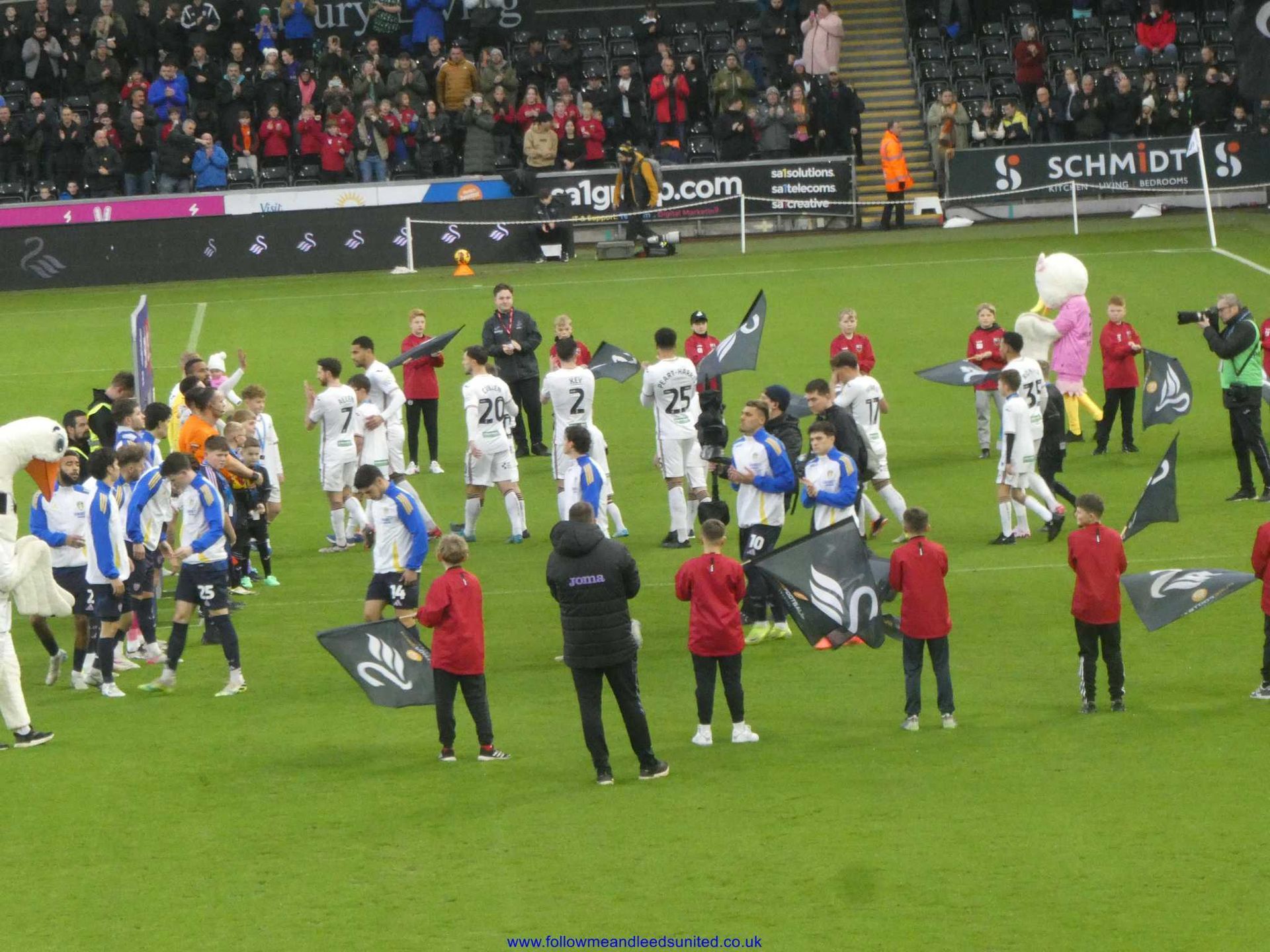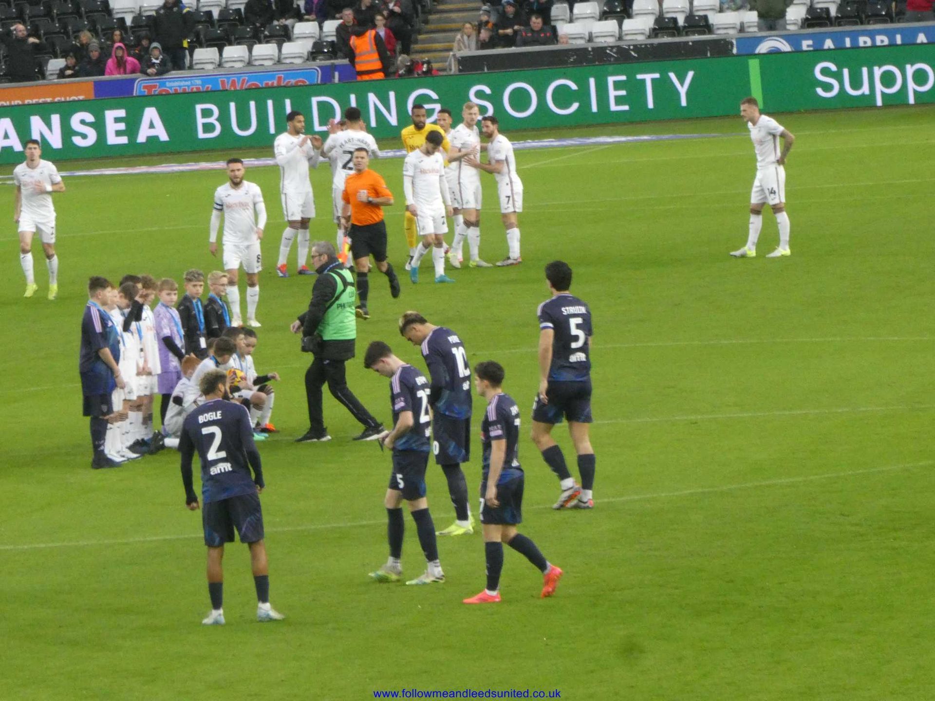 Although the game ended with seven goals scored it felt a very surreal scoreline. Leeds had the first attack and from the corner the ball reached James at the far post who saw his shot go over the bar. Swansea were lucky they weren’t penalised for a pull on Rodon’s shirt. We were frustrated with the referee blowing for any little touch on Swansea players. They were given a free kick for an innocuous challenge, which we were made to pay for when they scored from the set play when their player got past our defence in acres of space. Luckily for us we got back into the game relatively quickly and a fantastic pass through to James saw him run forward and unselfishly pass the ball across the box for Solomon to get his first goal for the club. Three minutes of injury time were given for the first half which felt more than was needed, but they got a second goal when we lost the ball in midfield, then a wicked deflection from Bogle, took the ball into the bottom corner of the goal, just of our Meslier’s full stretch reach. Without the deflection he would have saved the shot. That was a disappointing one to concede as we went into the break.