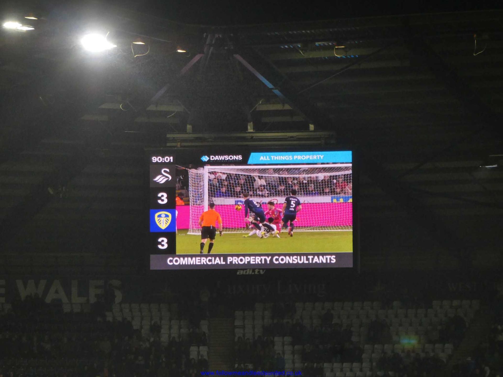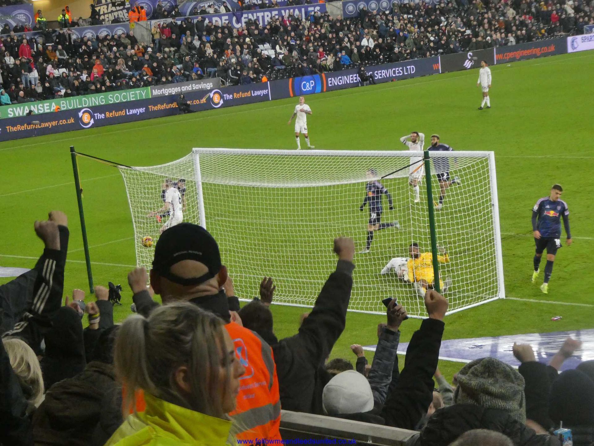 Ten minutes into the second half we were back on level terms after Tanaka broke up a Swansea attack. Rodon got the ball, passed forward to Bogle and his first time pass saw the speed of James on the wing run forward. He passed the ball into the box and their player trying to stop the ball getting to Piroe, put it into the net for an own goal. It was nice to have a bit of luck for once. We took the lead when a fantastic ball from Struijk through to Byram who was onside and in acres of space, ran forward and passed into the middle for Solomon to get his second goal of the game and for Leeds to take the lead for the first time. It shows how much I know as Farke got it right. We’d taken a quick thrown in with our first subs waiting to come onto the pitch and I felt we should have made the subs rather than carry on playing. As Solomon went off shortly afterwards, he obviously wouldn’t have scored the goal! With fans singing top of the league, I couldn’t do that in case it came back to bite us on the bum. As the game drew to a close, we started to defend deep and the only thing you could see was Swansea scoring which turned out to be the case. Meslier had made a great save from a shot but on full time they equalised, after a cross into the middle of the box saw their player get in between ours to score. That was a big disappointment as we thought we’d thrown it away only for Gnonto to come on as sub and get a dramatic winner in injury time when James put him through in the penalty area. The Leeds fans erupted then as the goal sent Leeds to the top of the table. This time I’d no problem singing it and it was a great feeling to get the win and three points. Thank you Phillip for looking down on us today.
