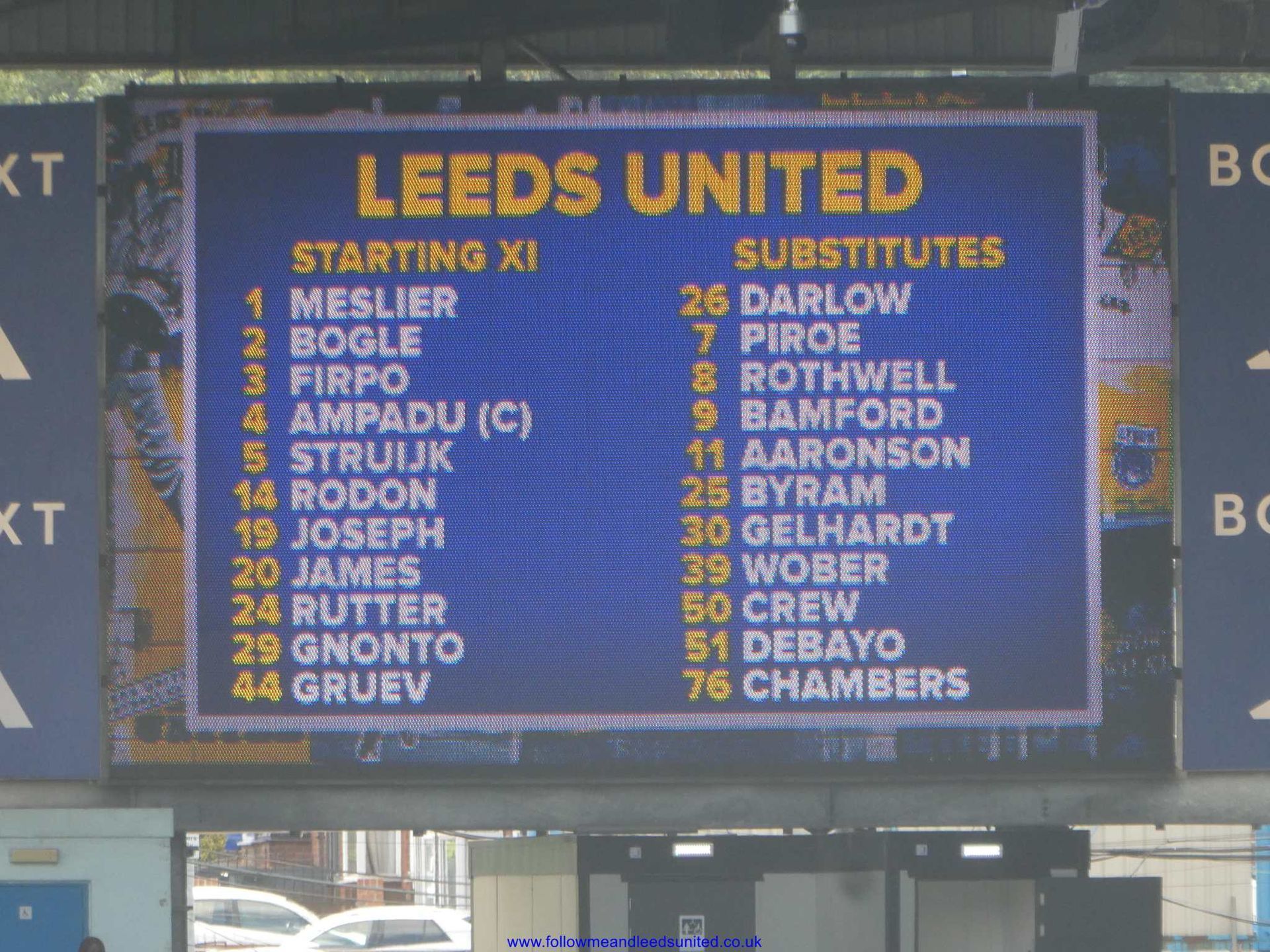 Team: Meslier, Ampadu, Jayden Bogle (making his home debut), Firpo, Struijk, Rodon, Rutter, James, Gnonto, Joseph, Gruev