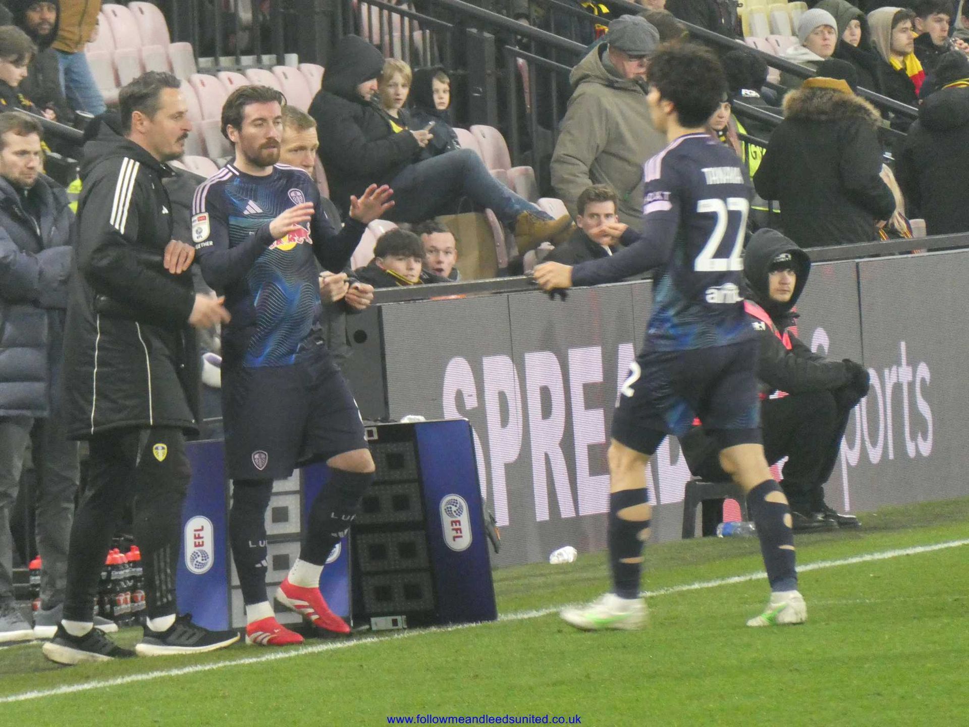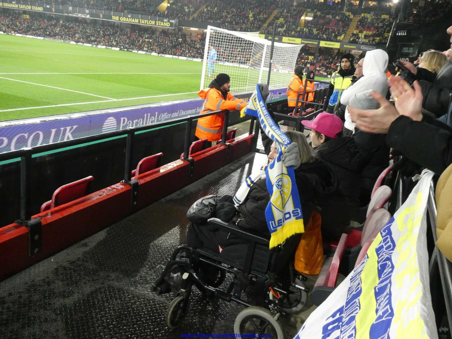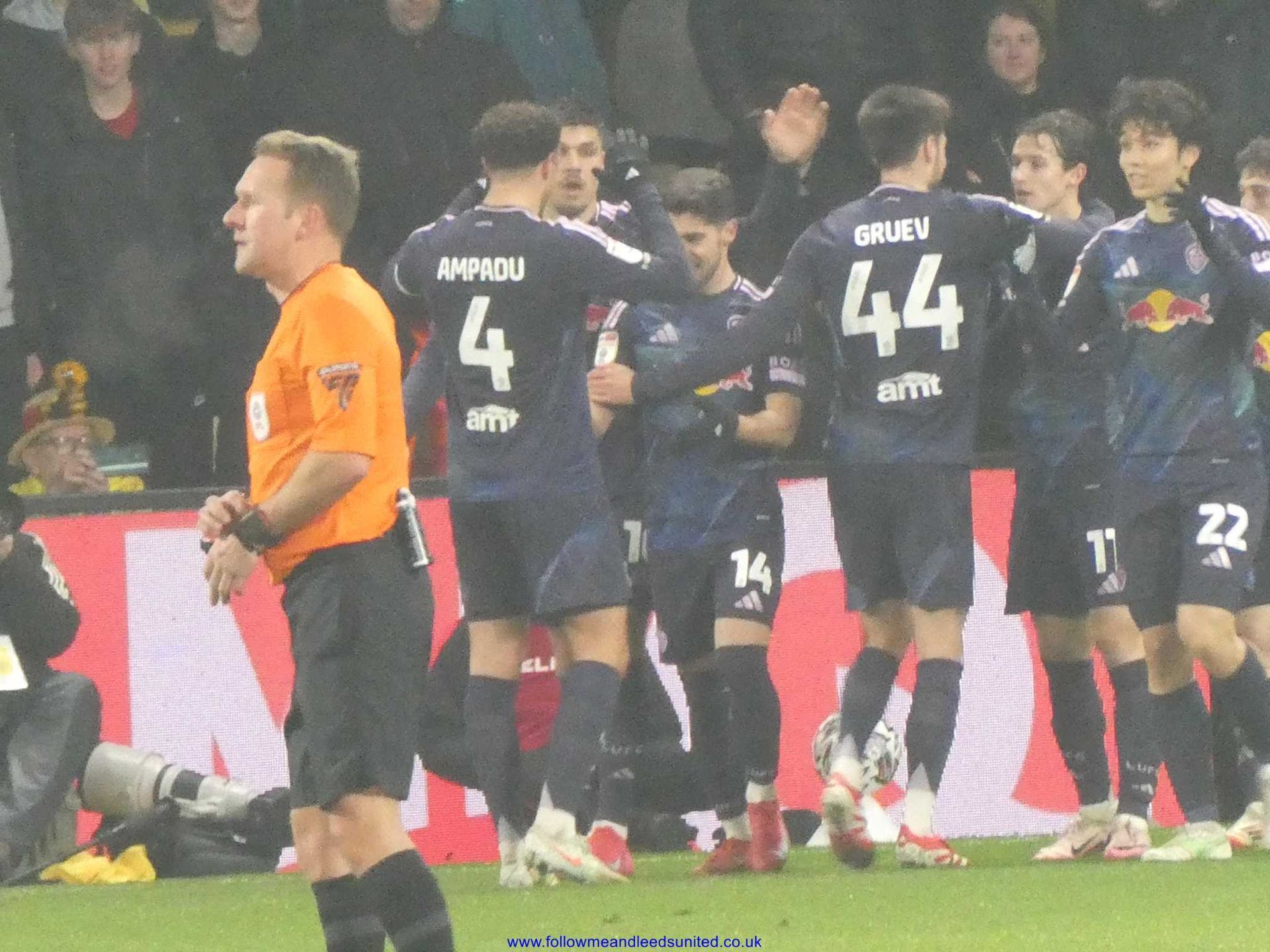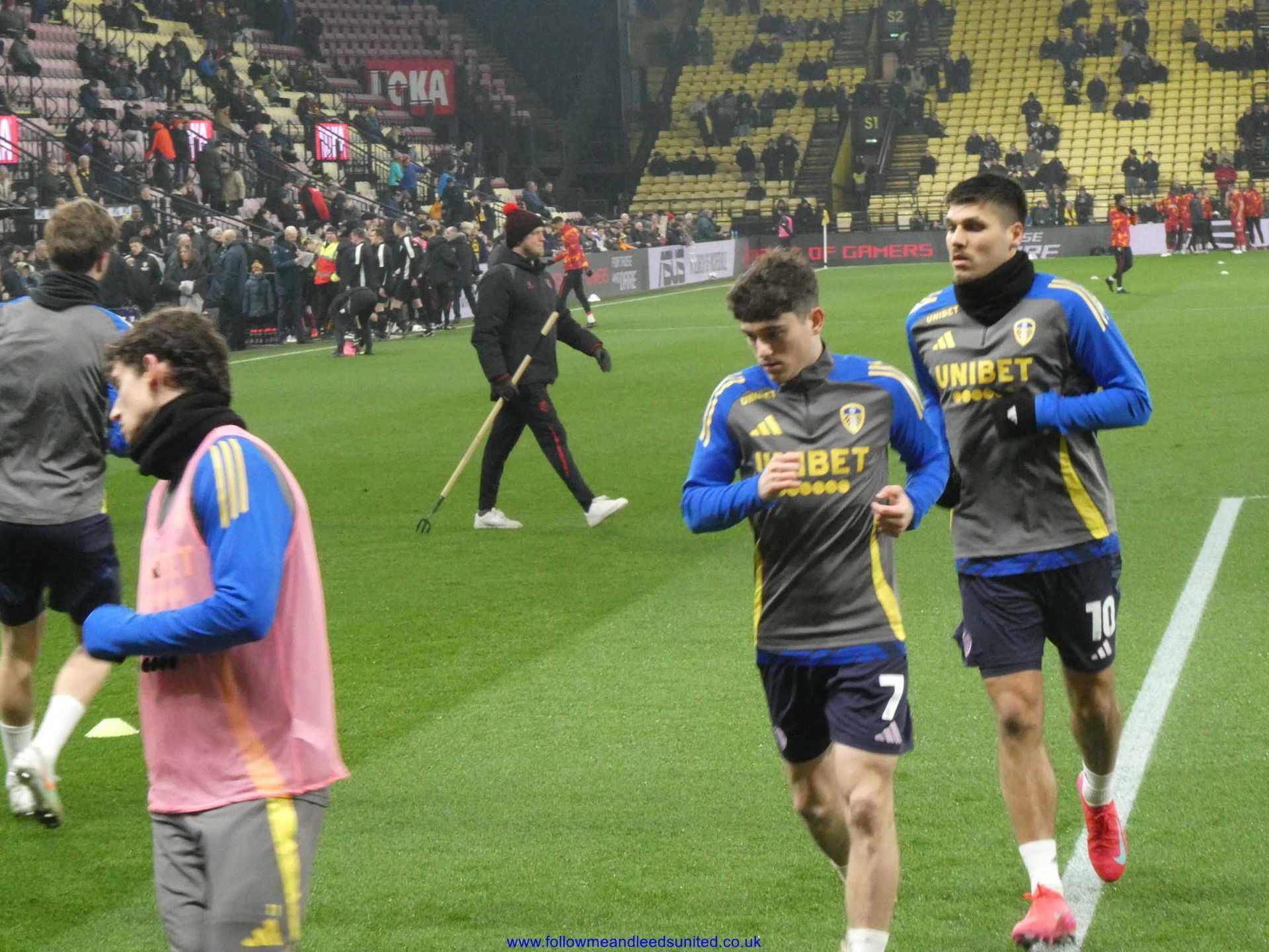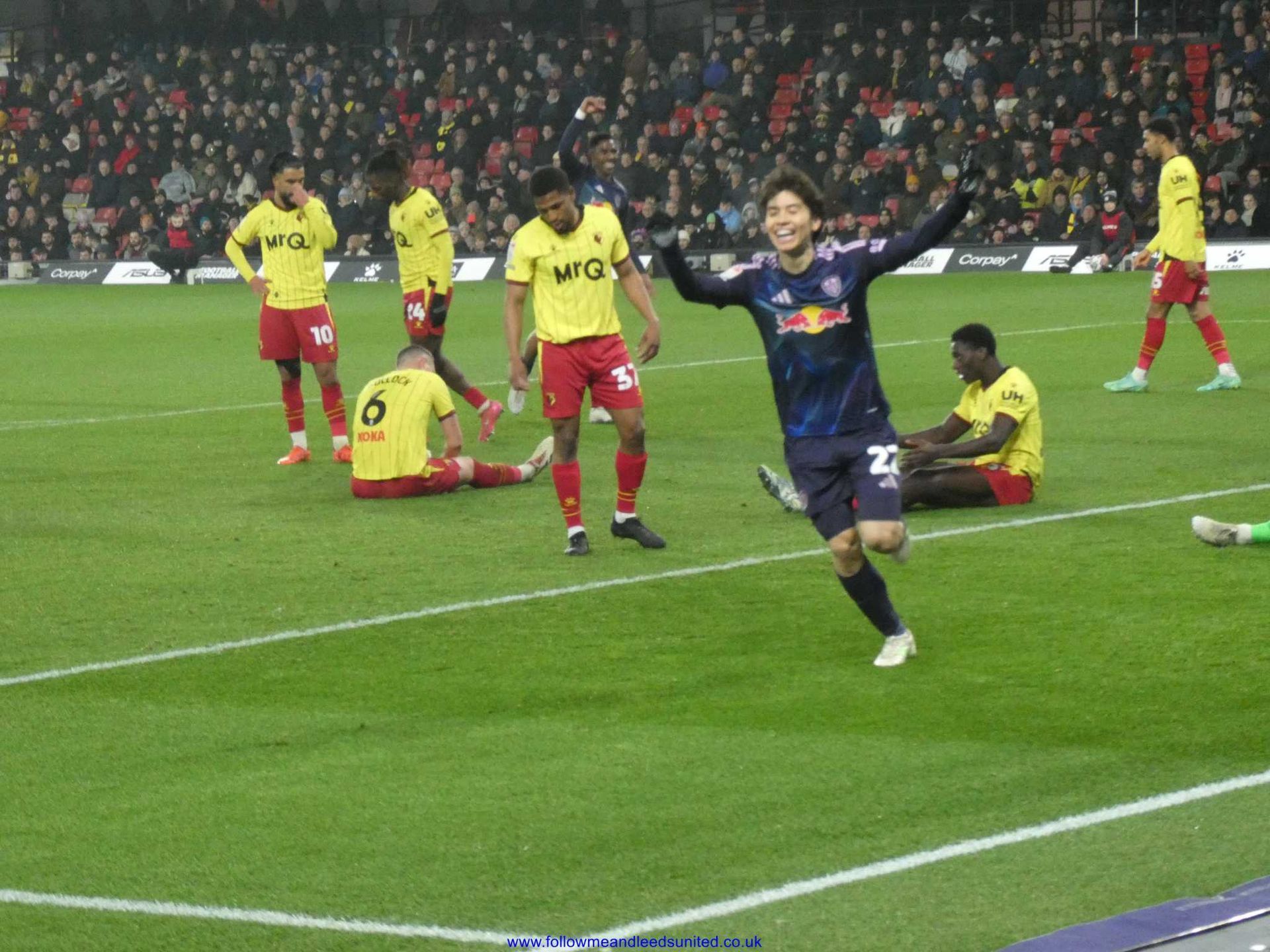Both teams came out of the starting blocks quickly with Watford winning a corner and Leeds having a shot which deflected wide. There was plenty of attacking with end-to-end football and Leeds came the closest to taking the lead after a fast move involving Solomon and Aaronson which saw a Piroe shot saved by the keeper. Shortly afterwards we took the lead after James picked up a bad back pass and ran forward, composed himself and smashed the ball into the net. James increased our lead eight minutes later after a great counterattack. Aaronson sent a great pass to Piroe on the wing whose precision pass to James in the middle saw his speed once again cause issues for their defence and smashed a second goal into the net to put us two up. Well, I never saw that coming!! Meslier then made an important save when the Watford player got through our defence with only him to beat. We took an even bigger lead when Solomon kept hold of the ball under pressure from a Watford player and shot from outside the area, only to see the ball deflected into the net for a third with their keeper rooted to the spot. Wow but I’ll take that, we hadn’t even got to half time and were three goals to the good already. James was so unlucky not to get a hattrick as Leeds came out from defence once again. He was well behind as the defender chested the ball down, but James’s speed took him past, and he hit a first time, long range shot with their keeper grasping fresh air, but the ball went wide. What a shame as he is my favourite player, is so lovely and it would have been so deserved.