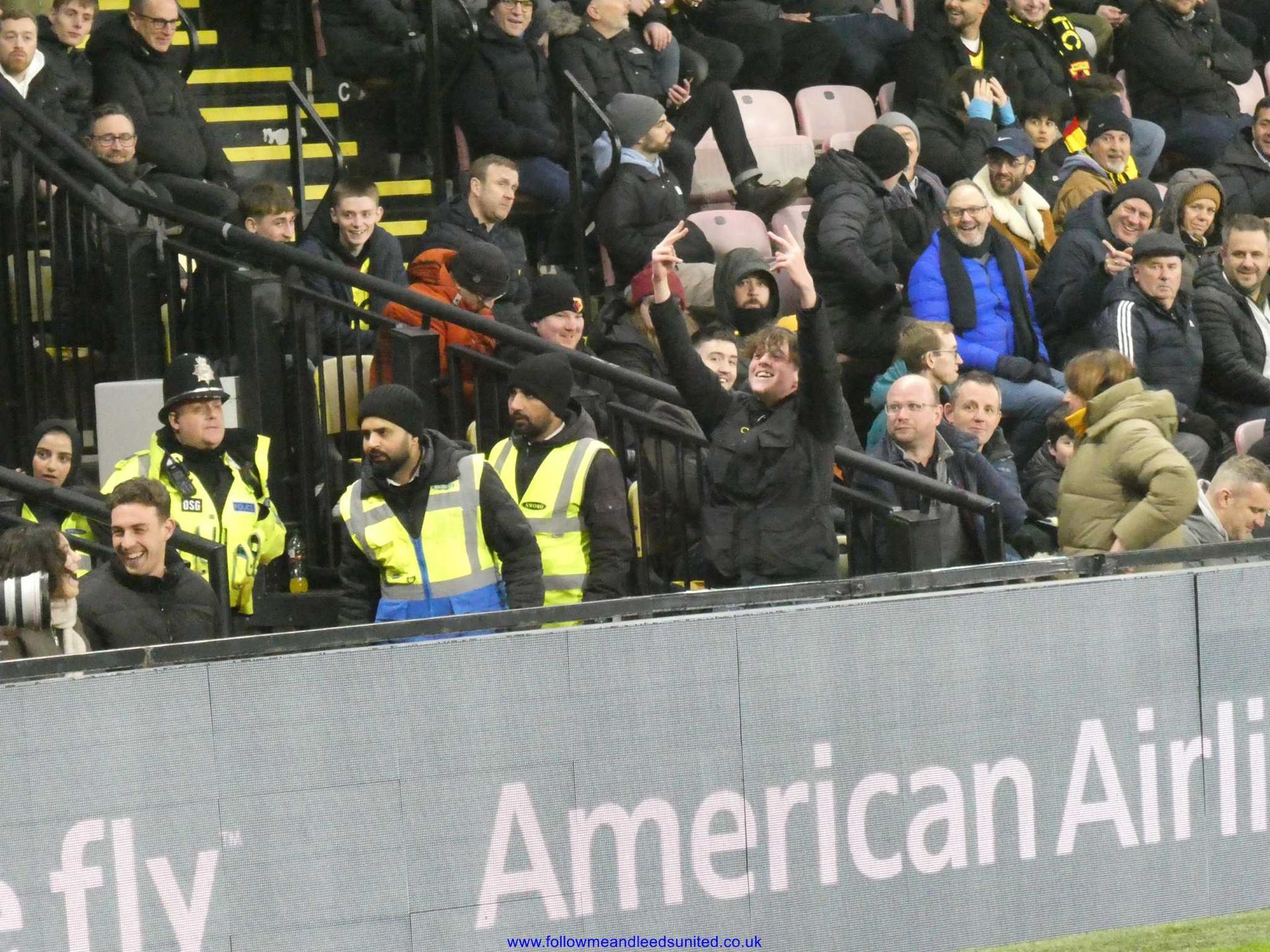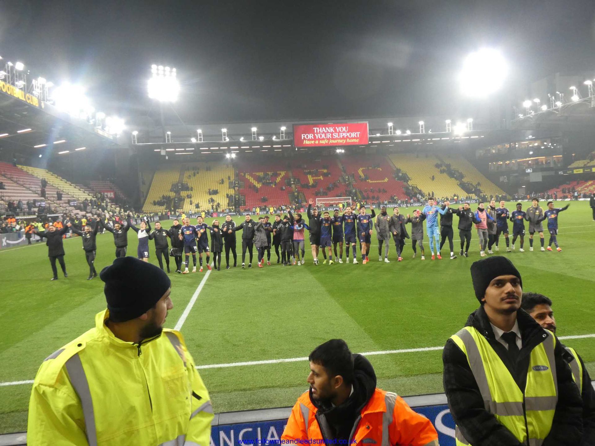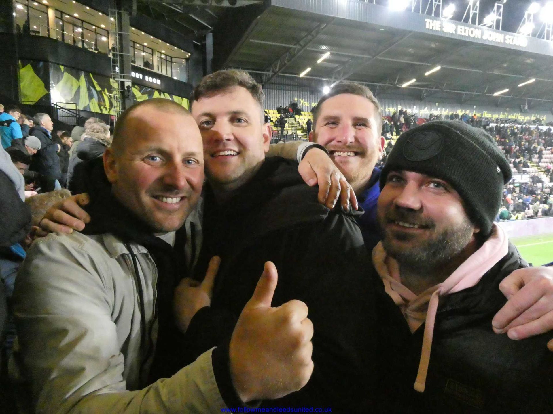 Leeds attacked towards the Leeds fans in the second half and some fantastic play from Tanaka where he ran rings around Ince leaving him behind, got the ball to Solomon. He then found Piroe in the middle who beat the defender to get a clear shot of the goal to put the ball into the net to put us four up on the night. I was so happy at this minute celebrating with the rest of our fans only to look up at the sky, feel the tears coming and started sobbing for a good few minutes. These things will continue to happen for a long while no doubt and I will have to deal with these moments when they come out of the blue as they did then. The Leeds fans had been on form all evening and I enjoyed the singing with lots of old school songs.