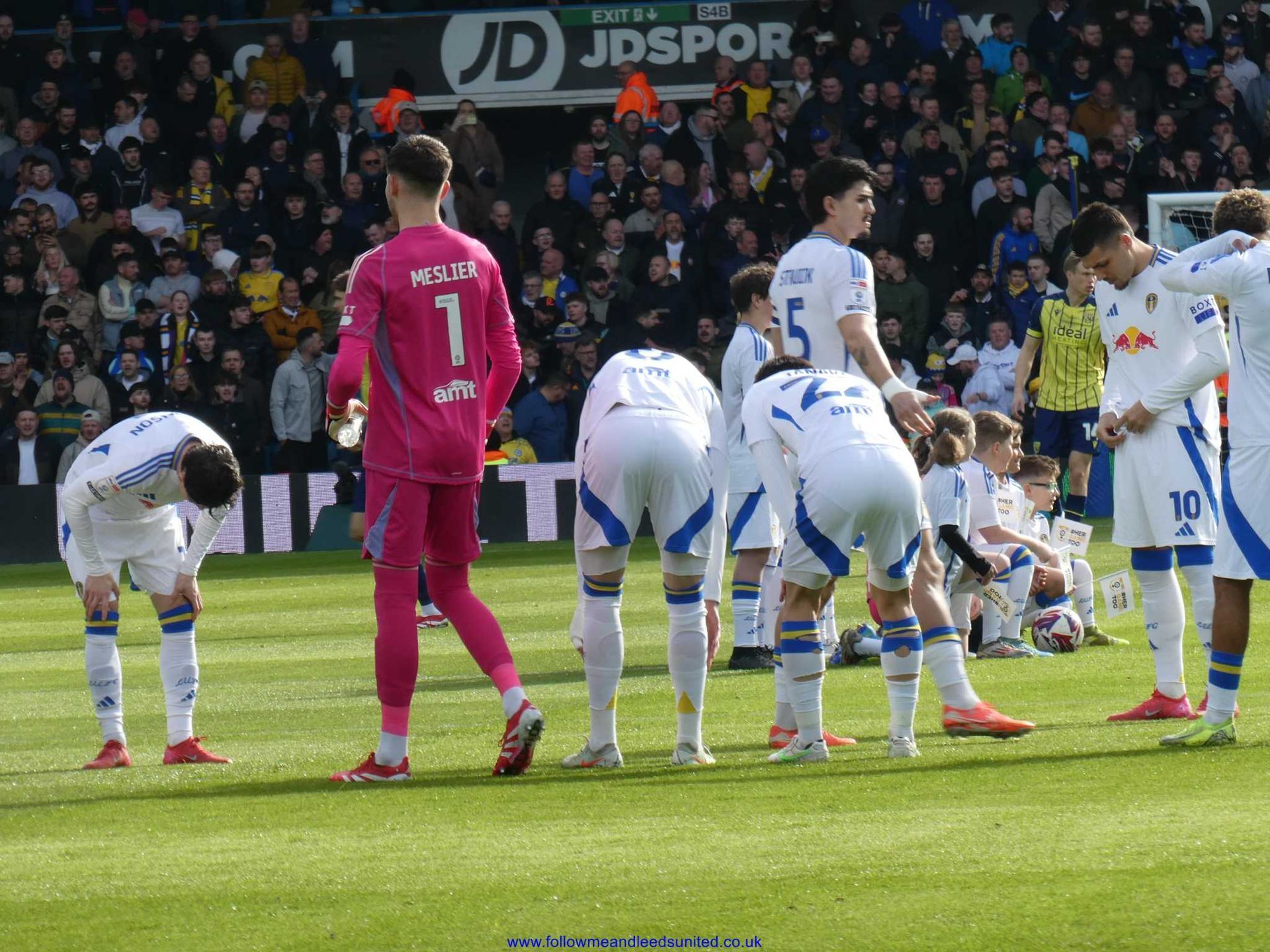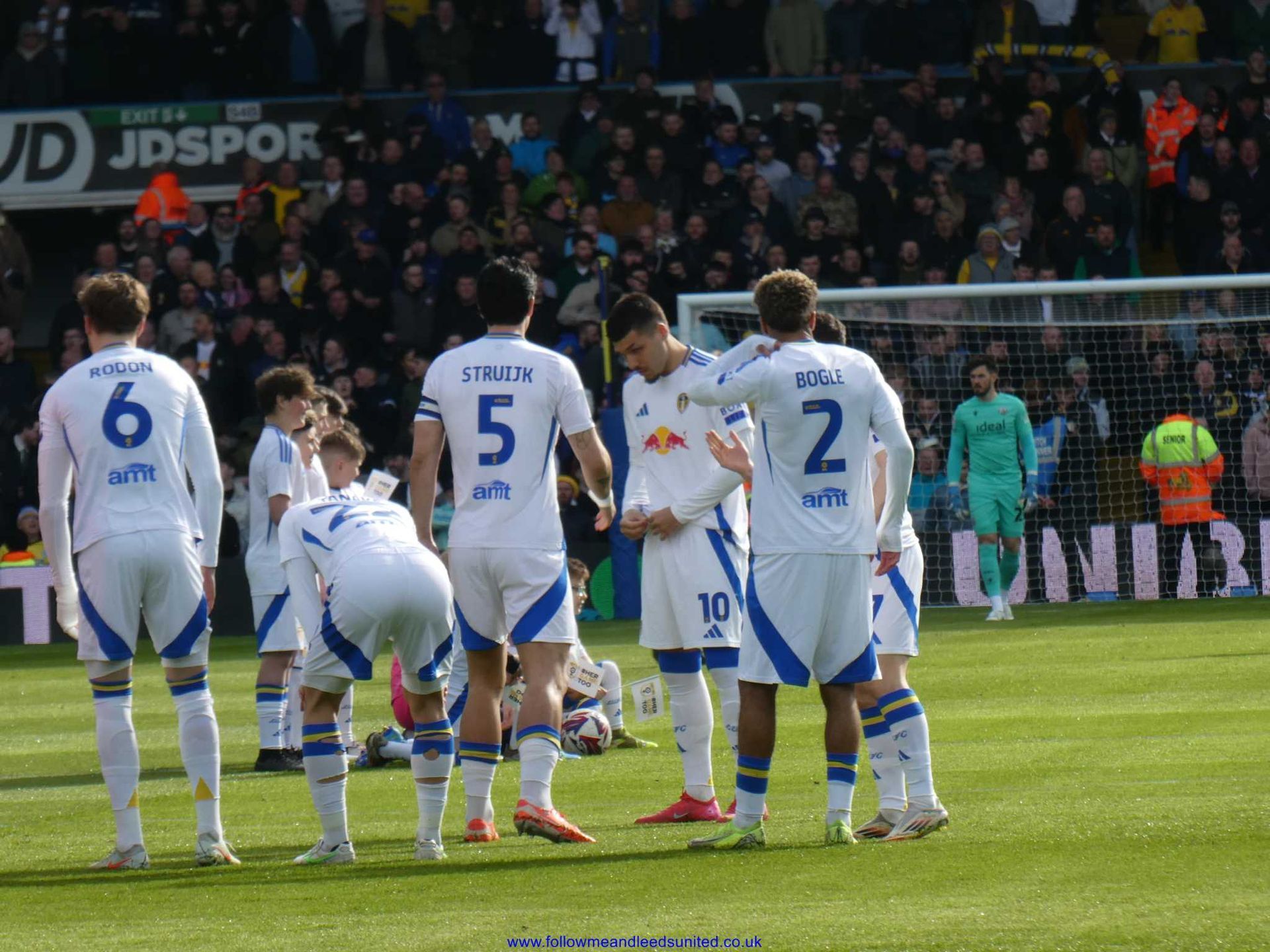 Team: Struijk, Meslier, Rodon, Firpo, Bogle, James, Rothwell, Solomon, Piroe, Tanaka, Aaronson.