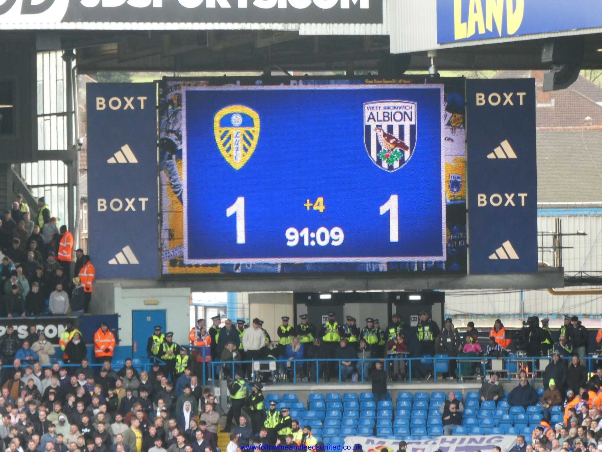 The second half saw Leeds come out fighting with an early attack although Solomon’s shot went over the bar. As he shot, he was taken out by their player from behind, so it should have been a penalty from my point of view. We continued an onslaught of attacks that saw shots blocked as WBA defended well. When they managed an attack, I just didn’t want them to take the lead as we had to keep them out at all costs. Not losing had to be a goal as this game wasn’t easy for us at all. Although they got a good cross in, their header went over the bar thankfully. Leeds were very unlucky not to take the lead as Joseph received the ball on the wing in front of the West Stand. He took the ball all the way into the penalty area only to see his shot scrape the top of the cross bar and go over. WBA then got a chance to win the game when they beat our last line of defence who were pressing high and in their half. Their player was way in front of our defence as Rodon charged back to take the ball off their attacker on the edge of our box. Rodon had the ball between his knees and managed to kick the ball away as their player bore down on him. Luckily for us their player came inwards with the ball giving Rodon the chance to get level with him. Our last chance came to James who hit a hard shot that went wide.