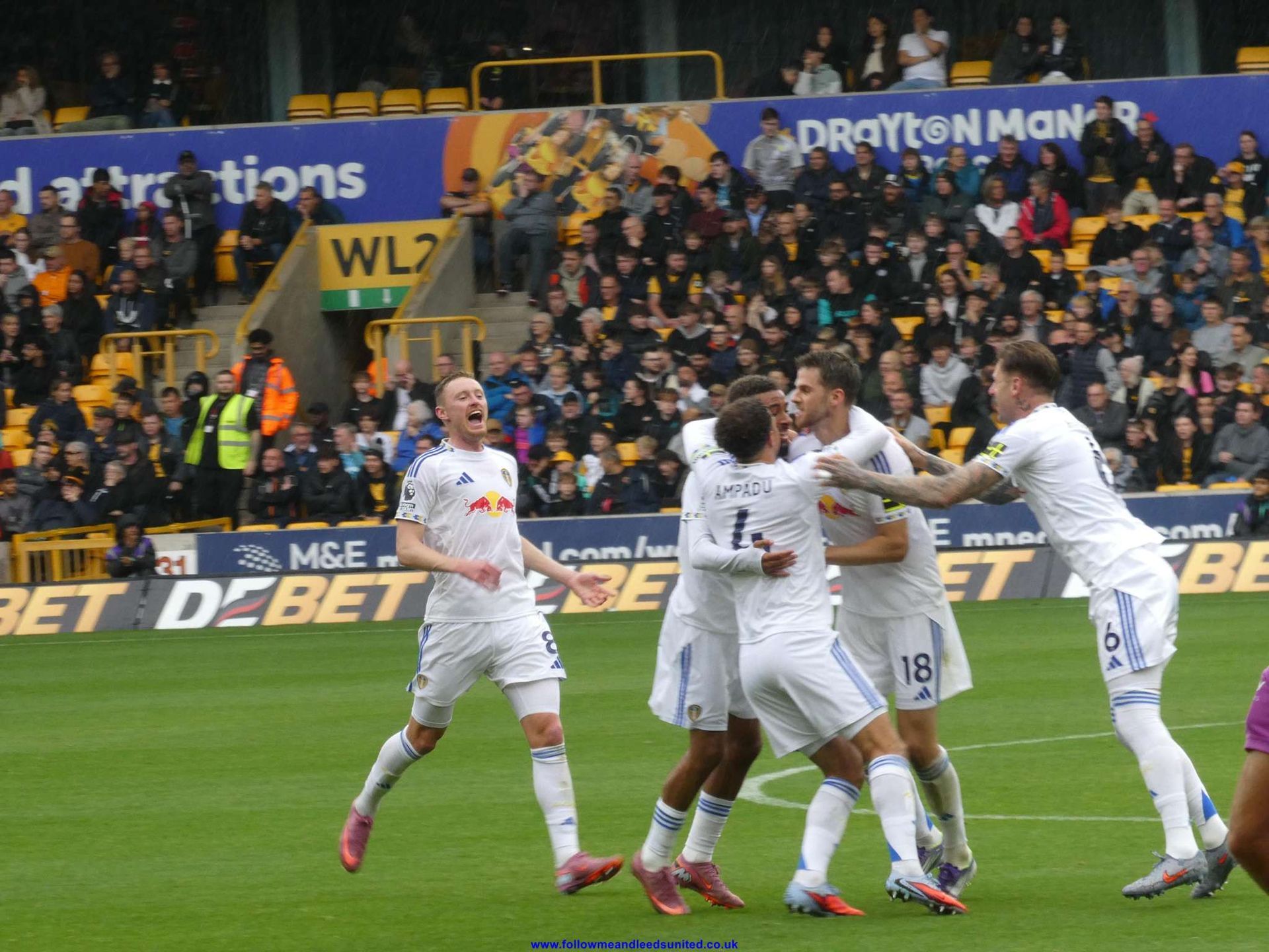 The second half saw Wolves come out on the attack as Darlow was forced to make a save then two more as one thankfully came off Longstaff taking the the sting out of the ball and tipping another attempt over the bar. We came close to a fourth after a great run by Gudmundsson into the box saw his cross diverted away from both Aaronson and Calvert-Lewin then cleared. Darlow caught the ball at the second attempt preventing Wolves from getting back into the game but as the whistle blew, it was the Leeds fans celebrating a good win and a precious three points to move up the table. The only thing that wasn’t good was Bogle going off injured but hopefully this won’t be two bad an injury. With two home matches coming up the win has taken a bit of pressure off by scoring from open play but as always, we need to give 100% in every game we play.